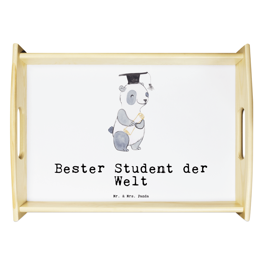 Serviertablett Panda Bester Student der Welt - Weiß