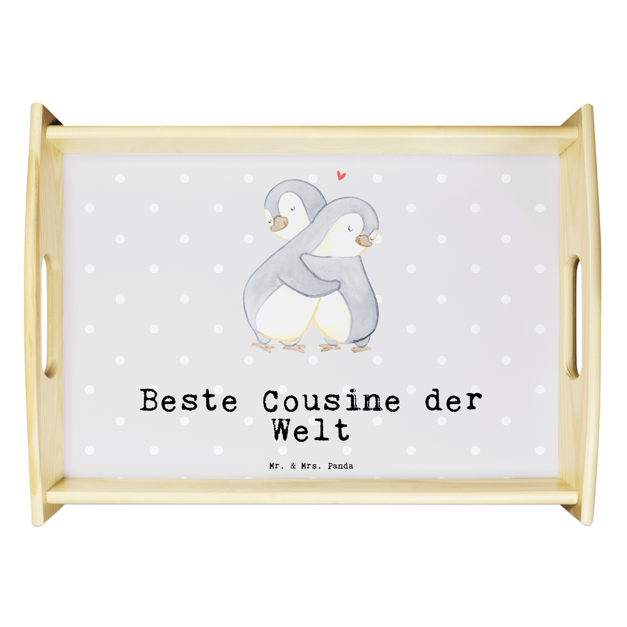 Serviertablett Pinguin Beste Cousine der Welt - Grau Pastell