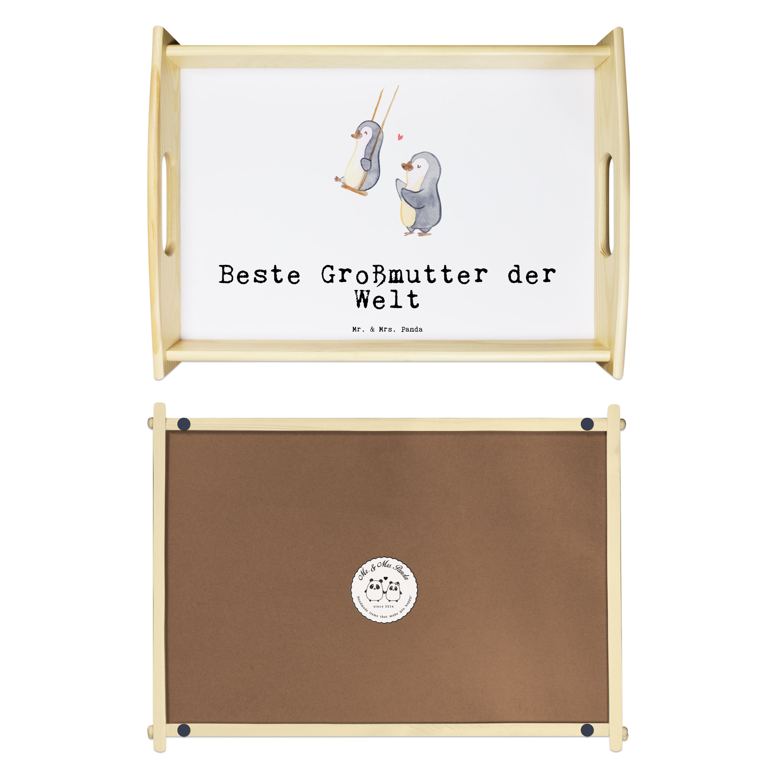Serviertablett Pinguin Beste Großmutter der Welt - Grau Pastell