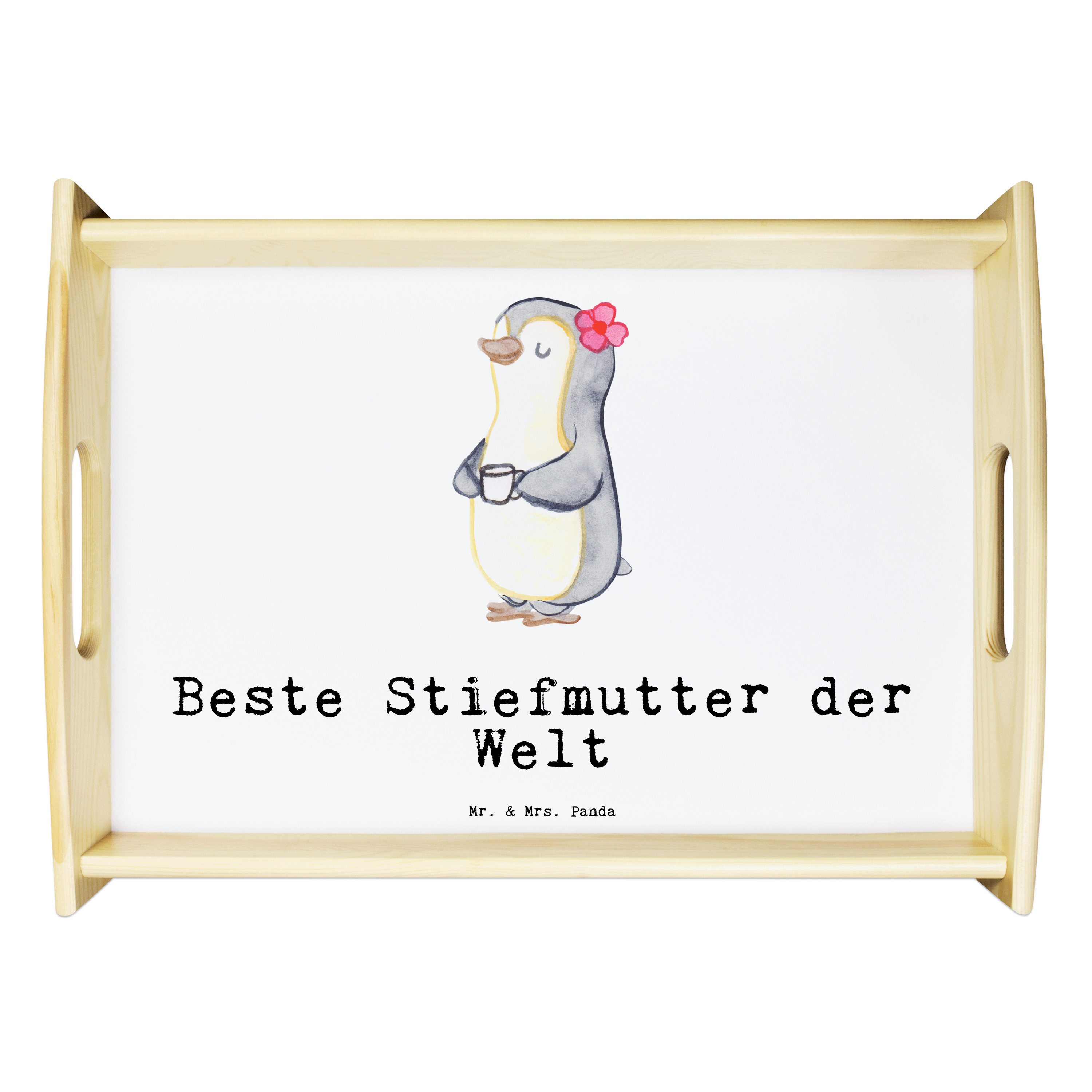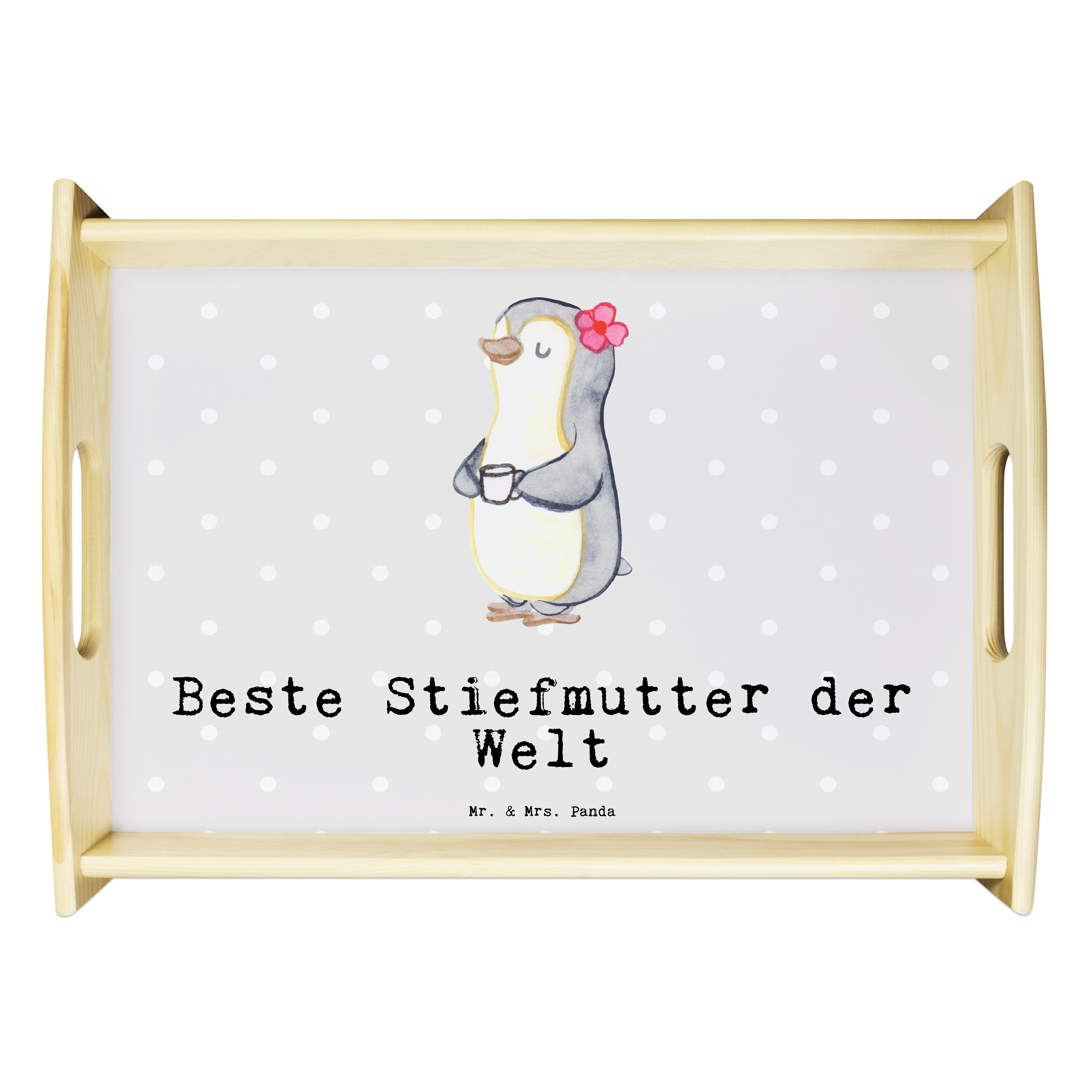 Serviertablett Pinguin Beste Stiefmutter der Welt - Grau Pastell