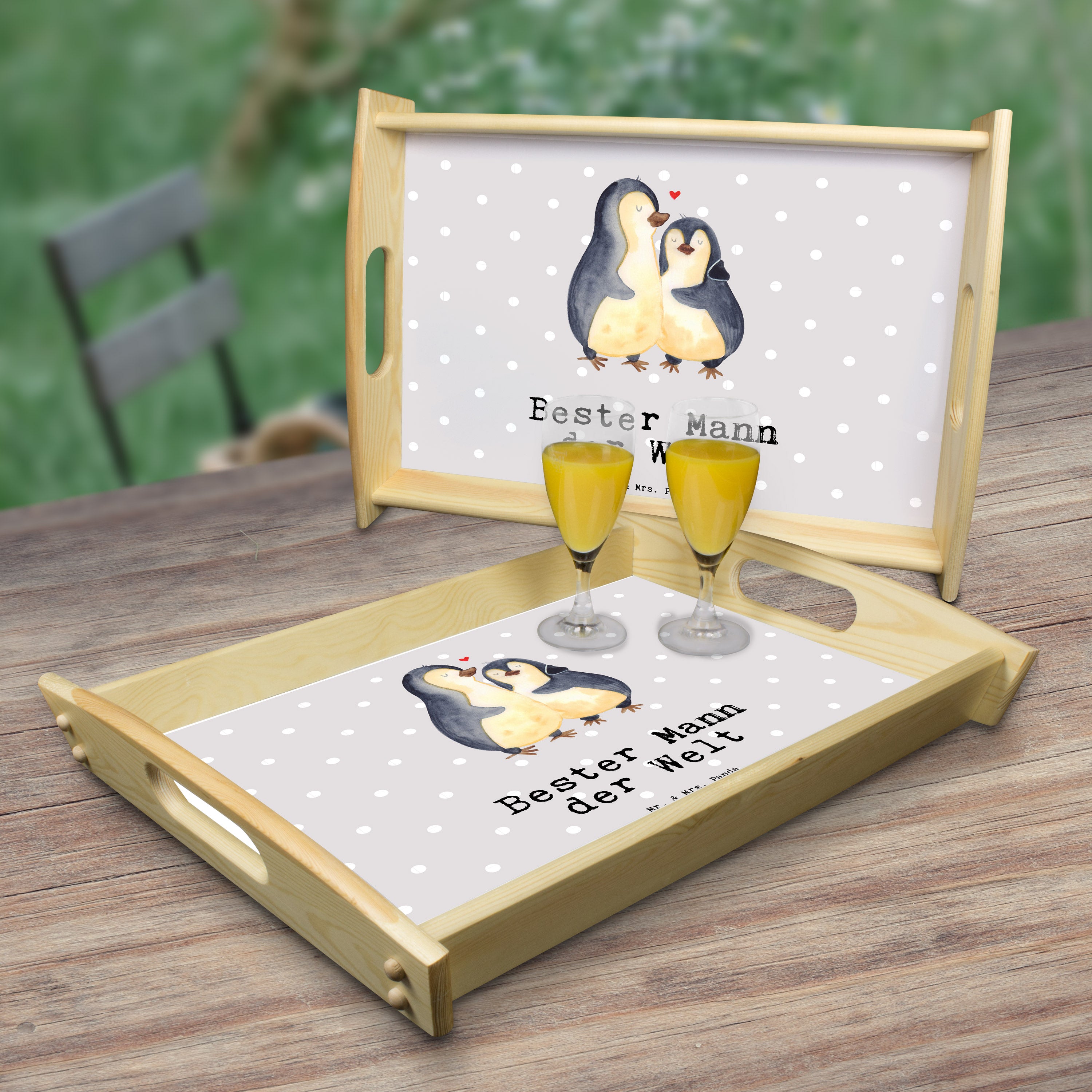 Serviertablett Pinguin Bester Mann der Welt - Grau Pastell