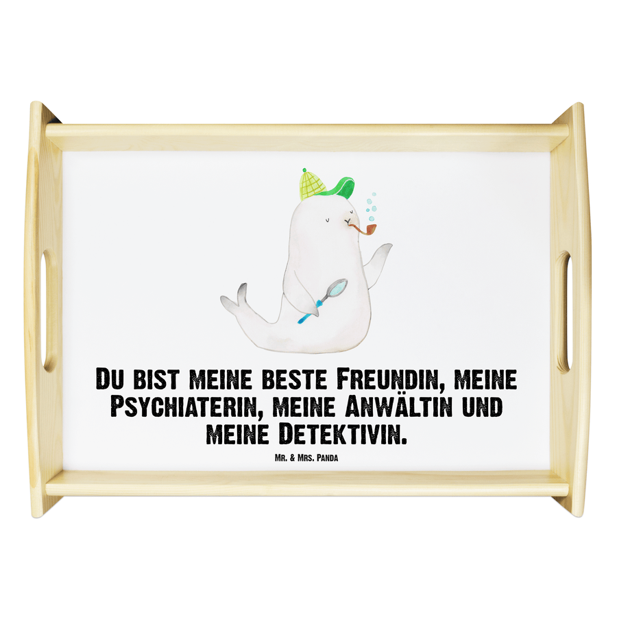 Serviertablett Robbe Sherlock - mit Spruch - Weiß