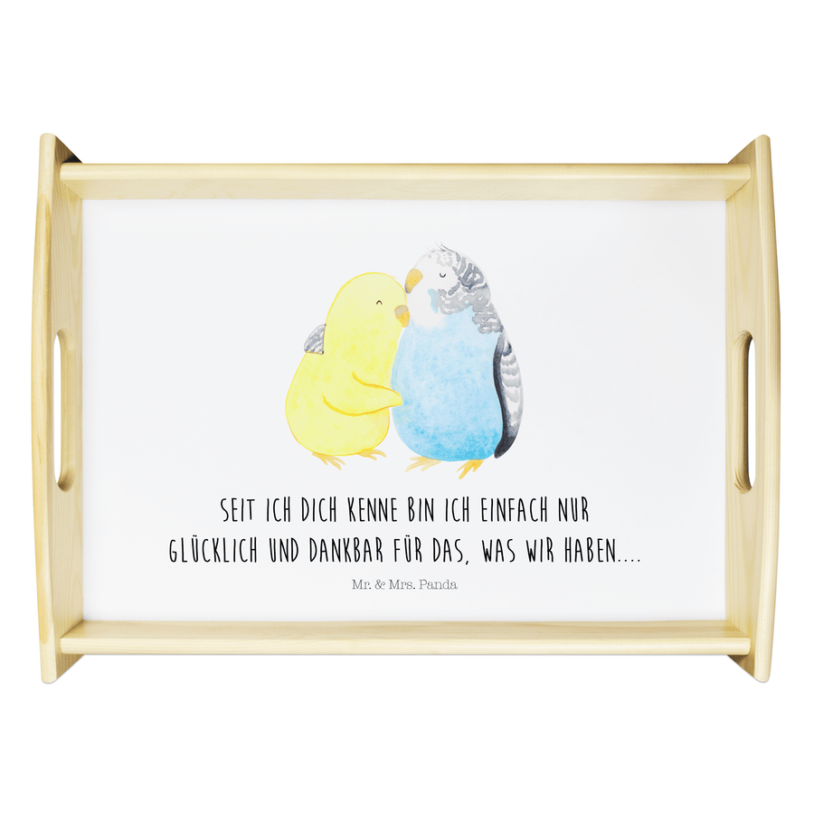 Serviertablett Wellensittich Liebe - mit Spruch - Weiß