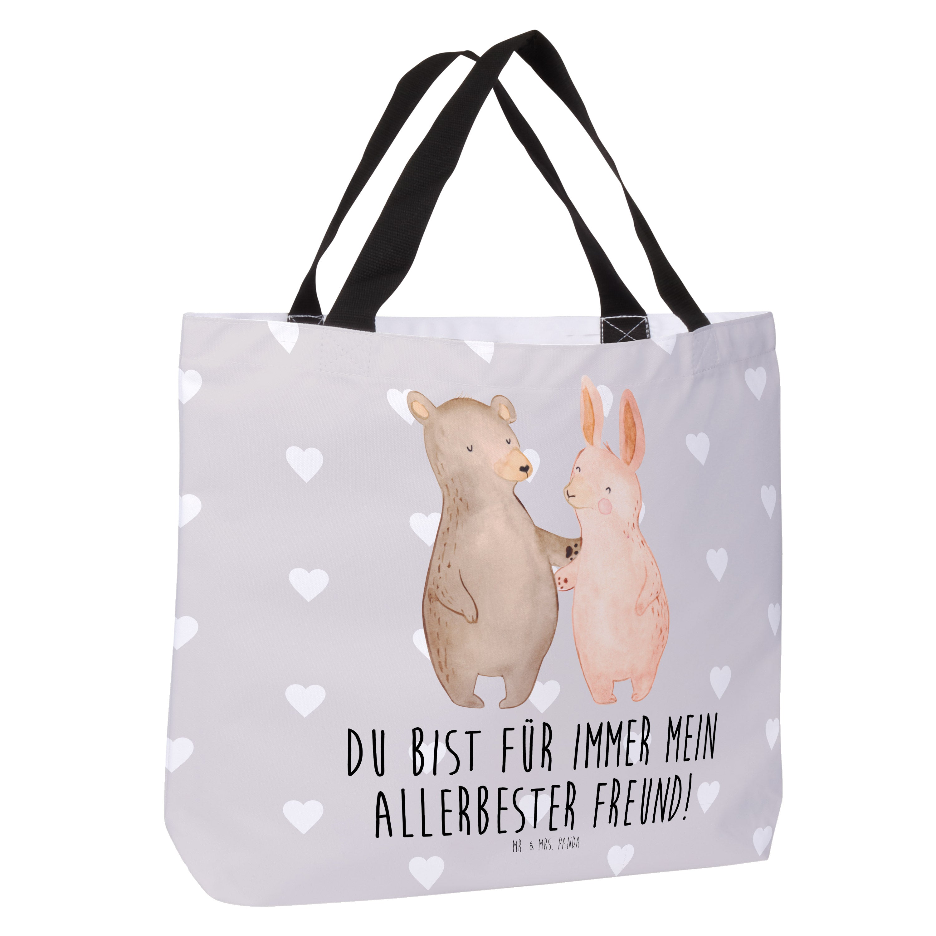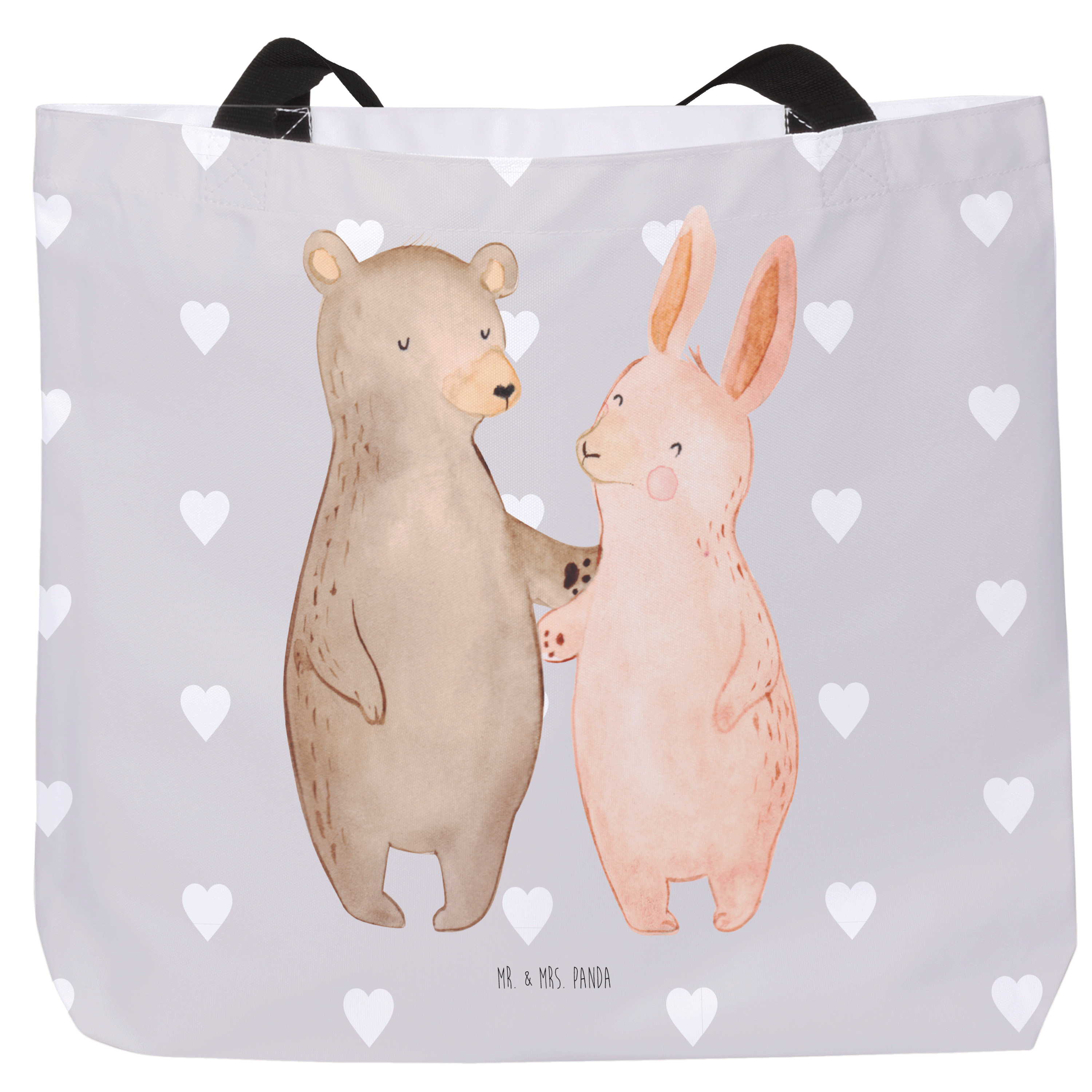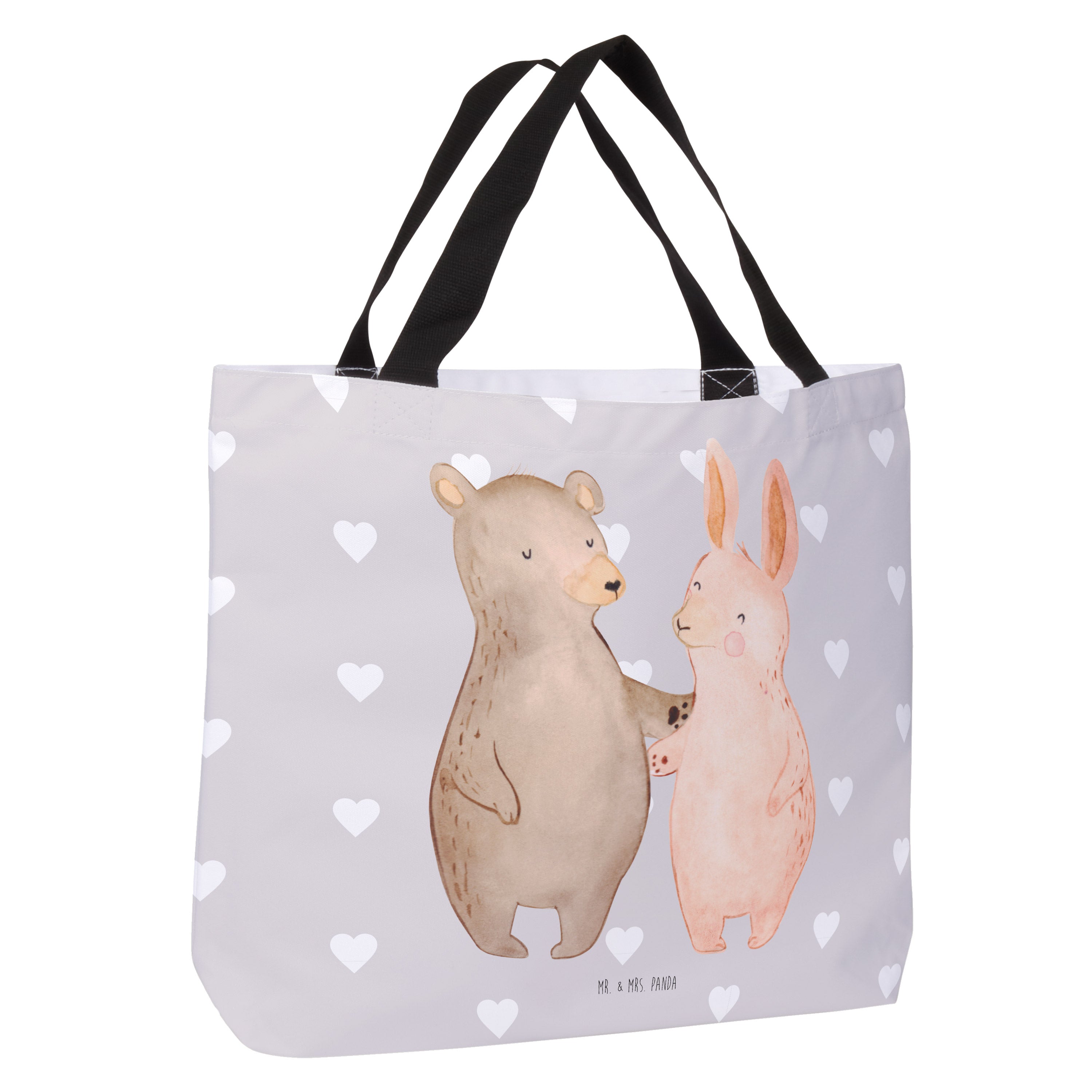 Shopper Bär Hase Umarmen - mit Spruch - Grau Pastell