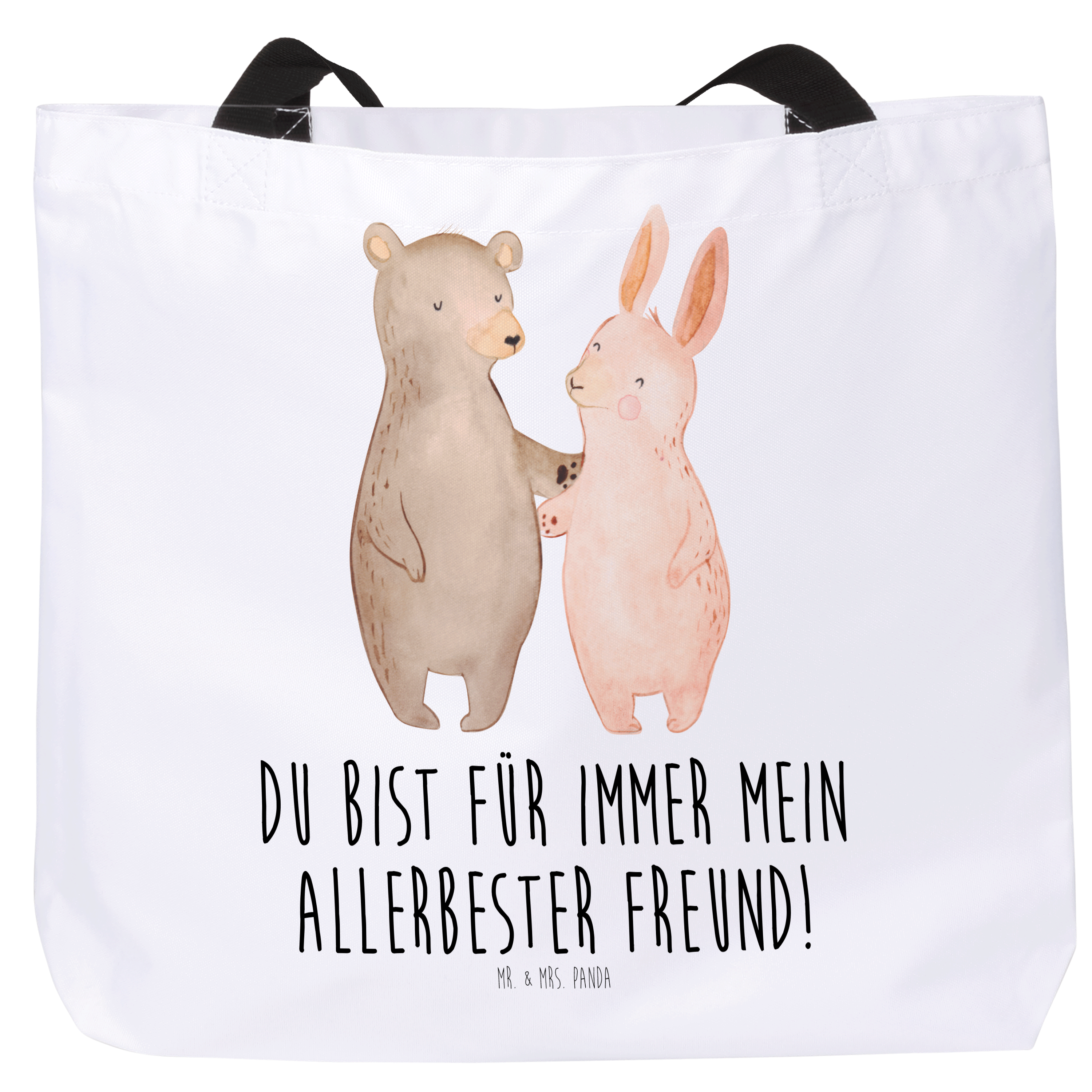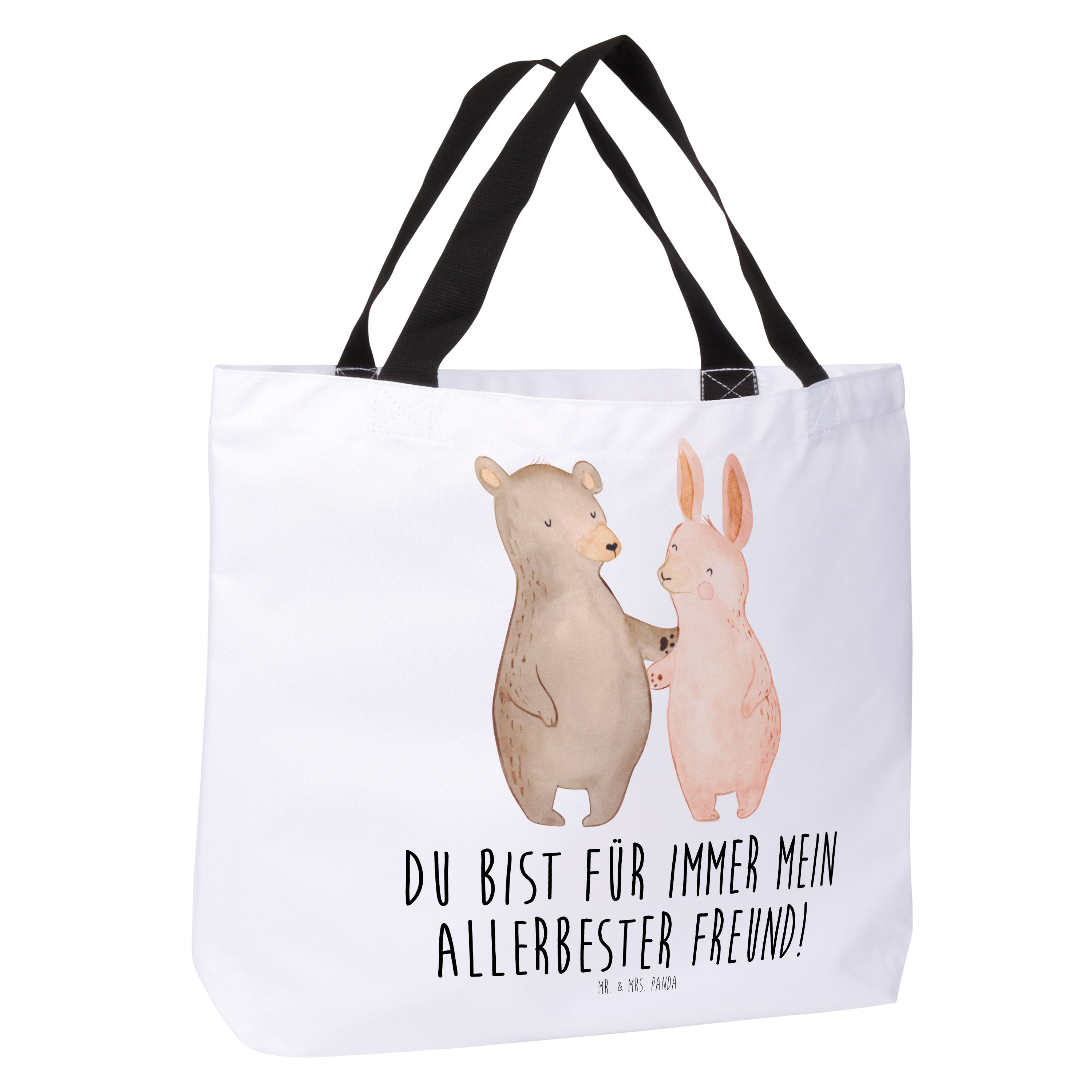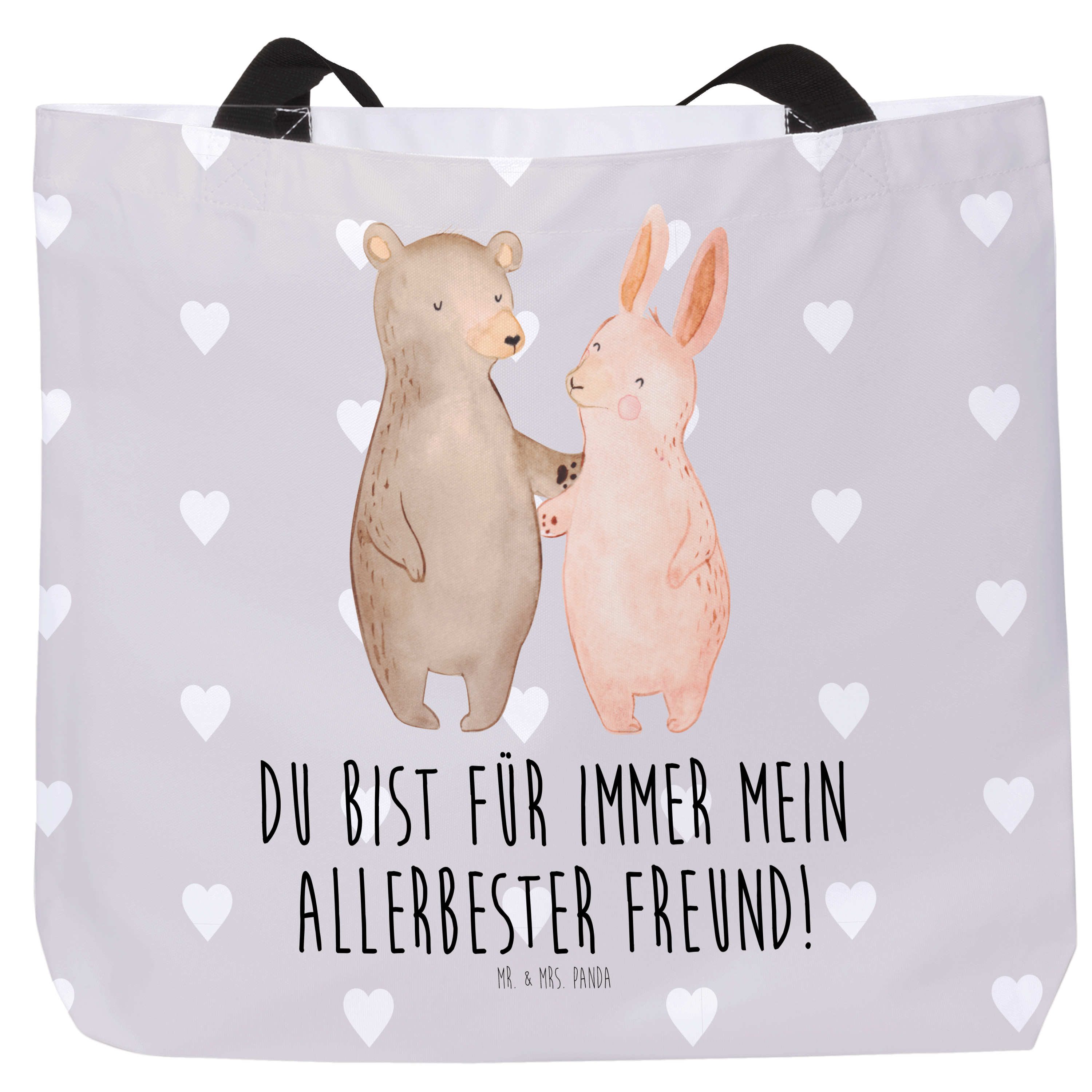 Shopper Bär Hase Umarmen - mit Spruch - Grau Pastell