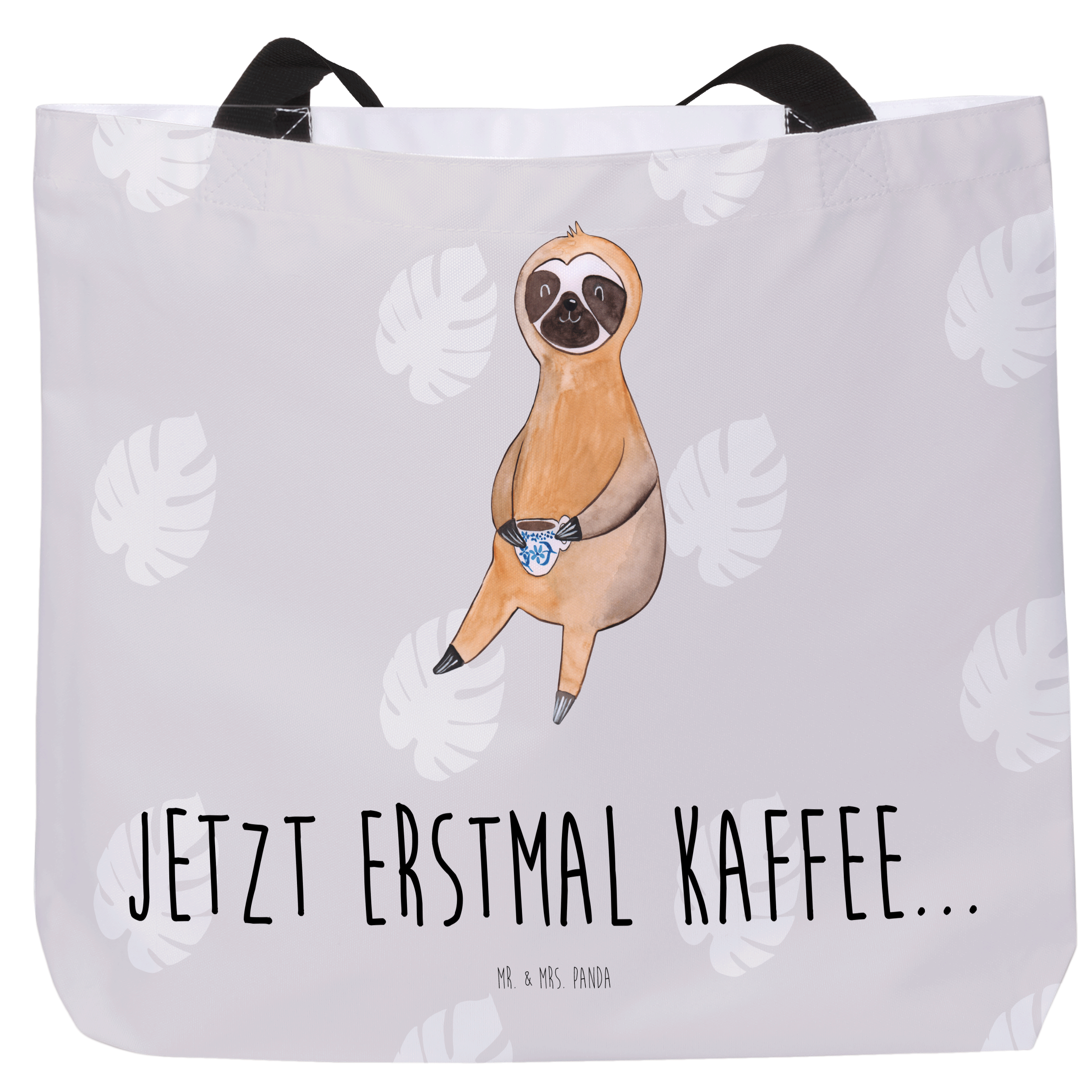 Shopper Faultier Kaffee - mit Spruch - Grau Pastell