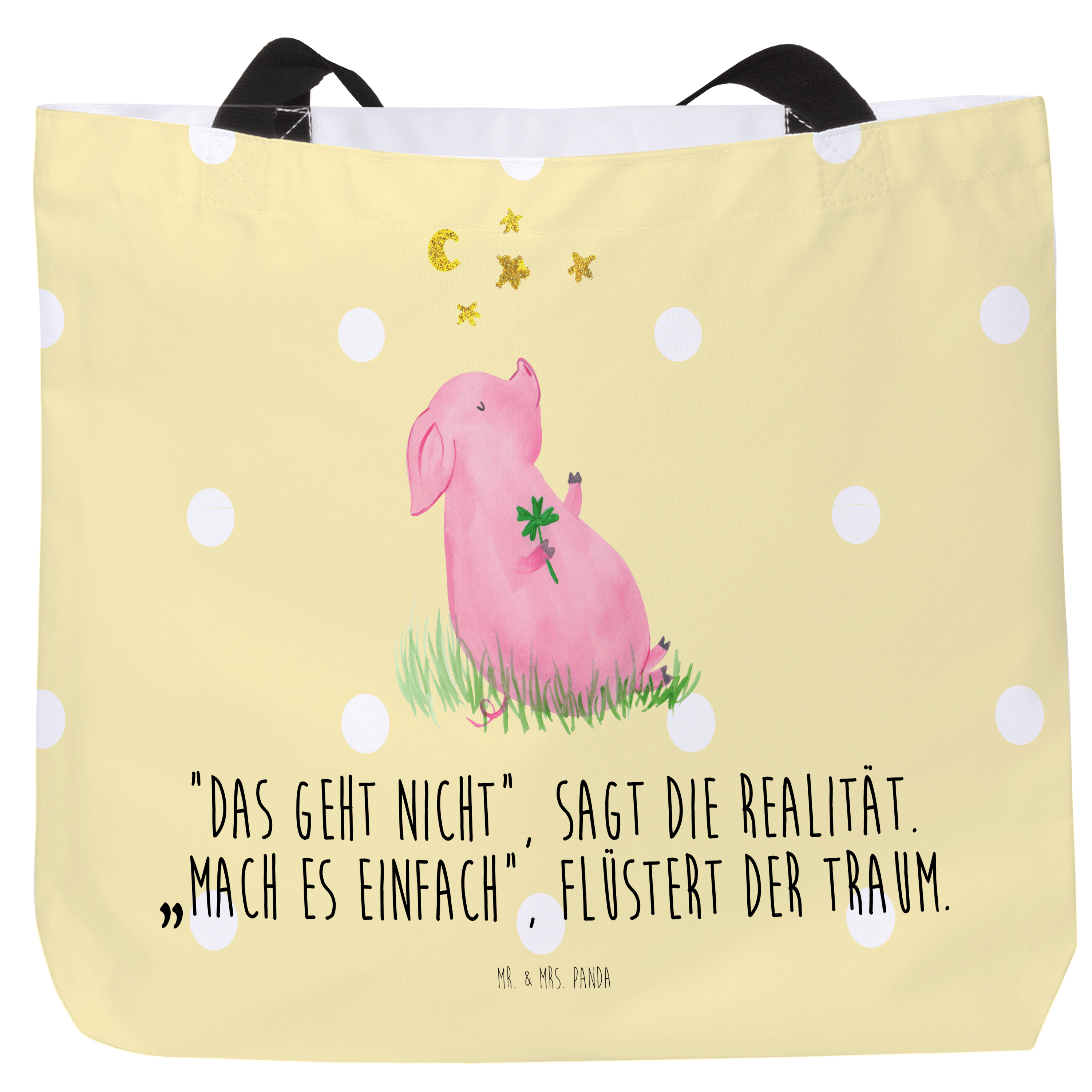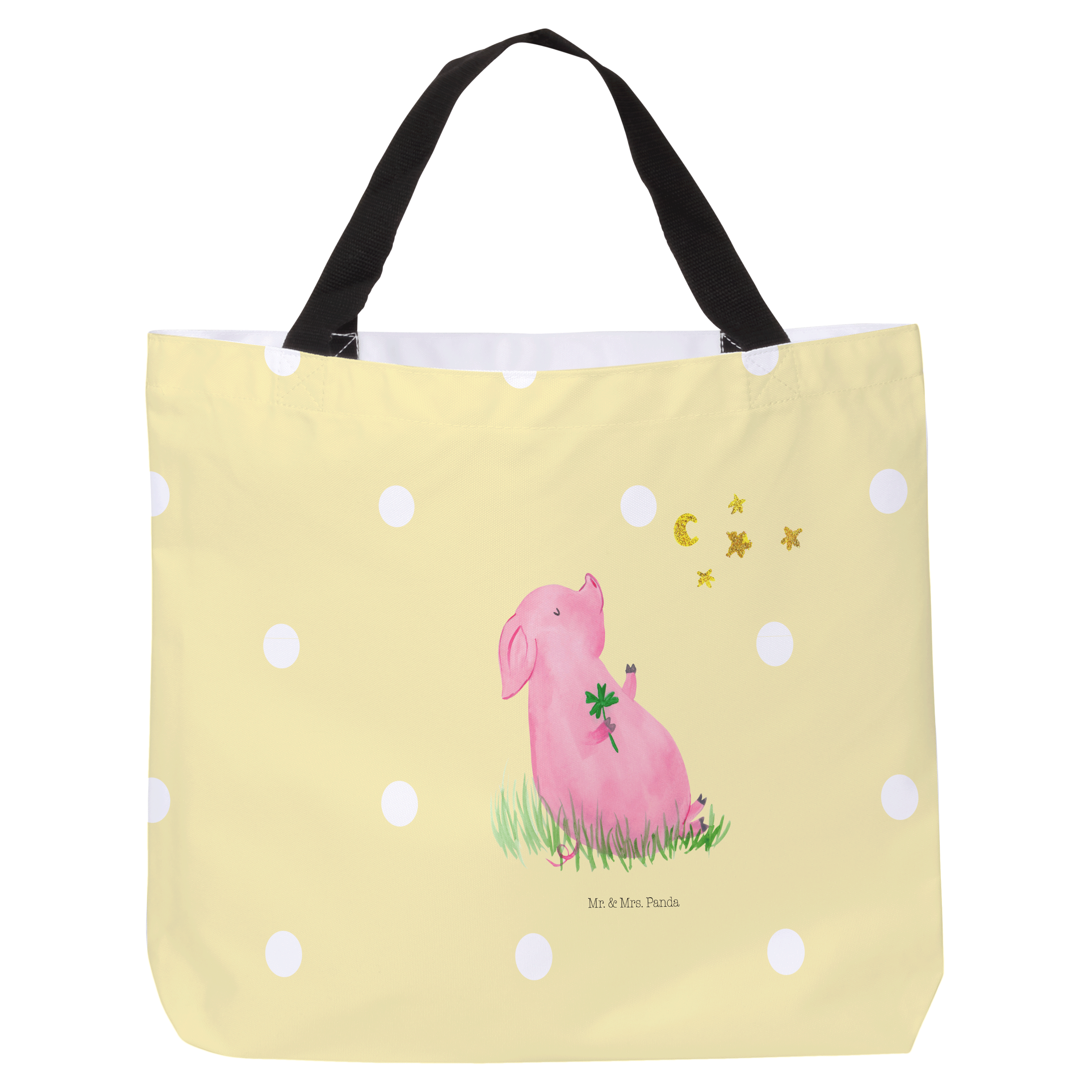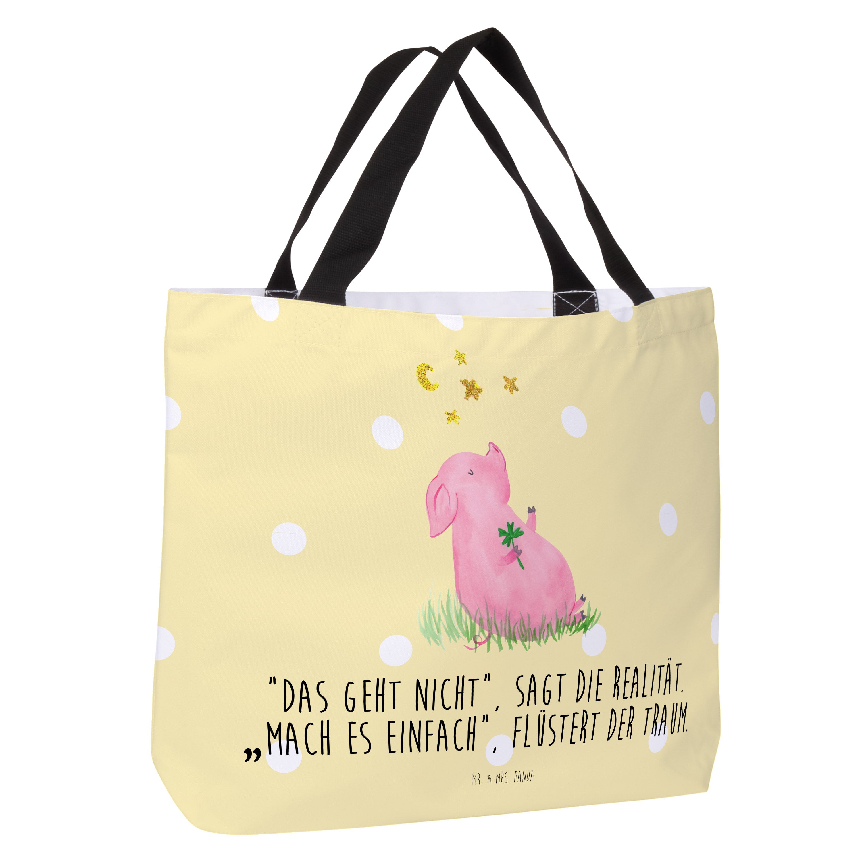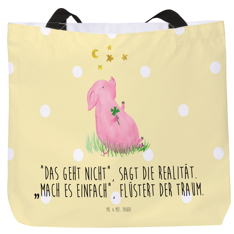 Shopper Glücksschwein - mit Spruch - Gelb Pastell