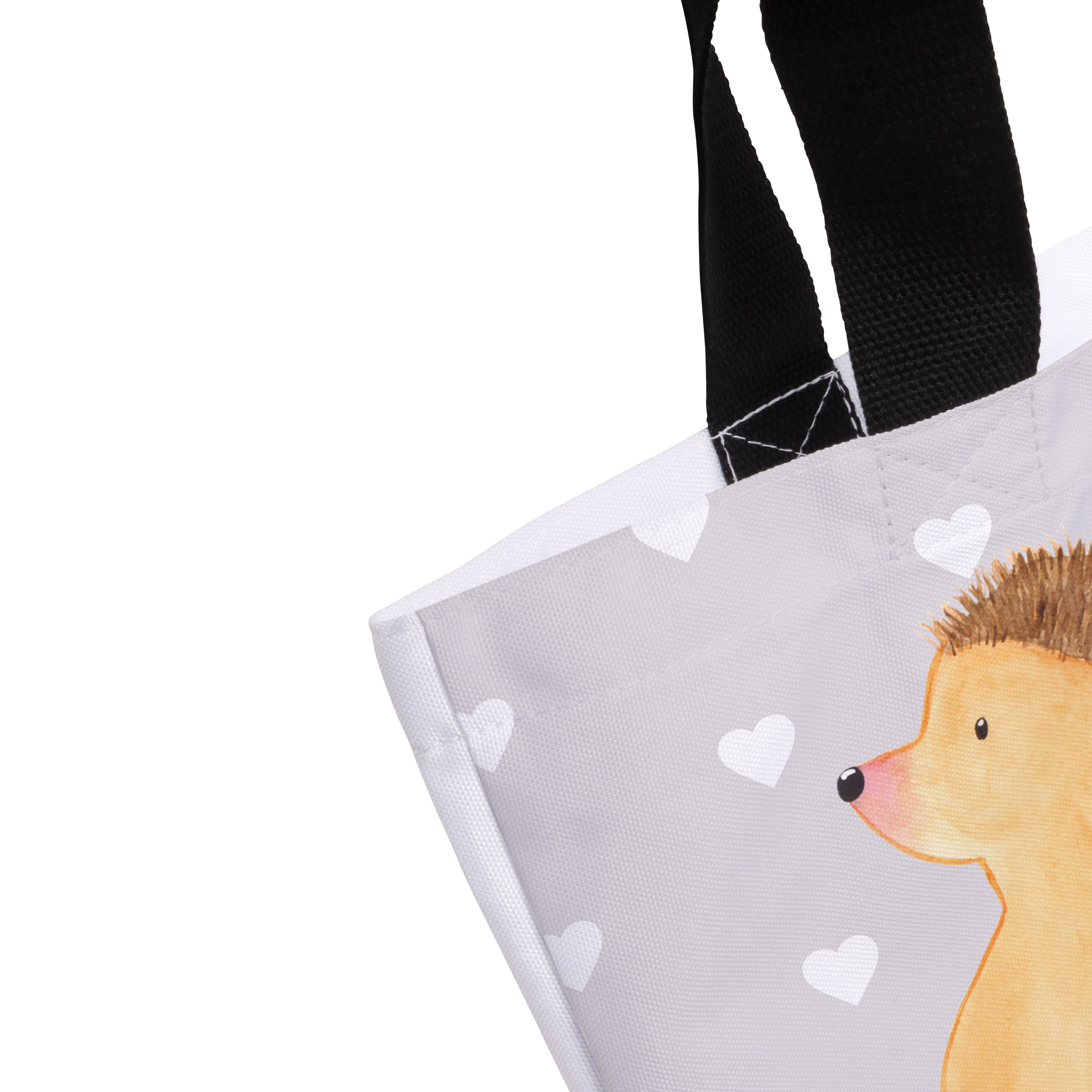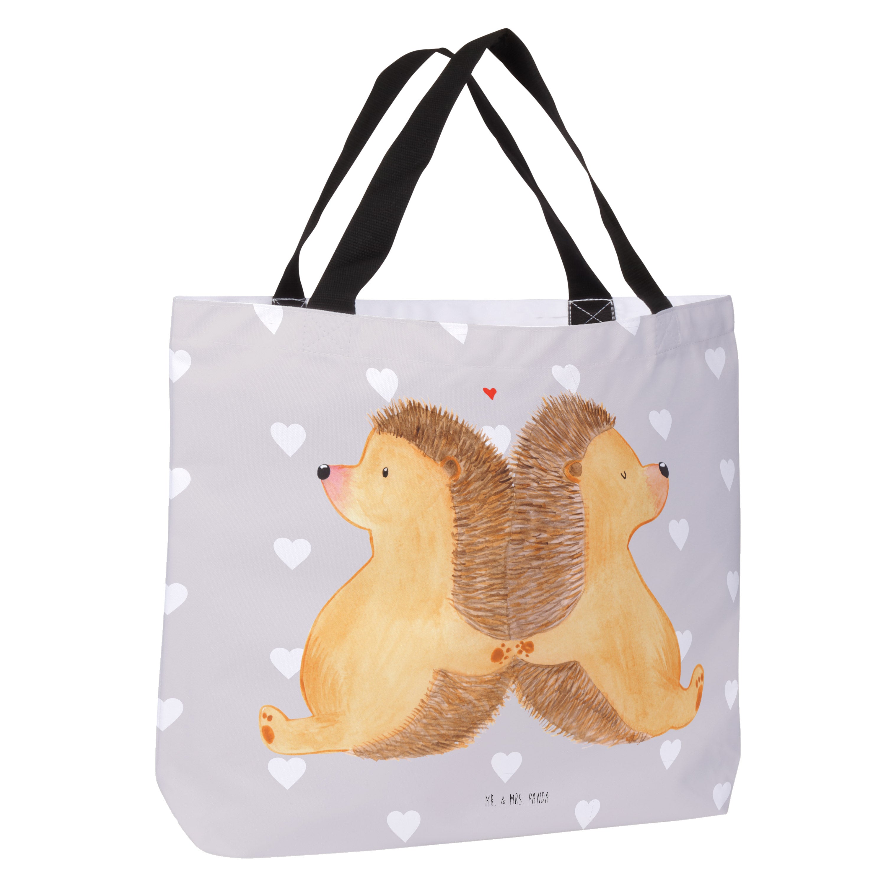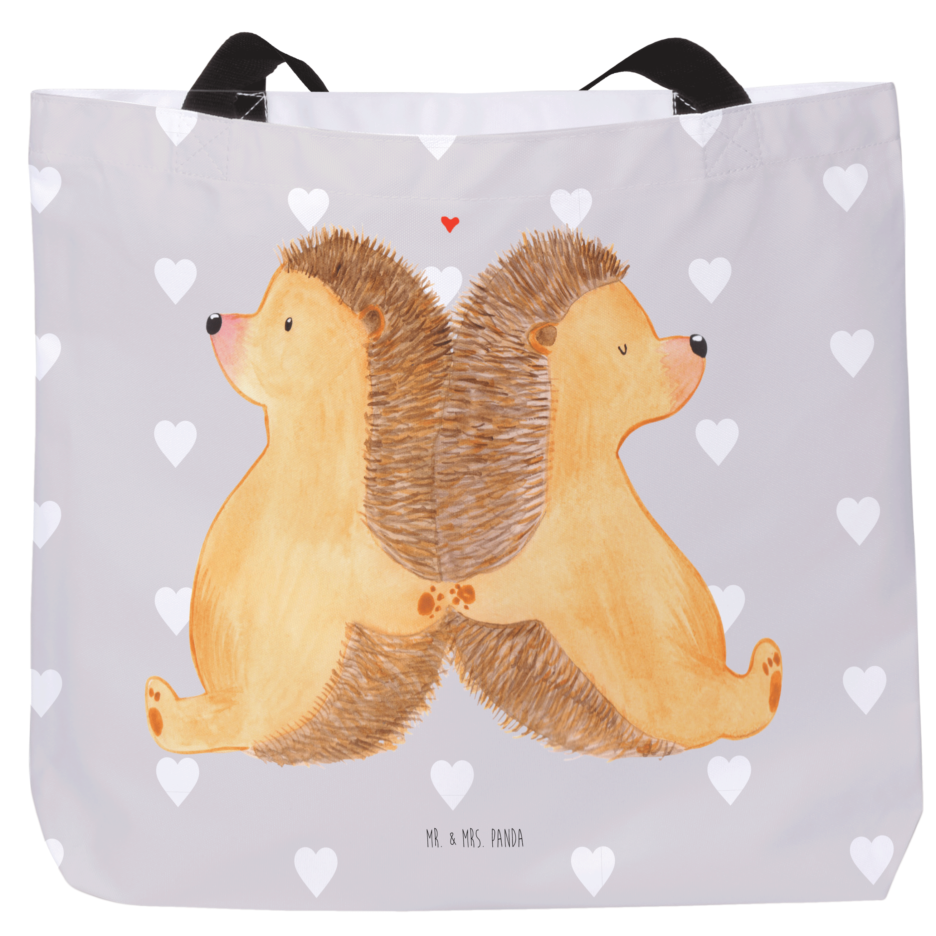 Shopper Igel händchenhaltend - mit Spruch - Grau Pastell