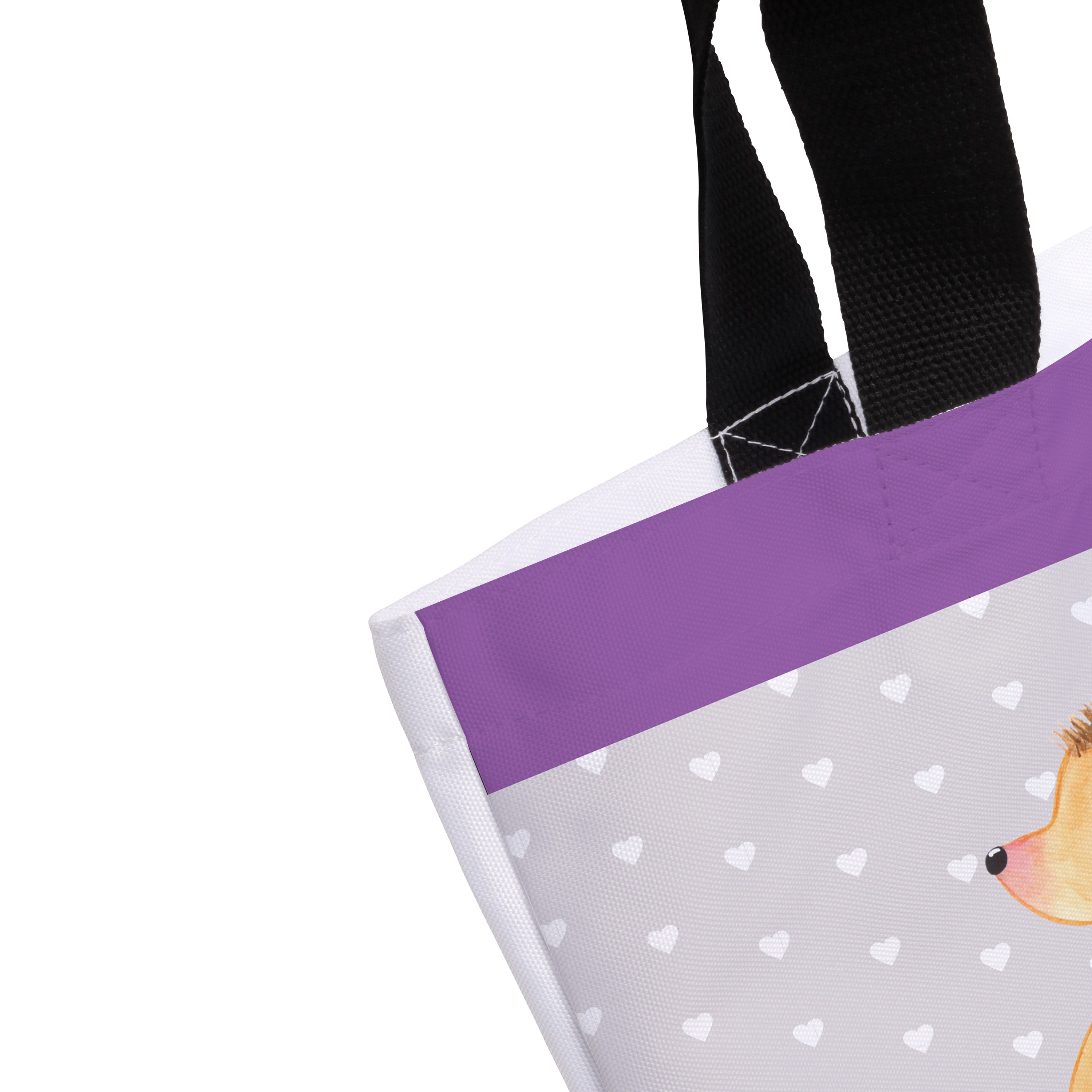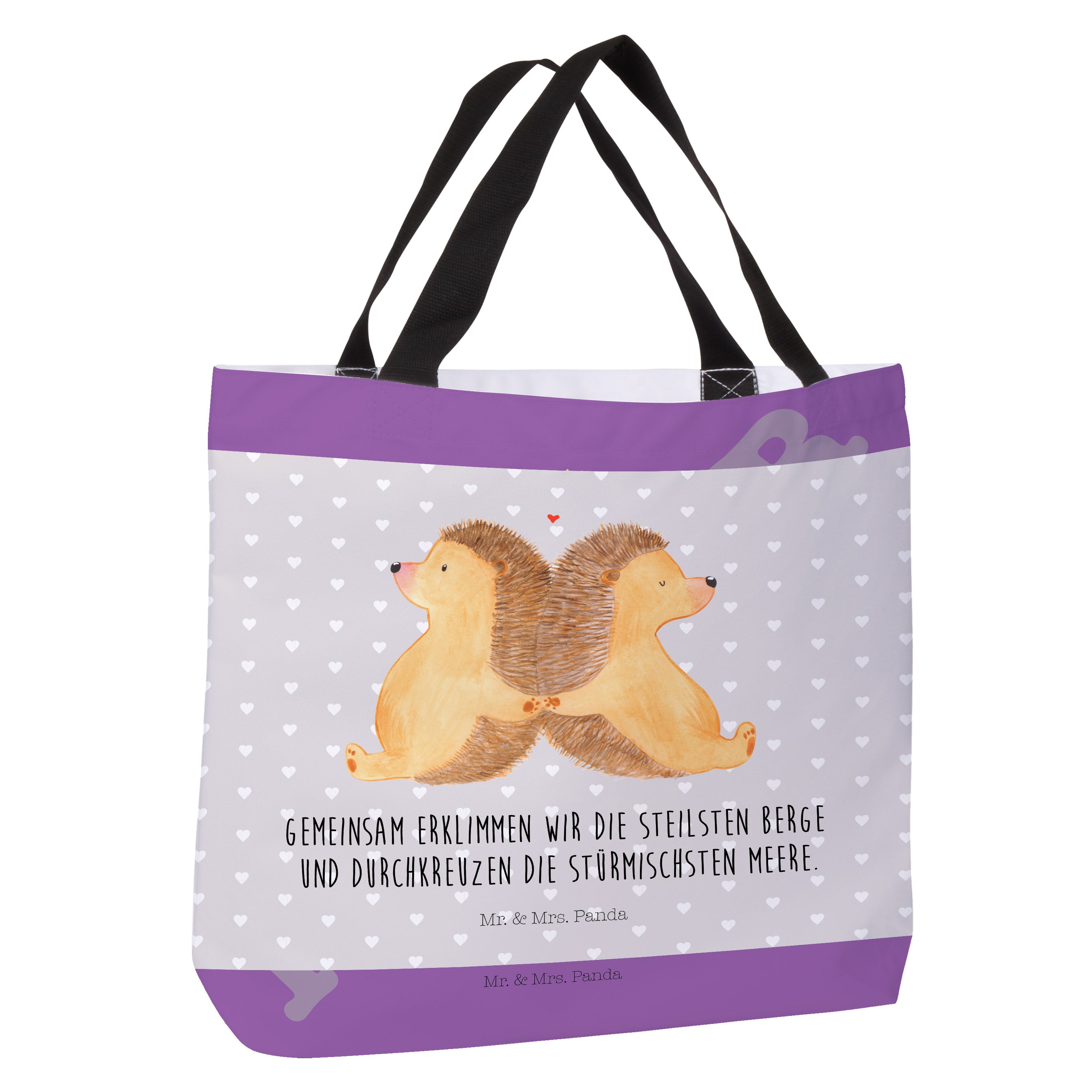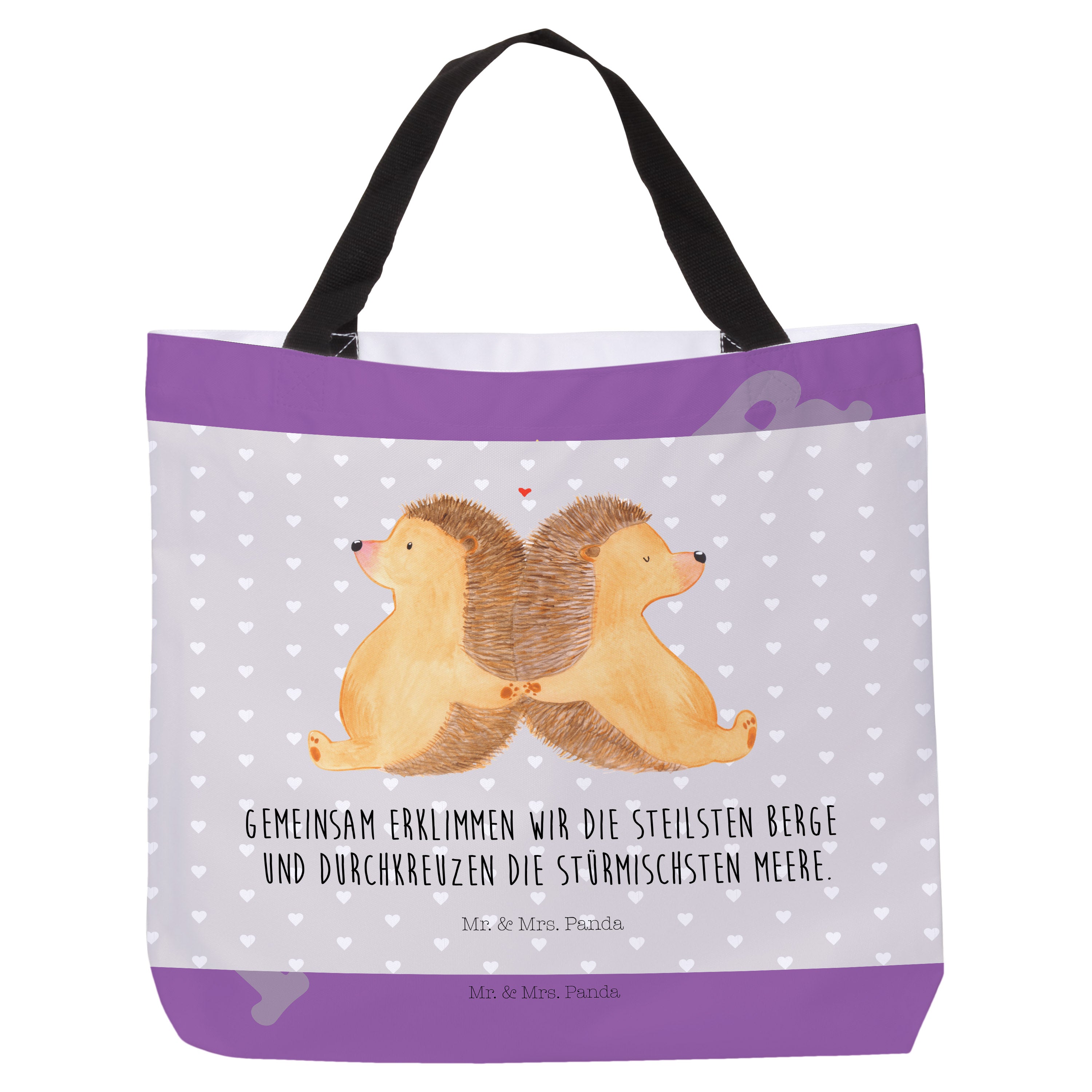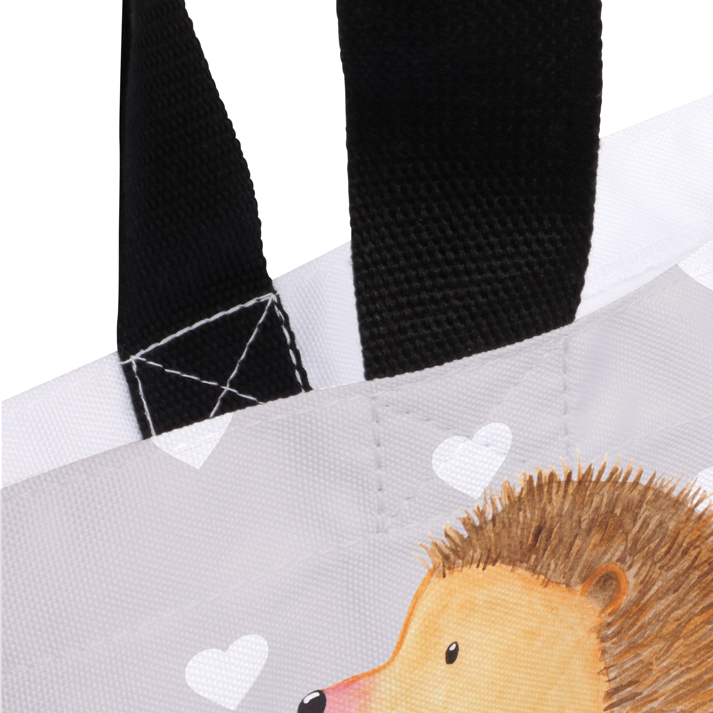 Shopper Igel händchenhaltend - mit Spruch - Grau Pastell