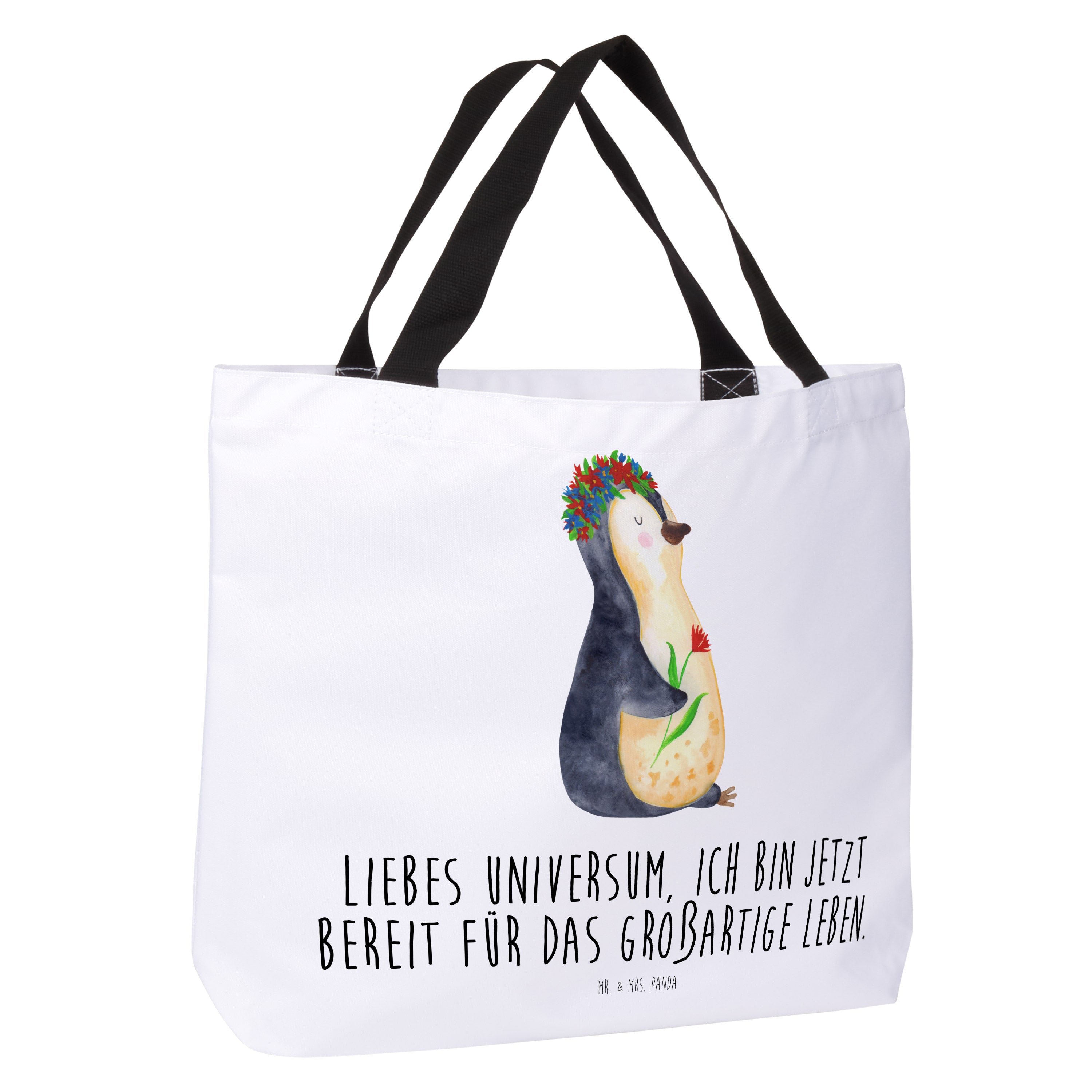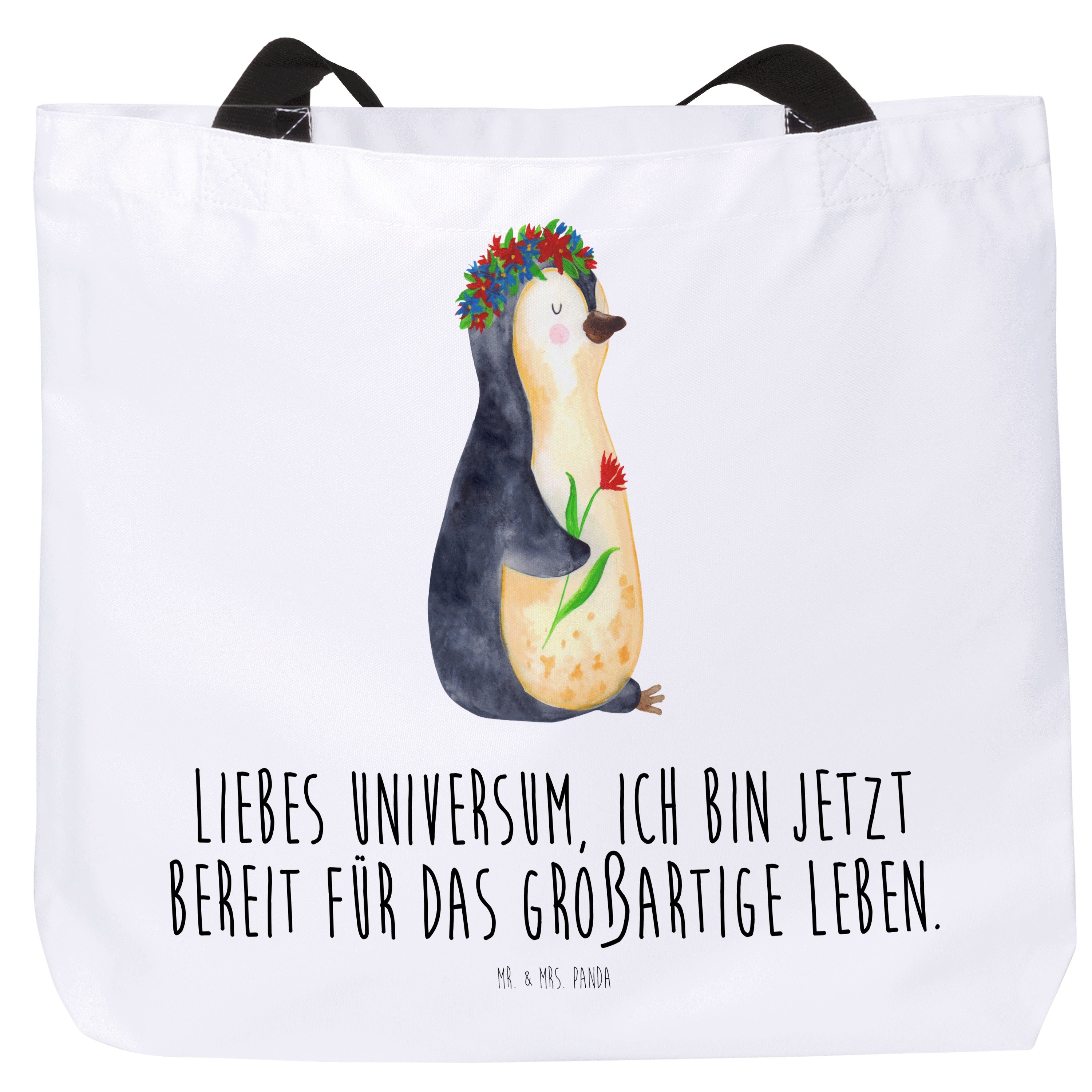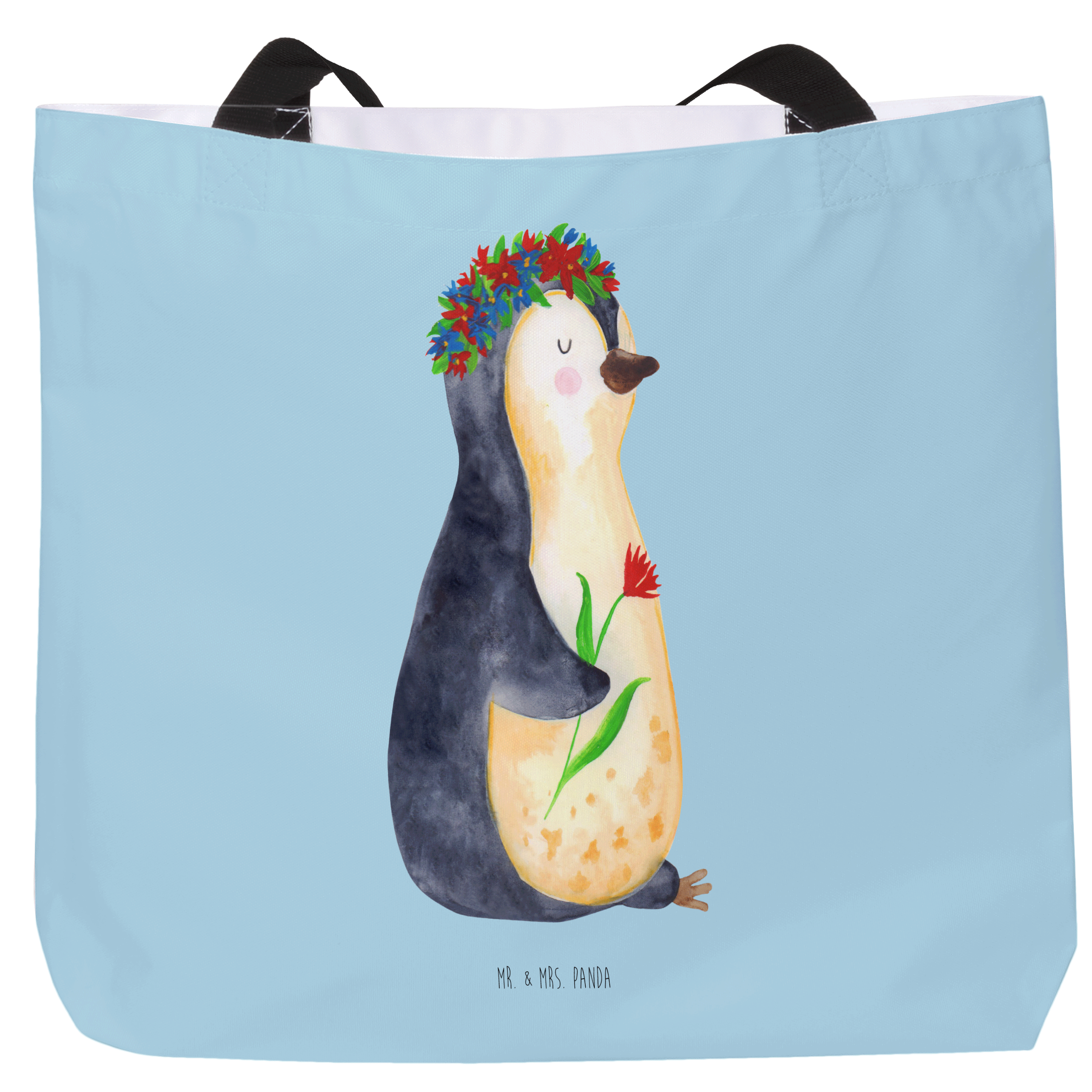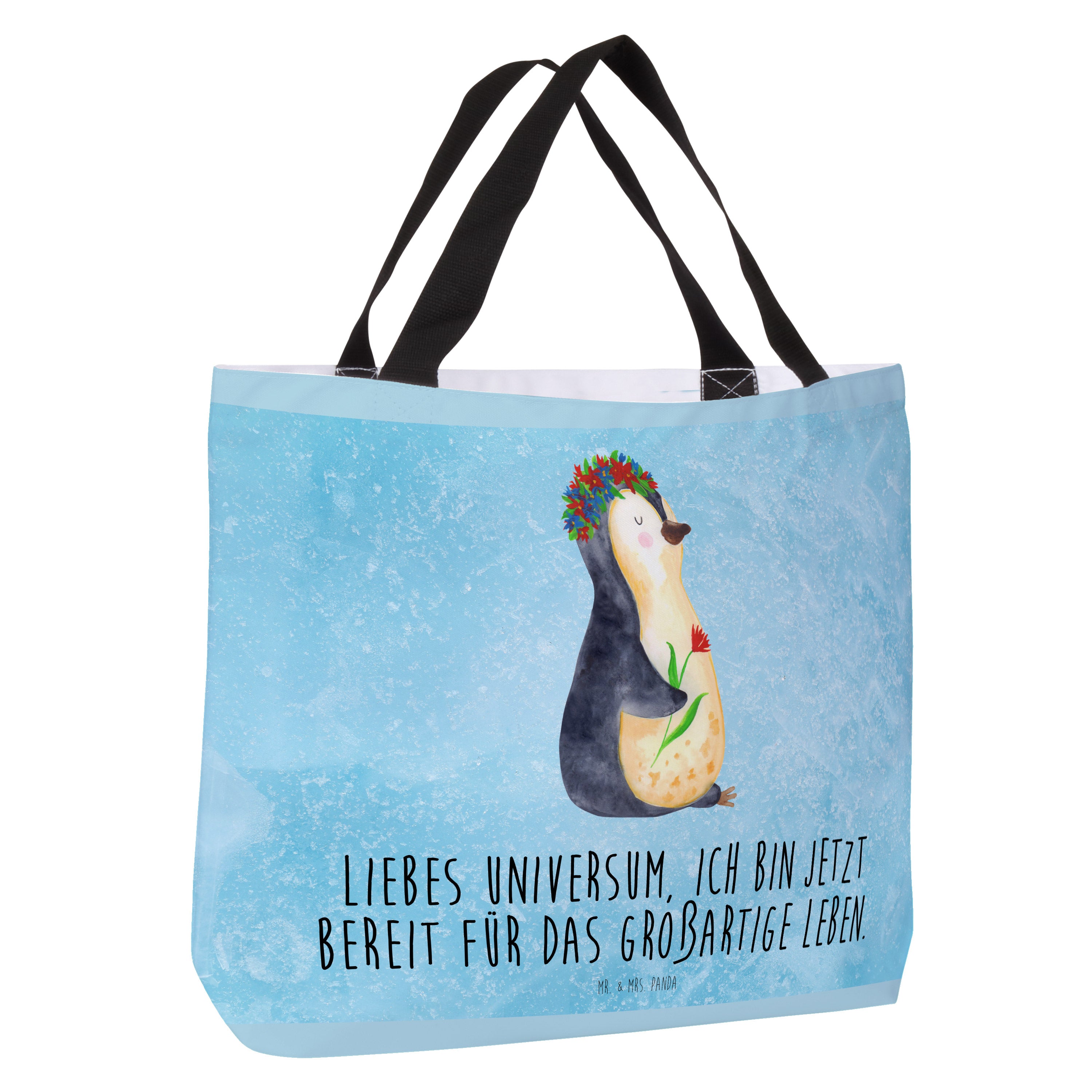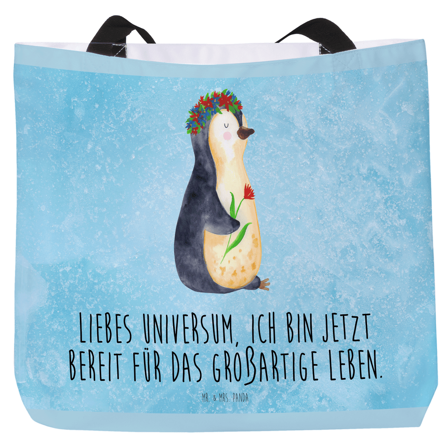 Shopper Pinguin Blumenkranz - mit Spruch - Eisblau