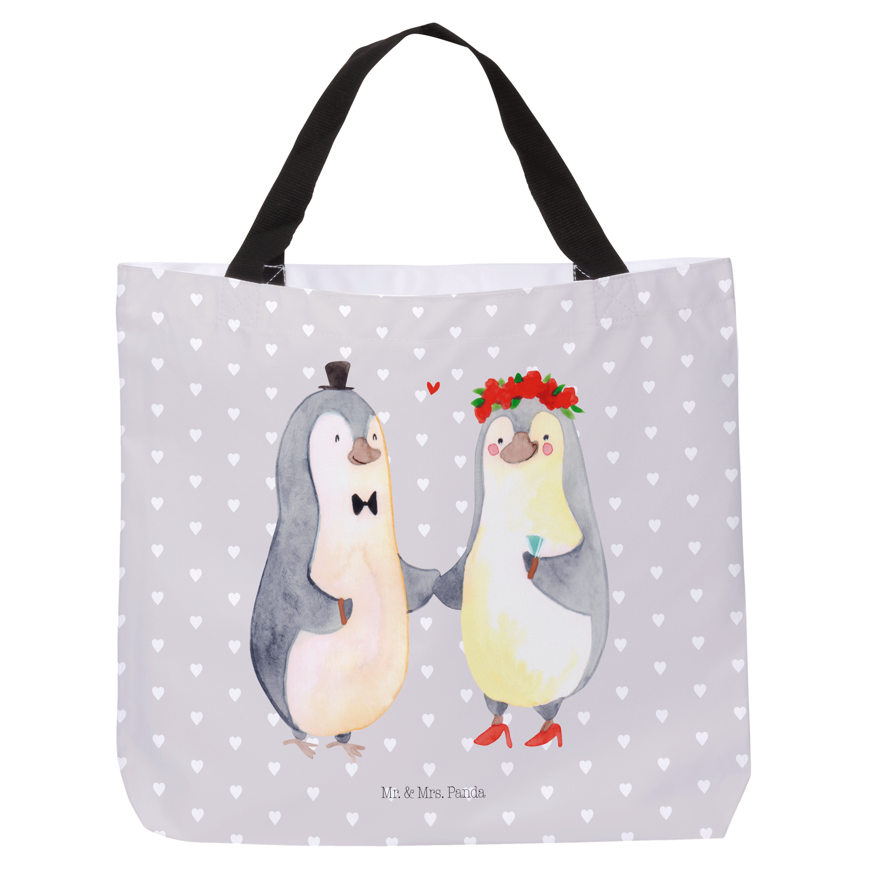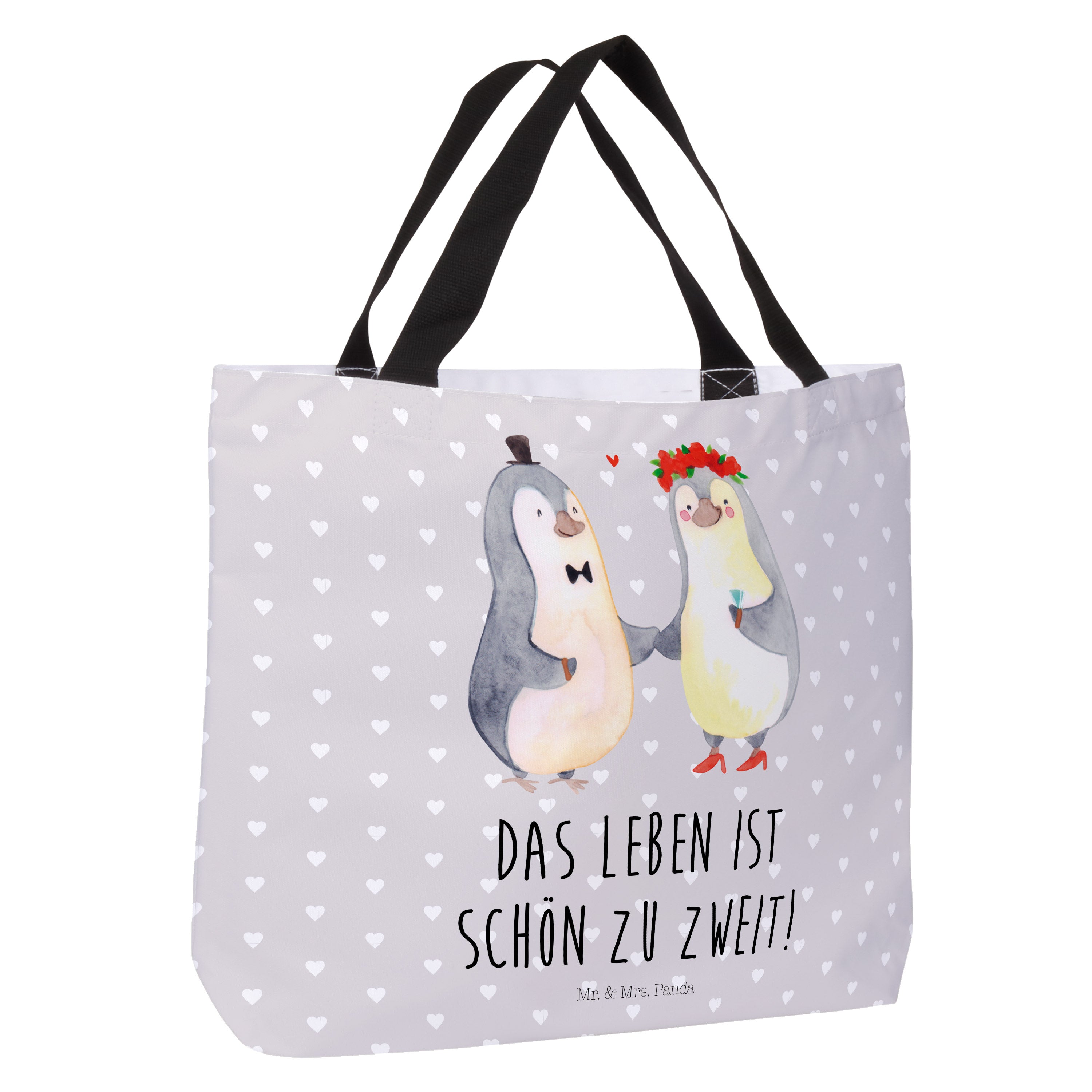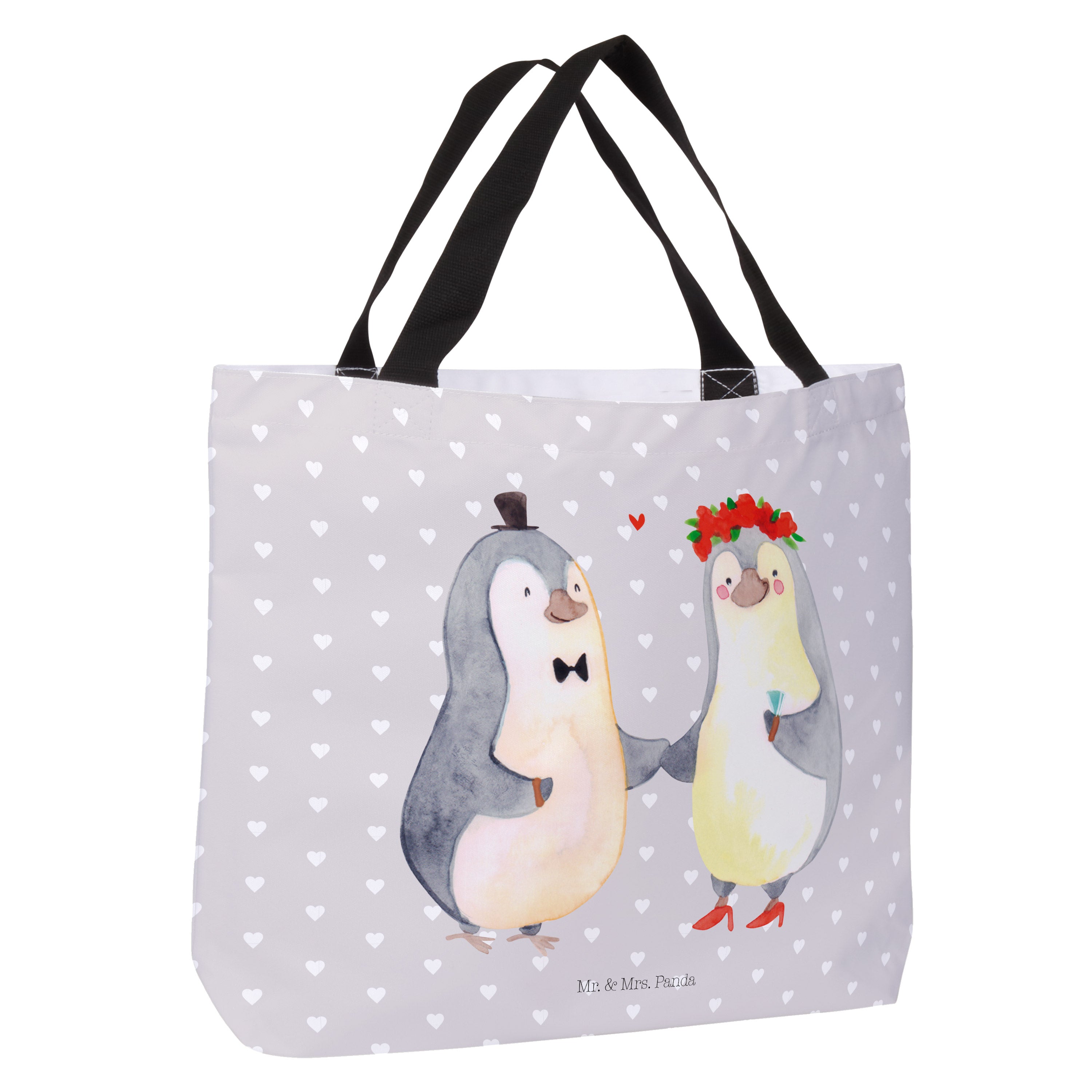 Shopper Pinguin Heirat - mit Spruch - Grau Pastell