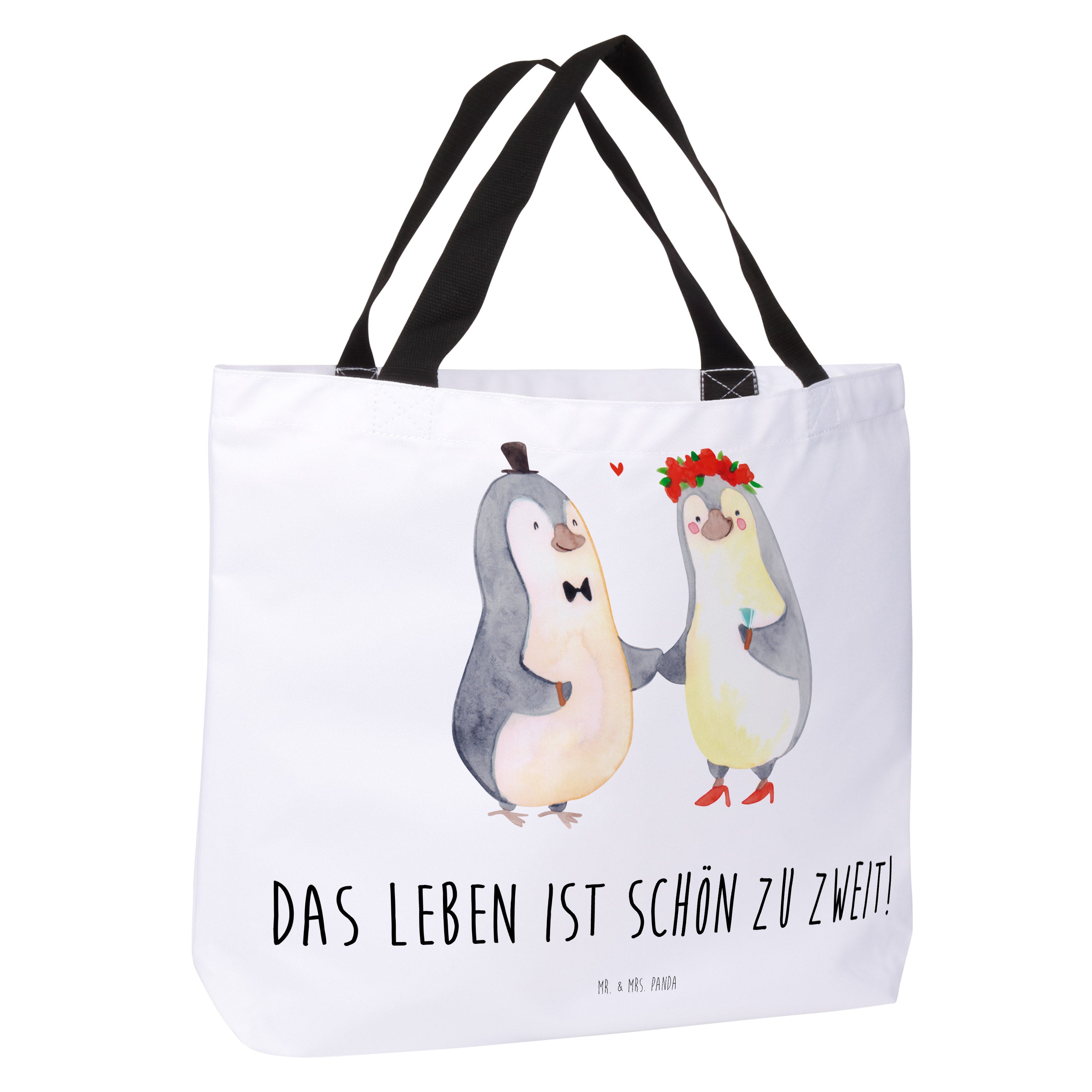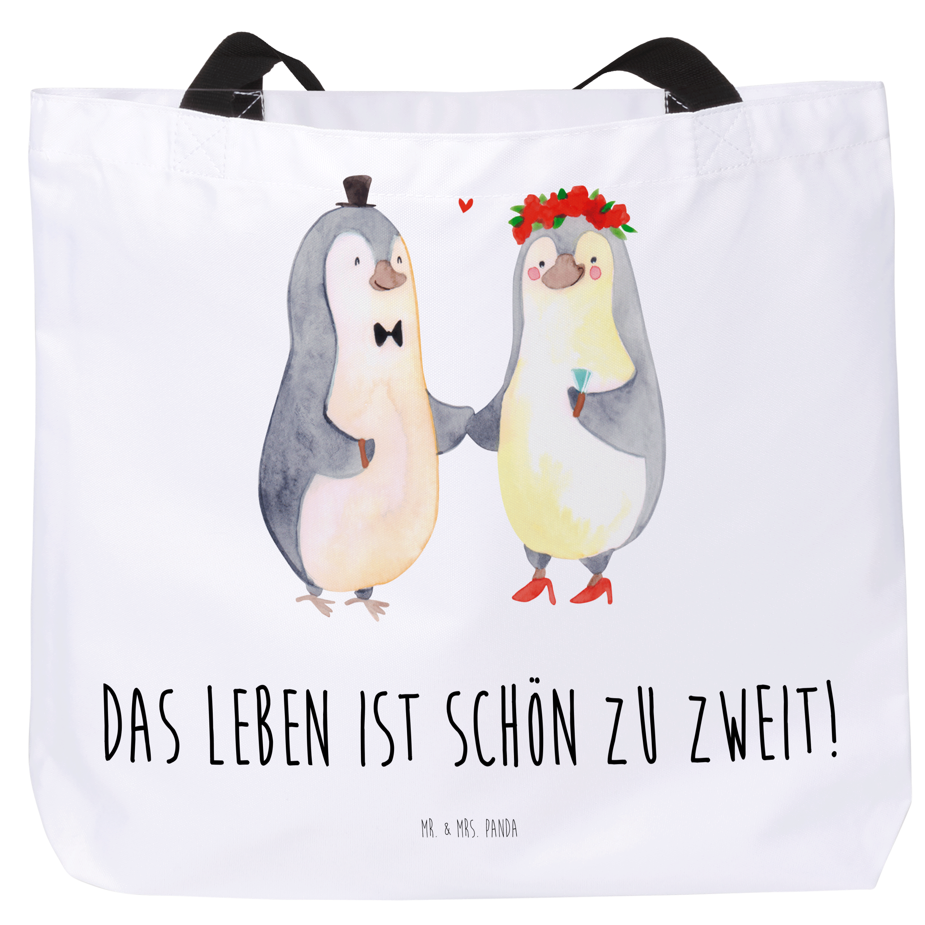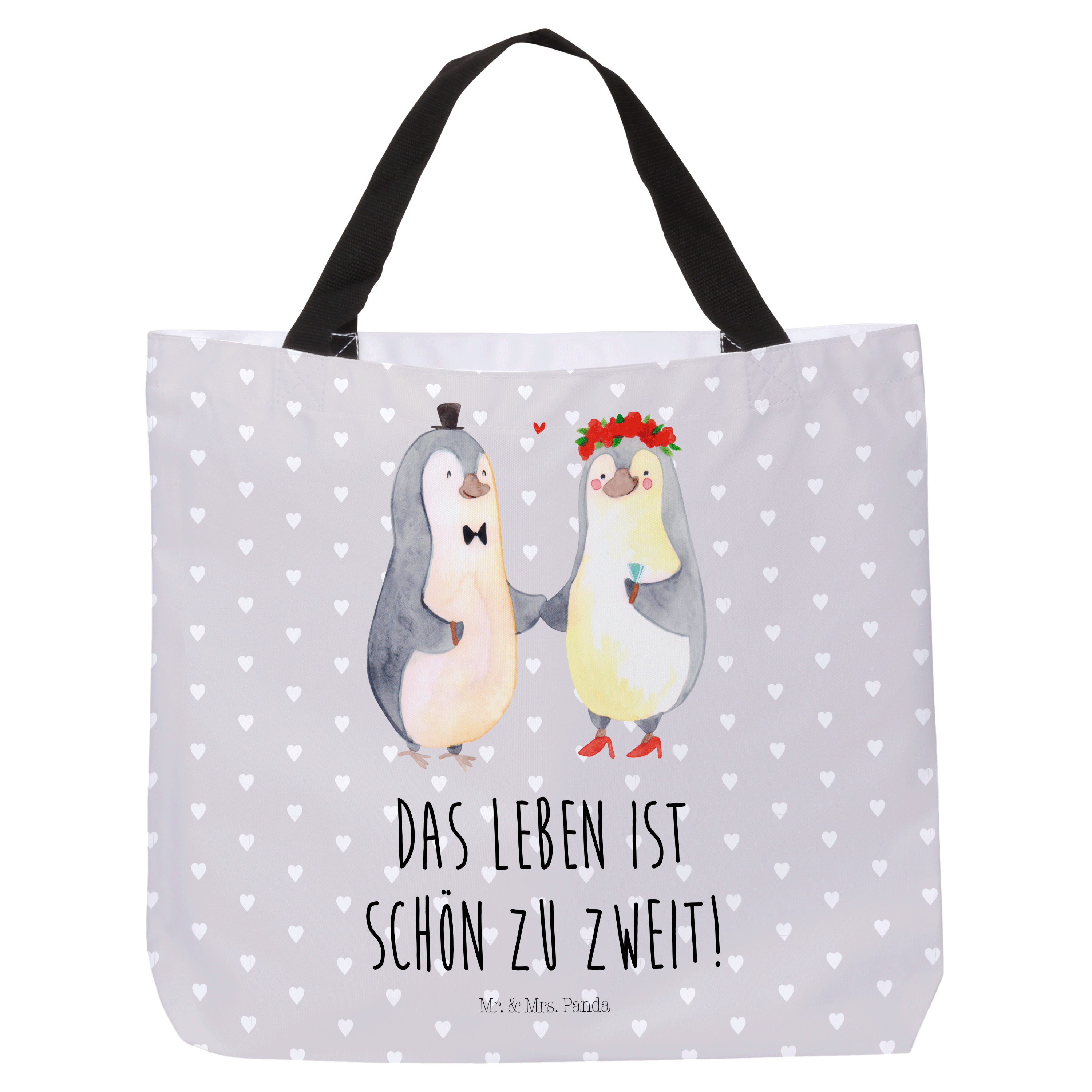 Shopper Pinguin Heirat - mit Spruch - Grau Pastell