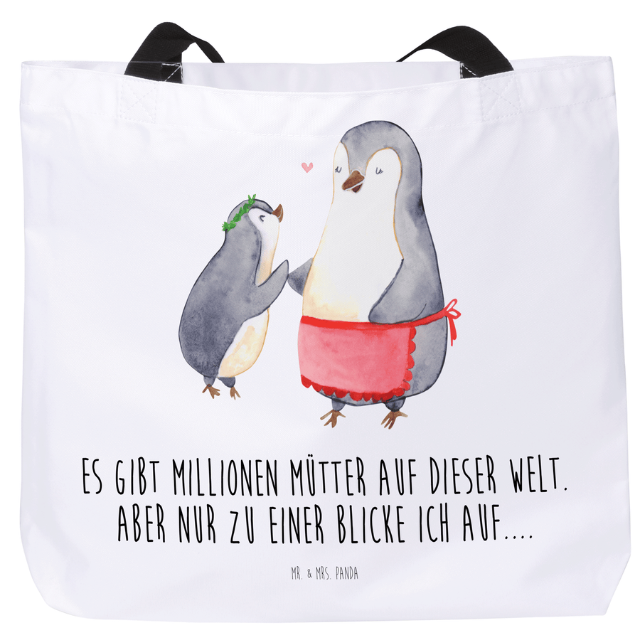 Shopper Pinguin mit Kind - mit Spruch - Weiß