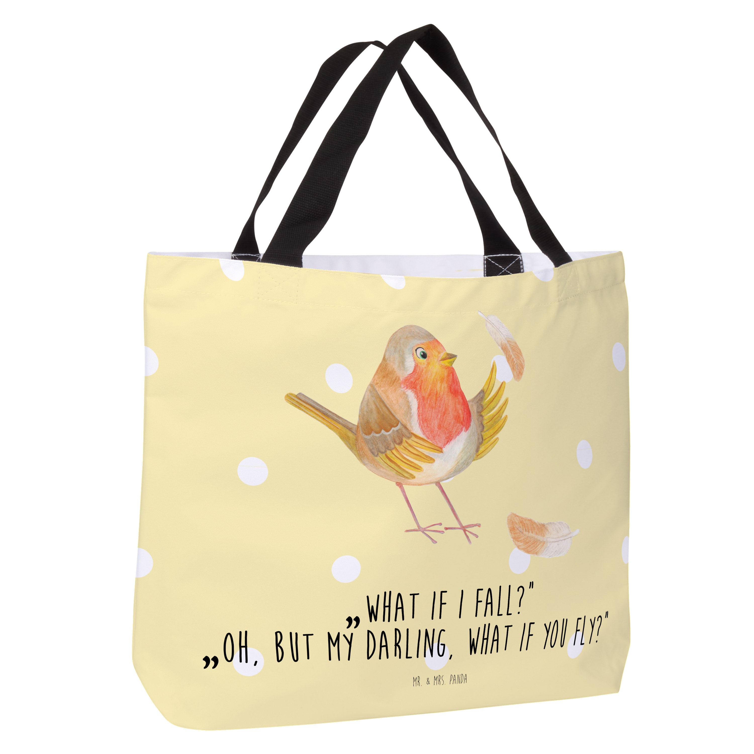 Shopper Rotkehlchen mit Federn - mit Spruch - Gelb Pastell