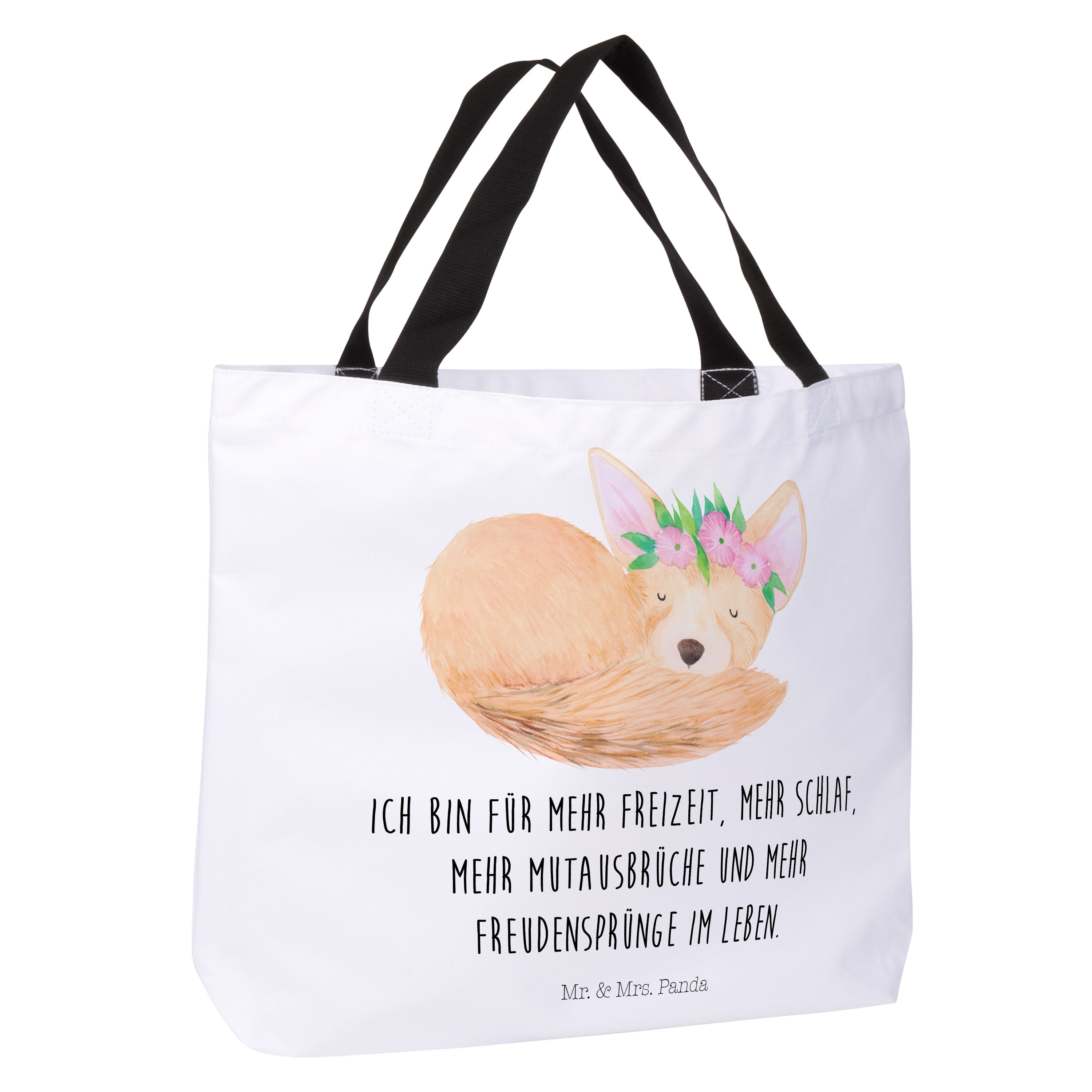 Shopper Wüstenfuchs Blumenkranz Beutel, Einkaufstasche, Tasche, Strandtasche, Einkaufsbeutel, Shopper, Schultasche, Freizeittasche, Tragebeutel, Schulbeutel, Alltagstasche, Afrika, Wildtiere, Wüste, Wüstenfuchs, Blumen, Blumenkranz, Glücklich