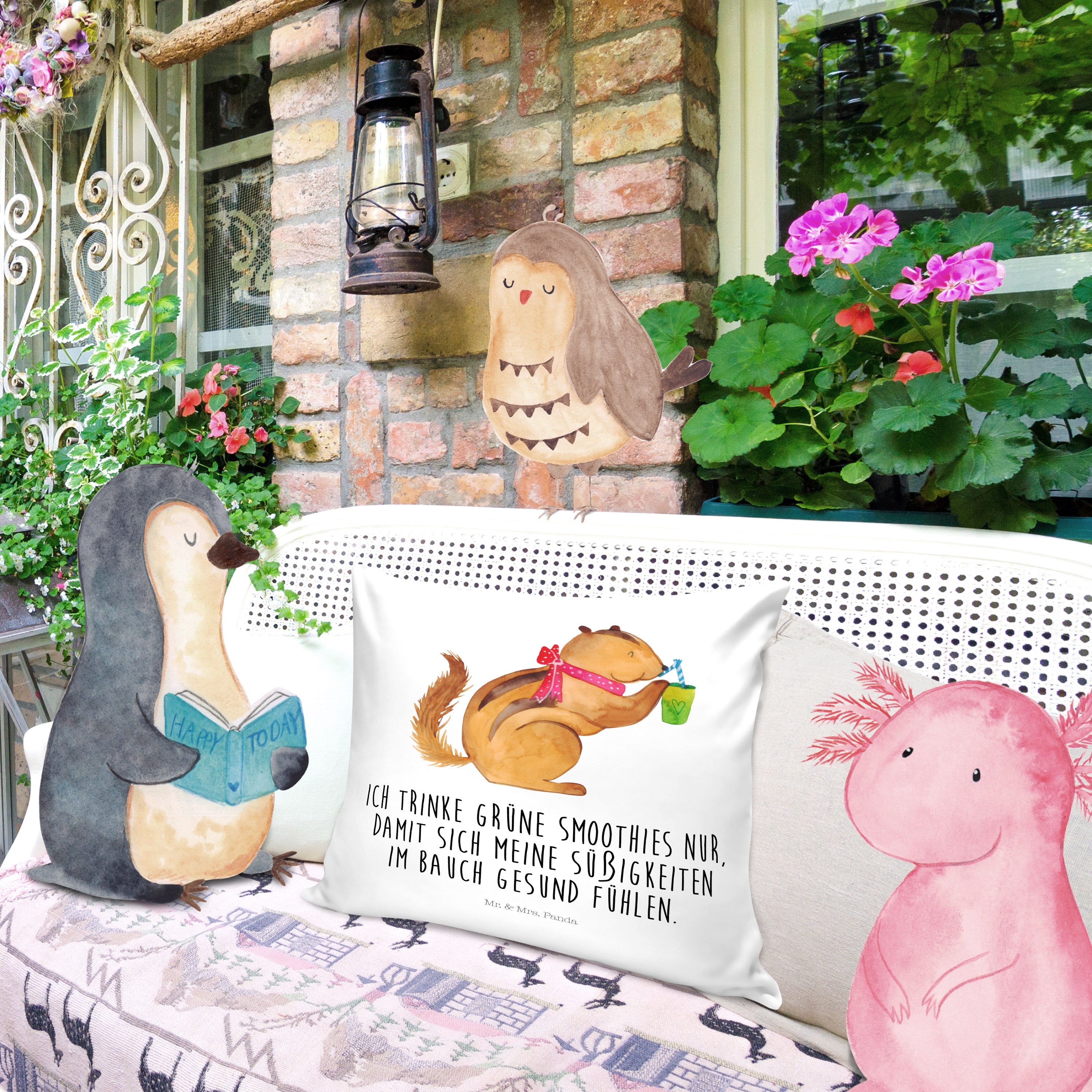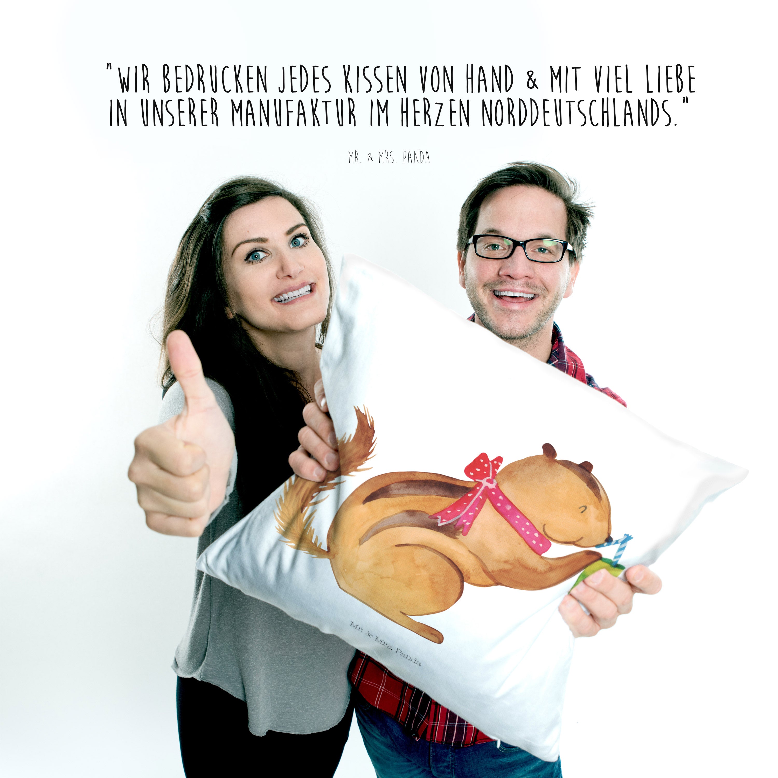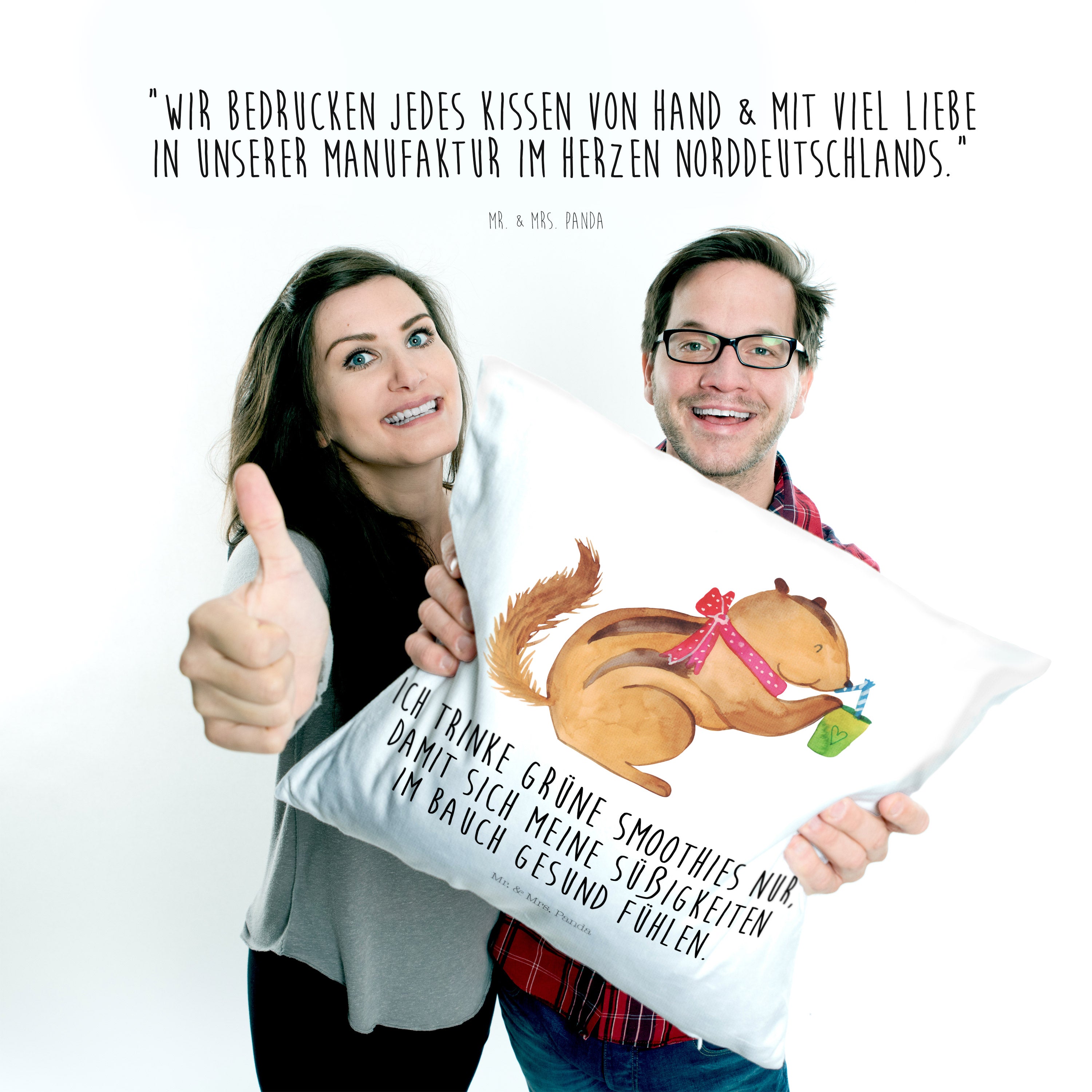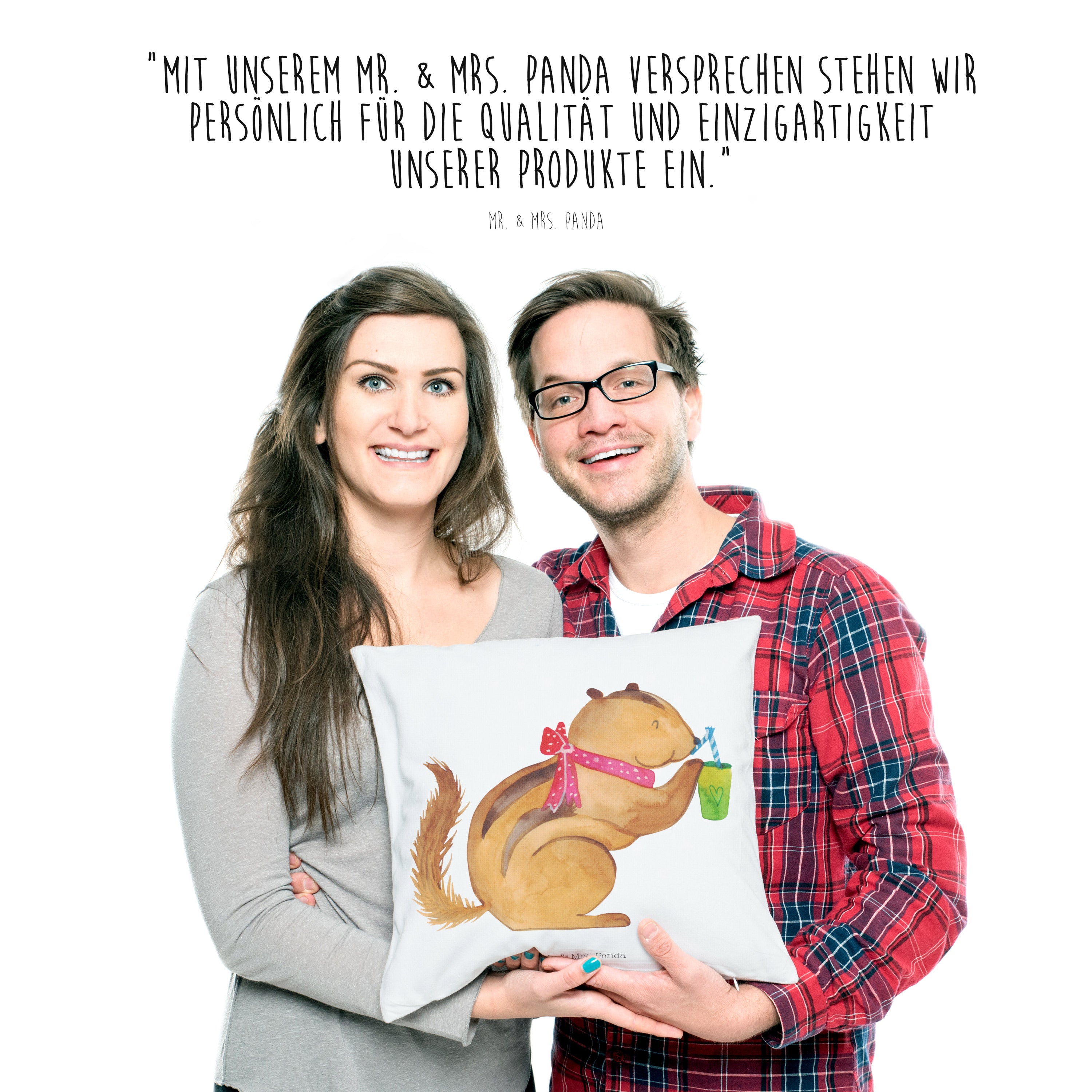 Du dachtest, du hättest schon alles gesehen, aber dann siehst du das niedliche Streifenhörnchen auf deinem neuen Eichhörnchen Smoothie Kissen. Das kleine Kerlchen schlürft genüsslich an einem Smoothie und du kannst dich gar nicht satt sehen an diesem entzückenden Motiv.