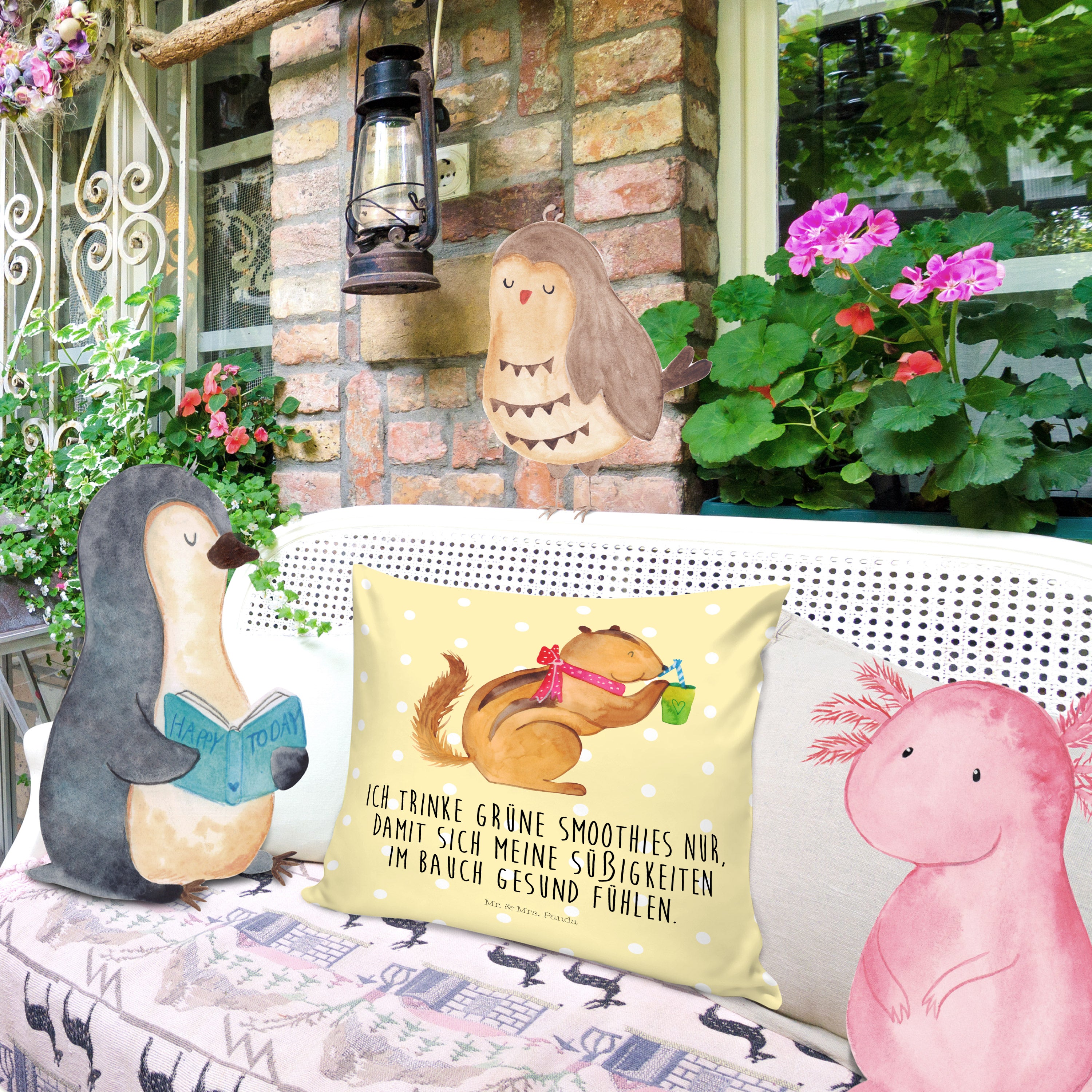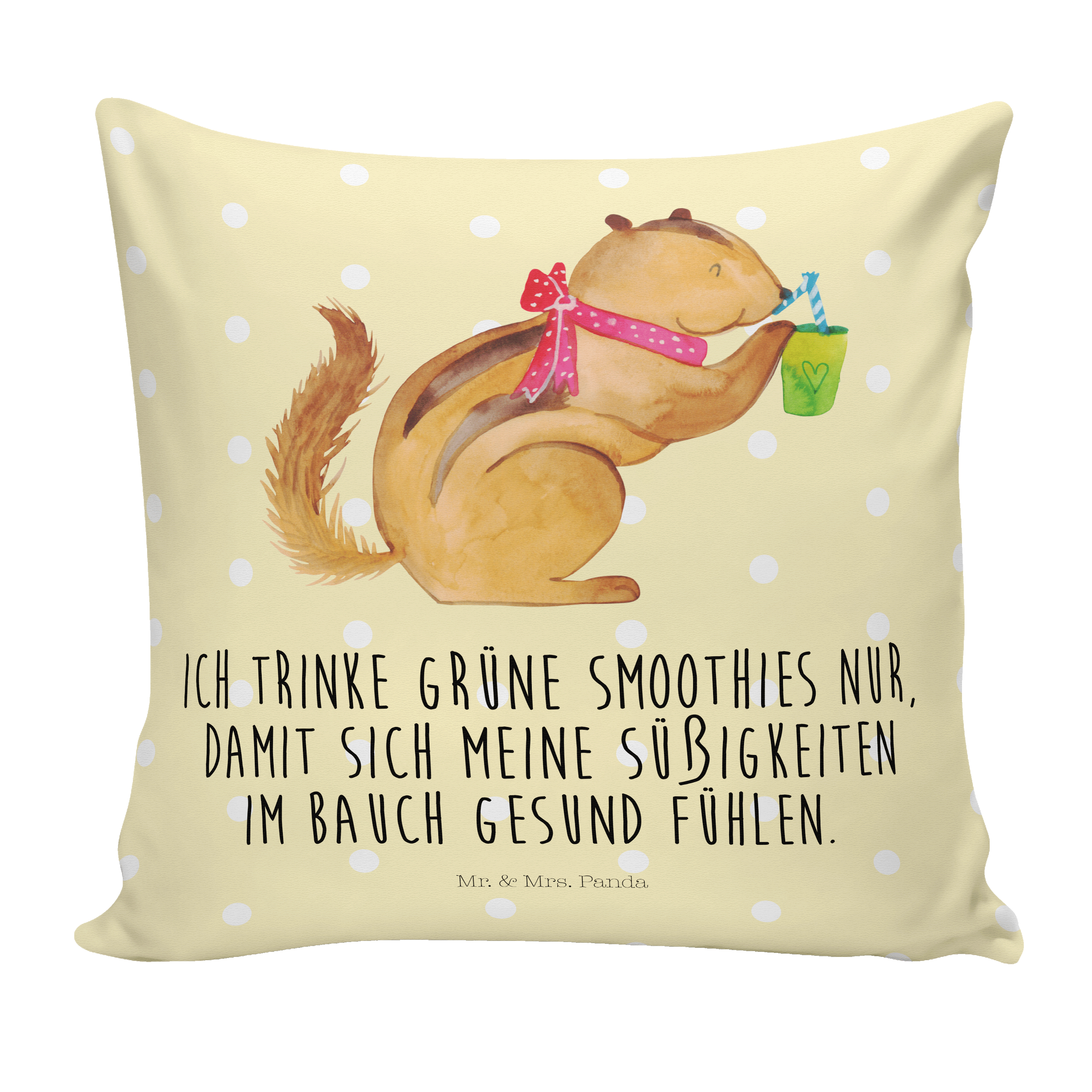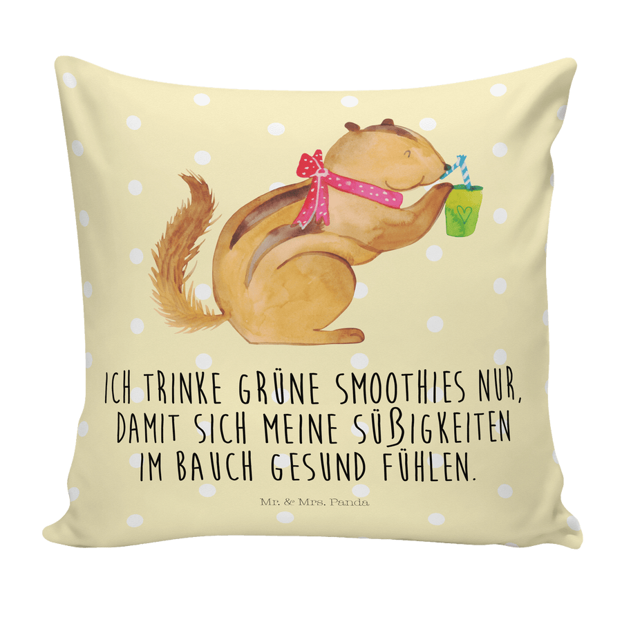 40x40 Kissen Eichhörnchen Smoothie - mit Spruch - Gelb Pastell