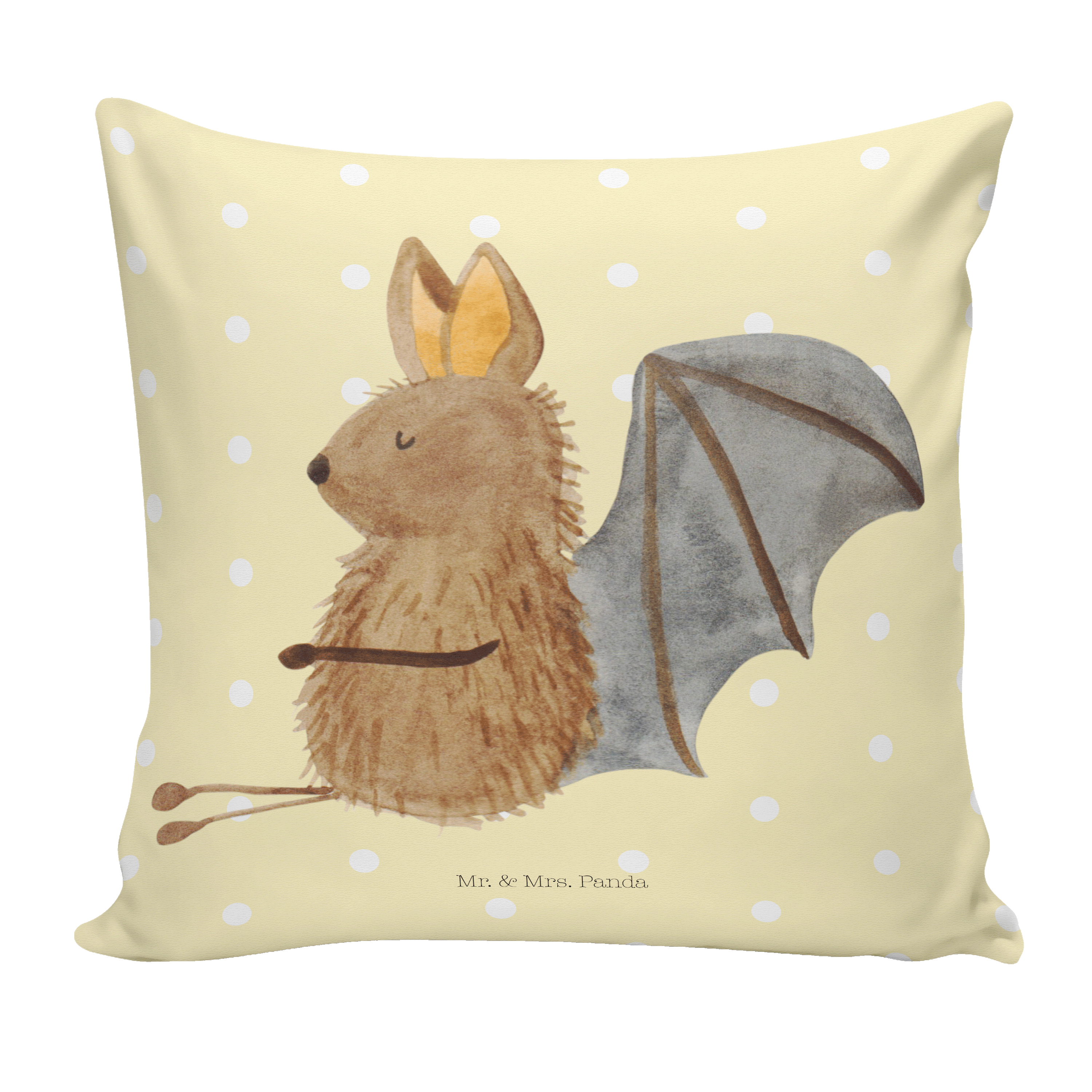 40x40 Kissen Fledermaus sitzend - mit Spruch - Gelb Pastell