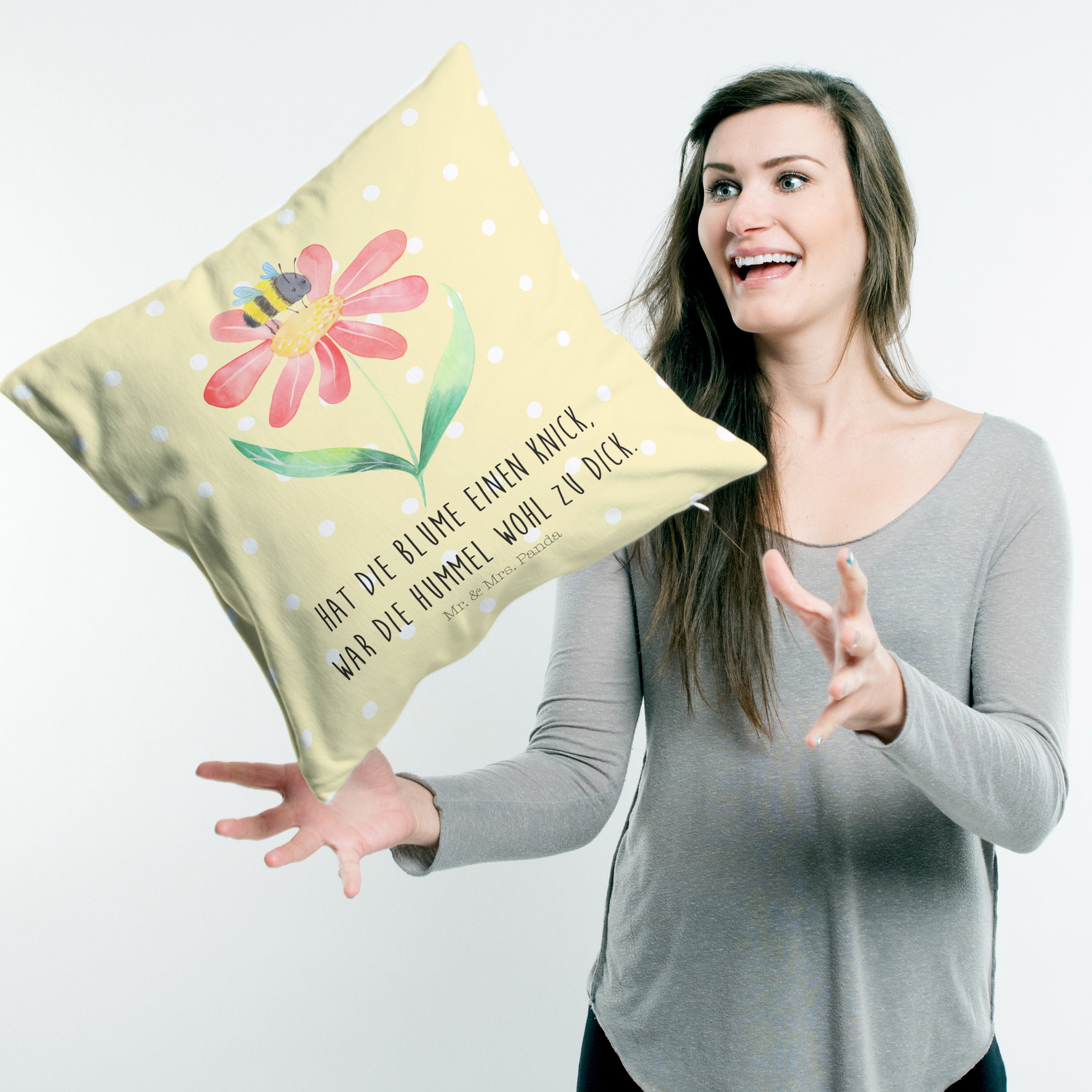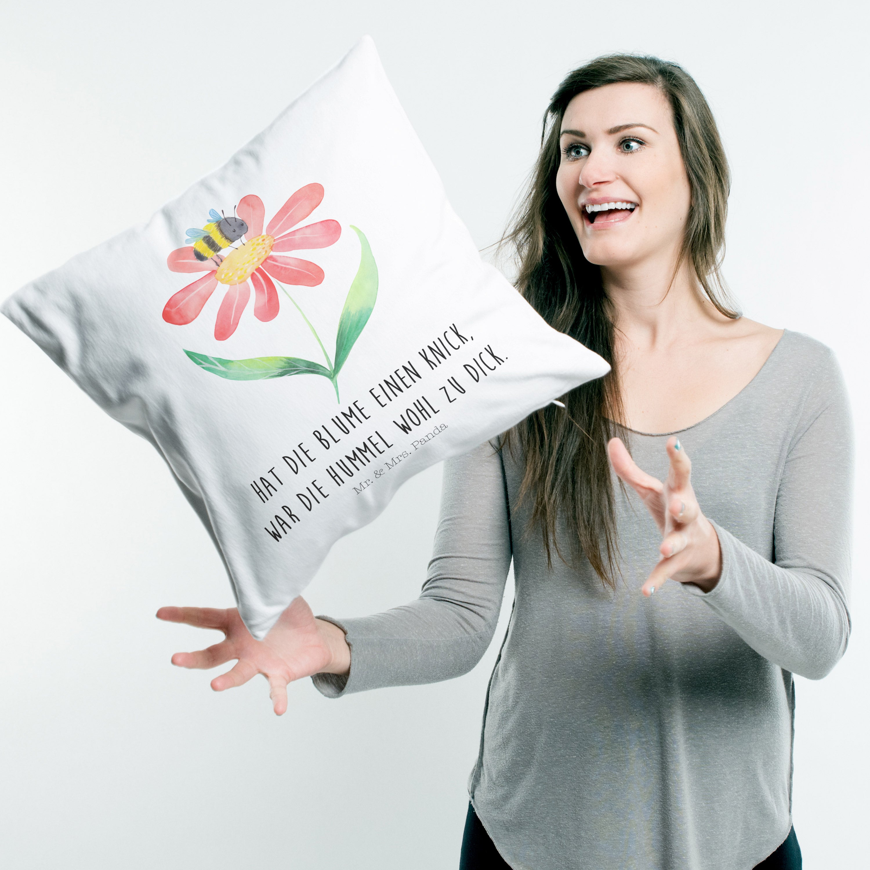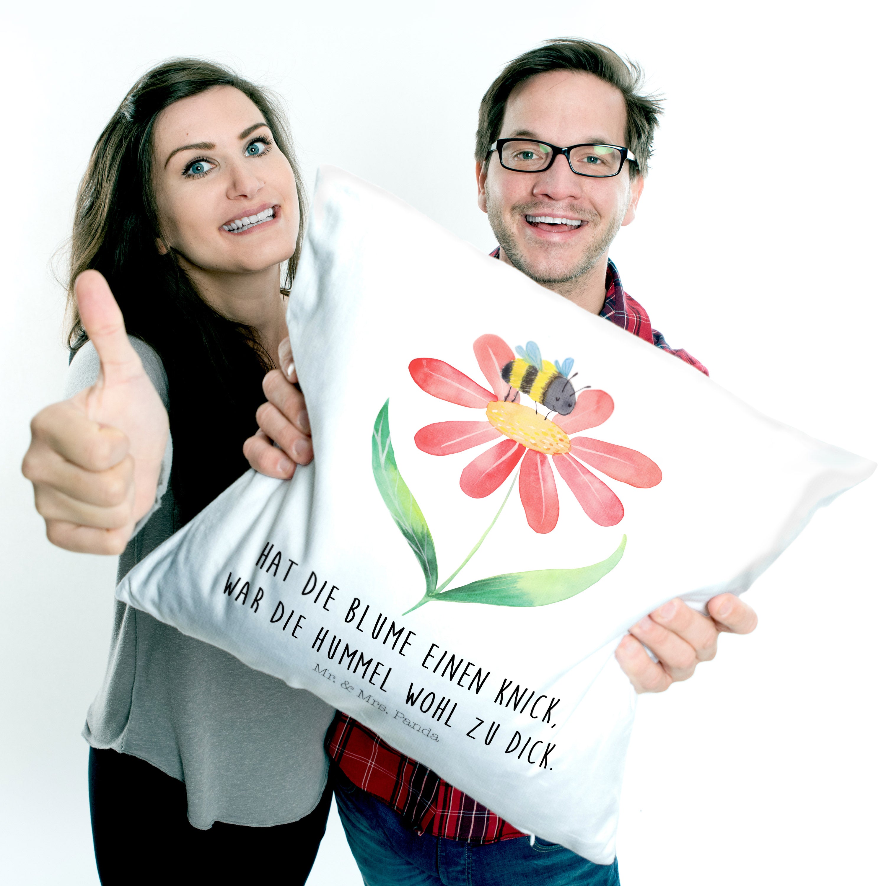 40x40 Kissen Hummel Blume - mit Spruch - Weiß