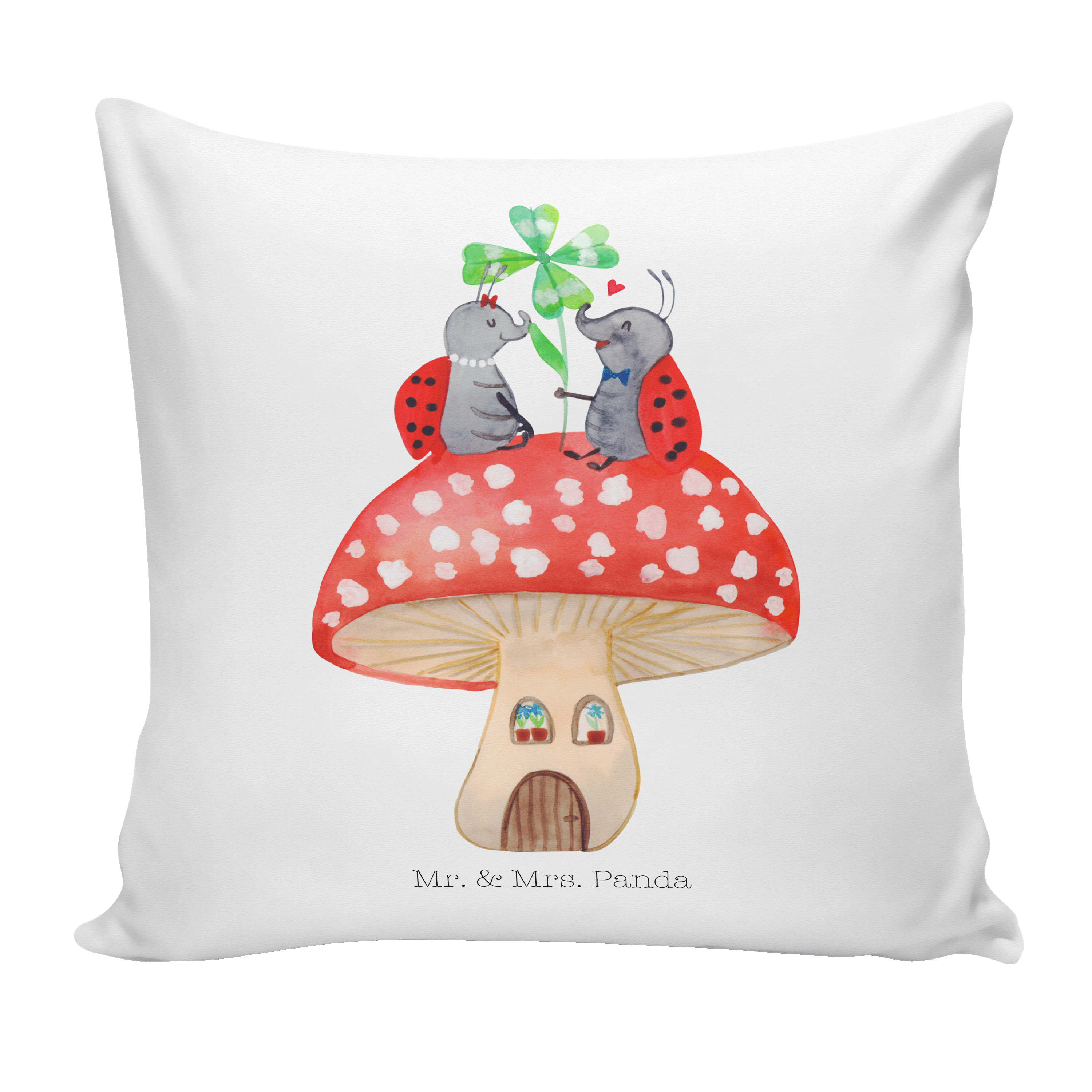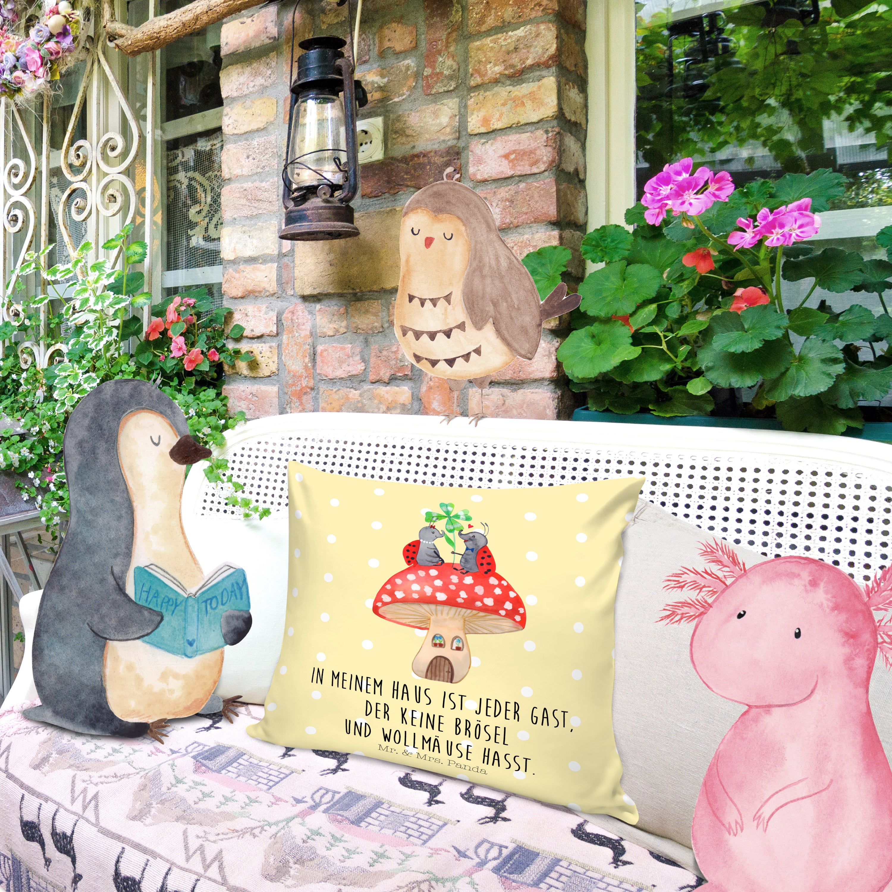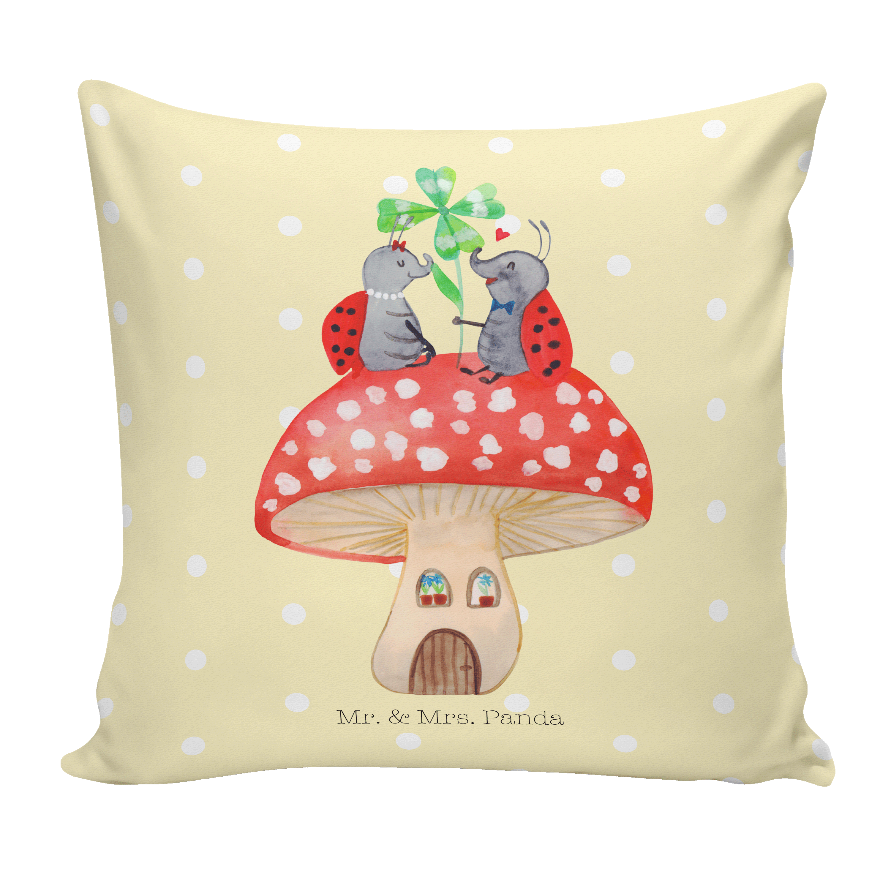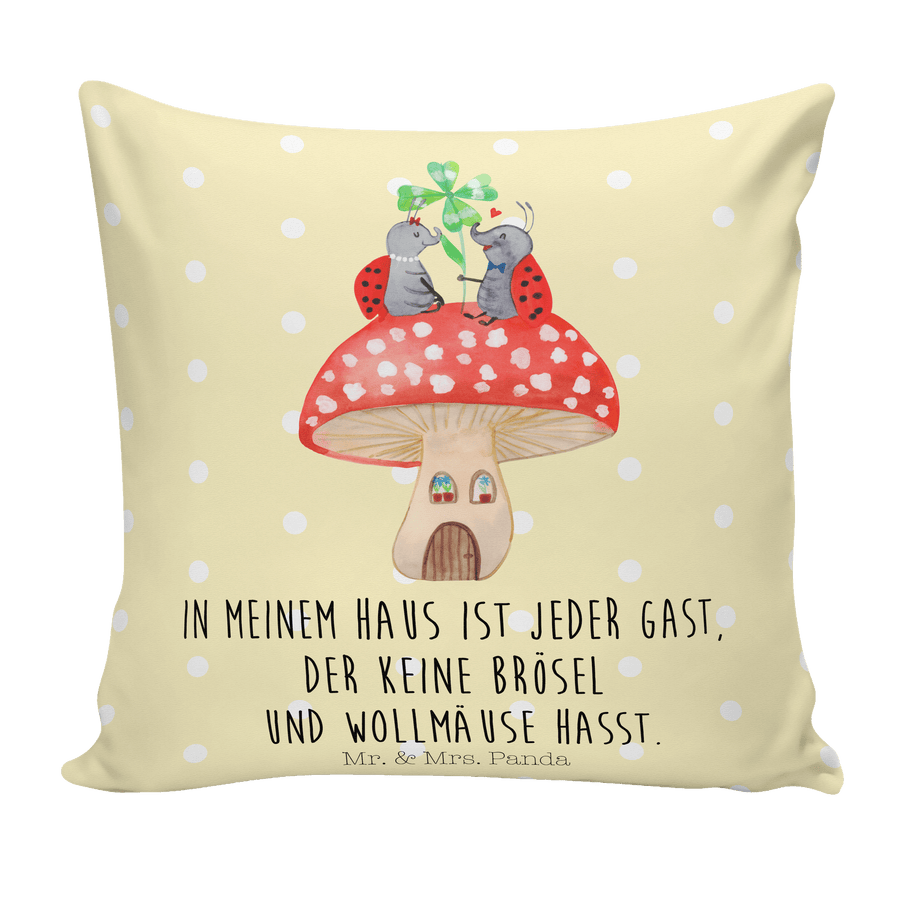40x40 Kissen Marienkäfer Paar Fliegenpilz - mit Spruch - Gelb Pastell