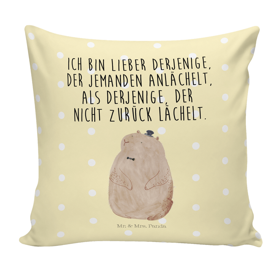 40x40 Kissen Murmeltier - mit Spruch - Gelb Pastell