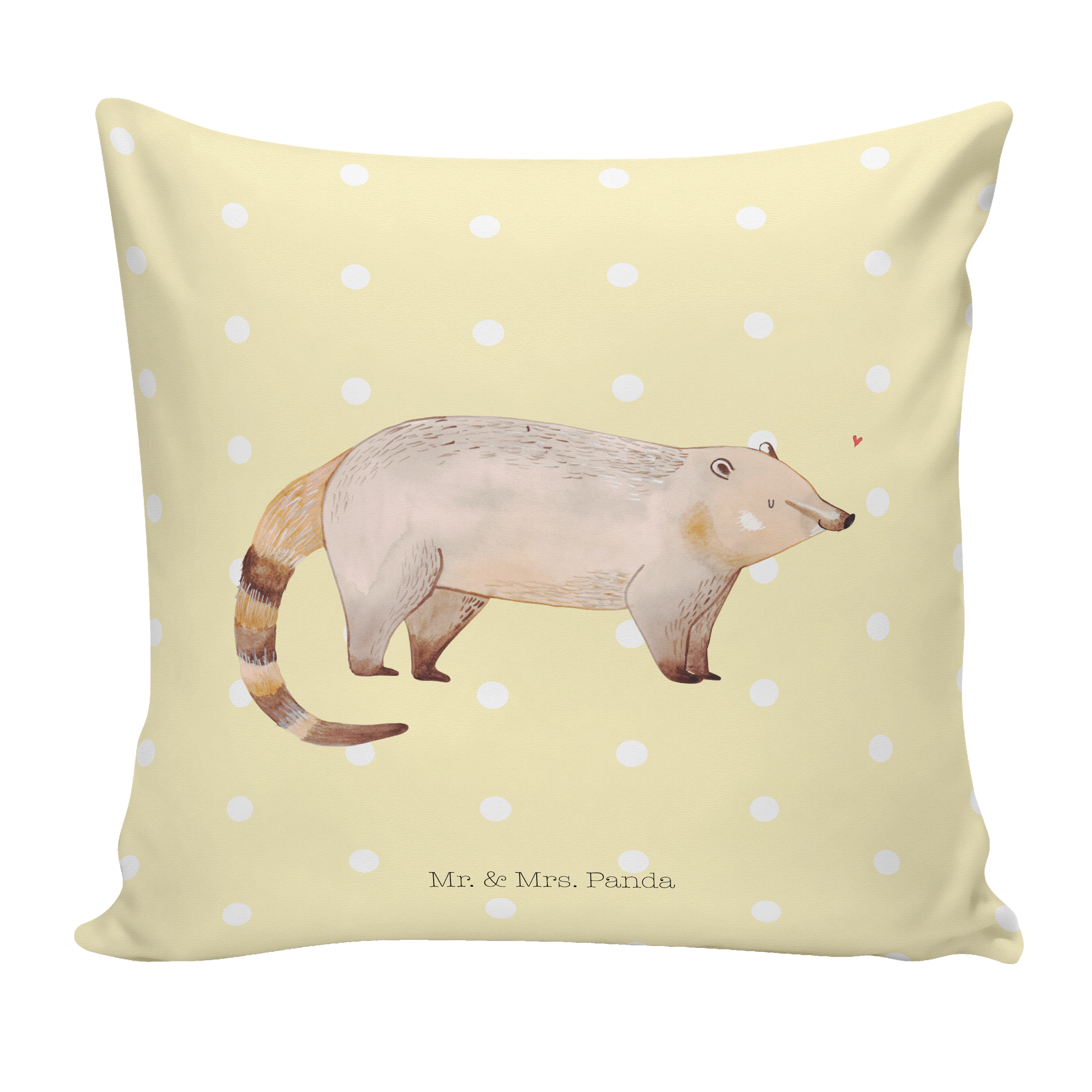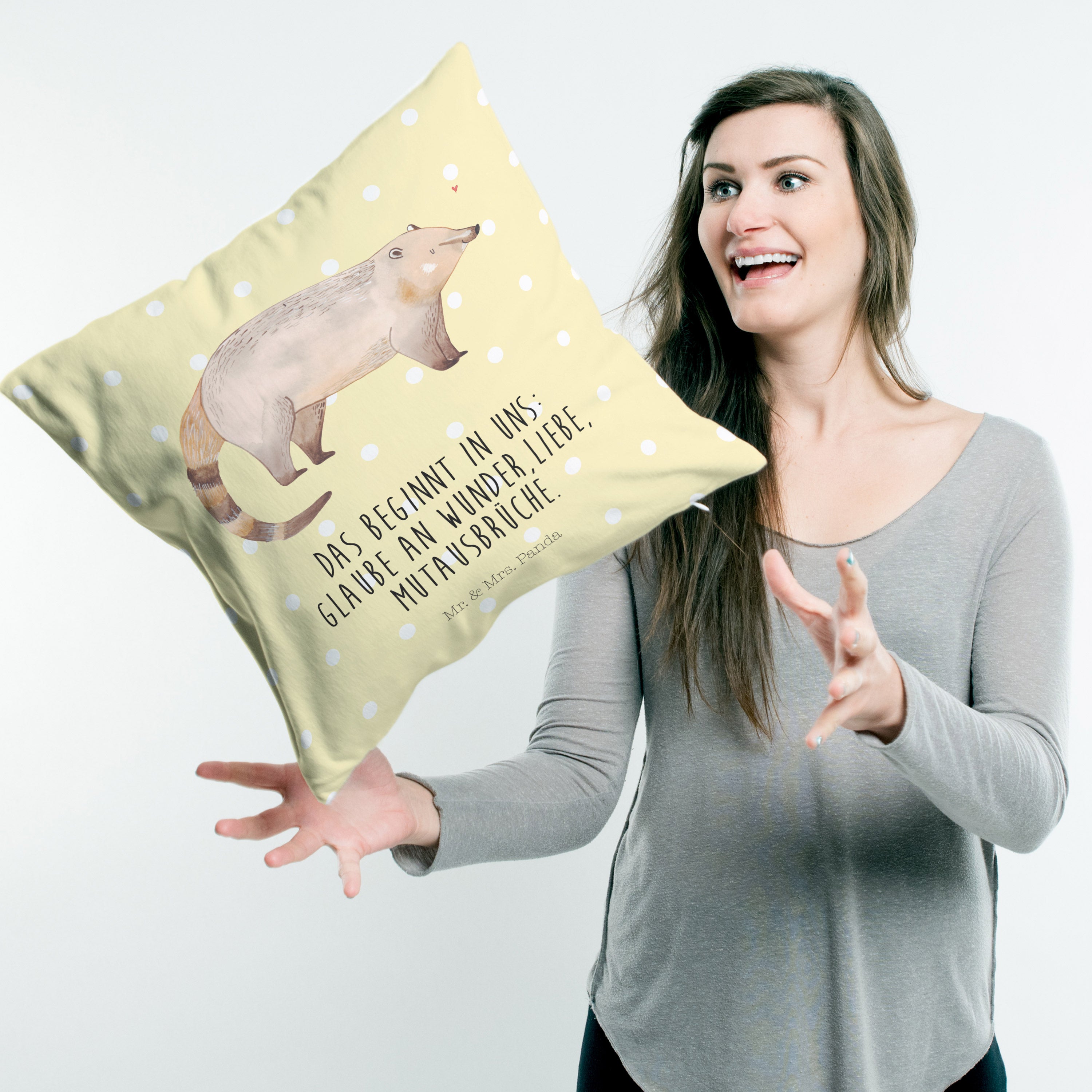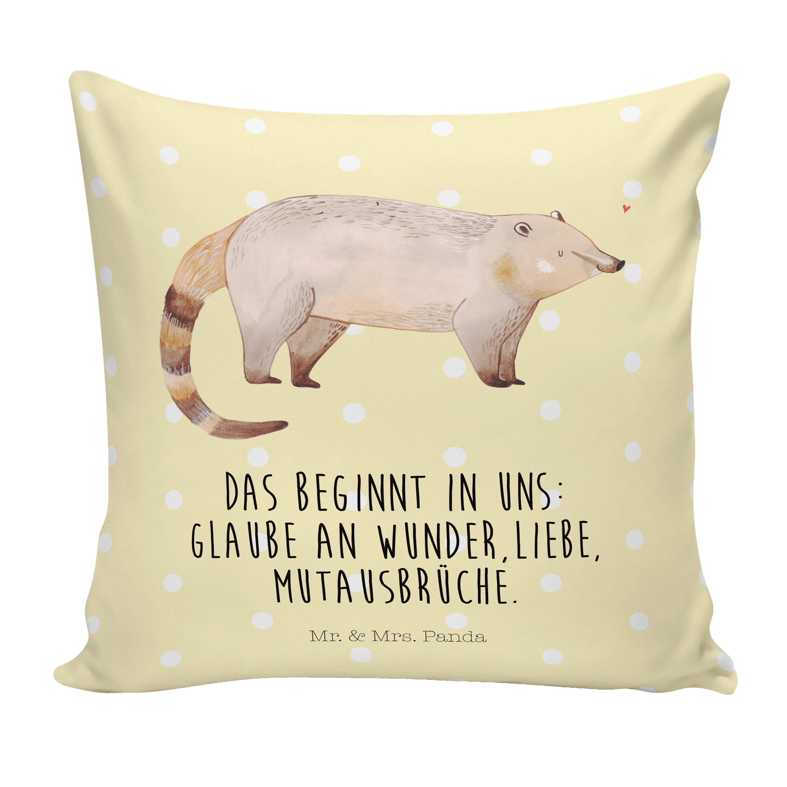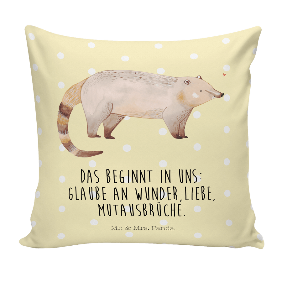 40x40 Kissen Nasenbaer - mit Spruch - Gelb Pastell