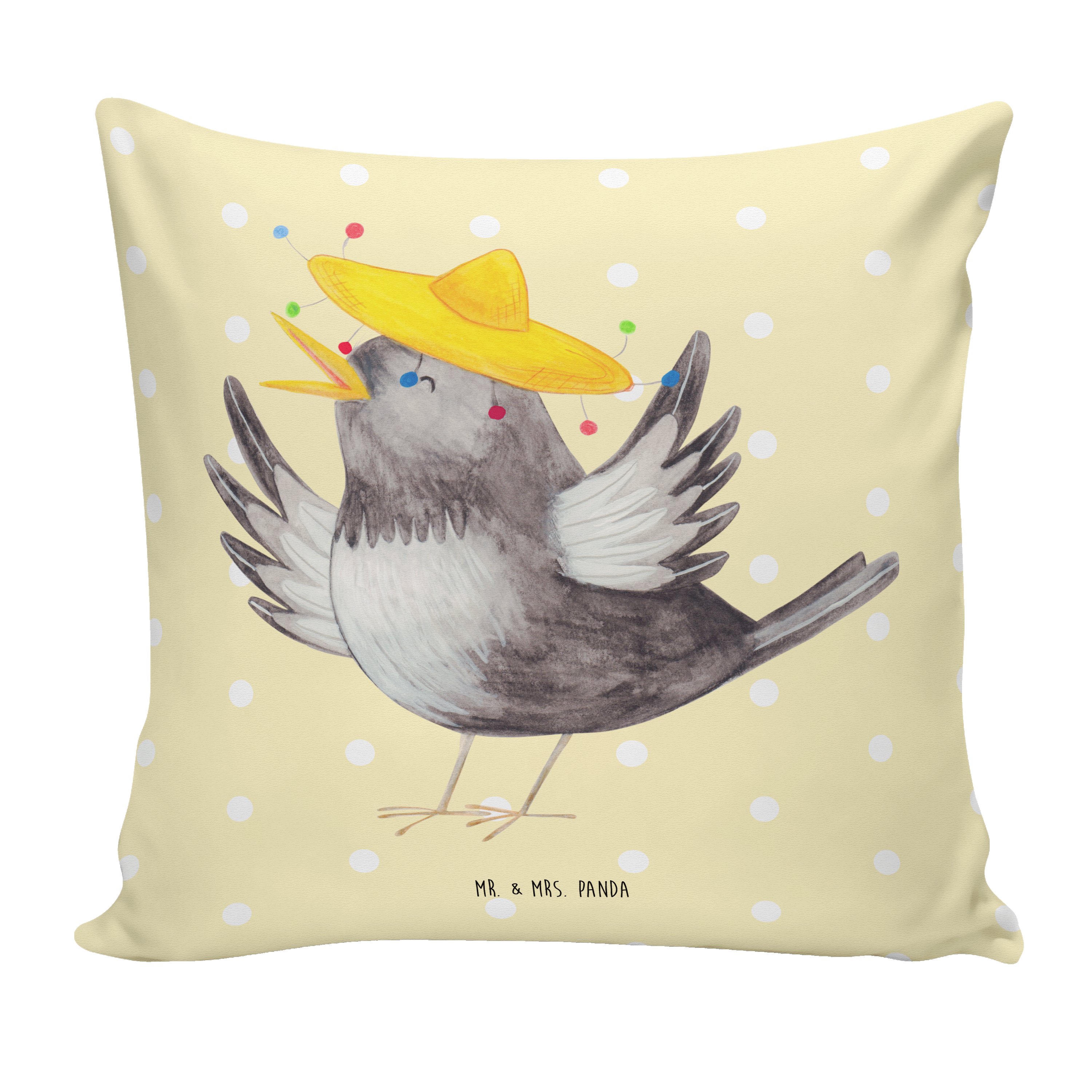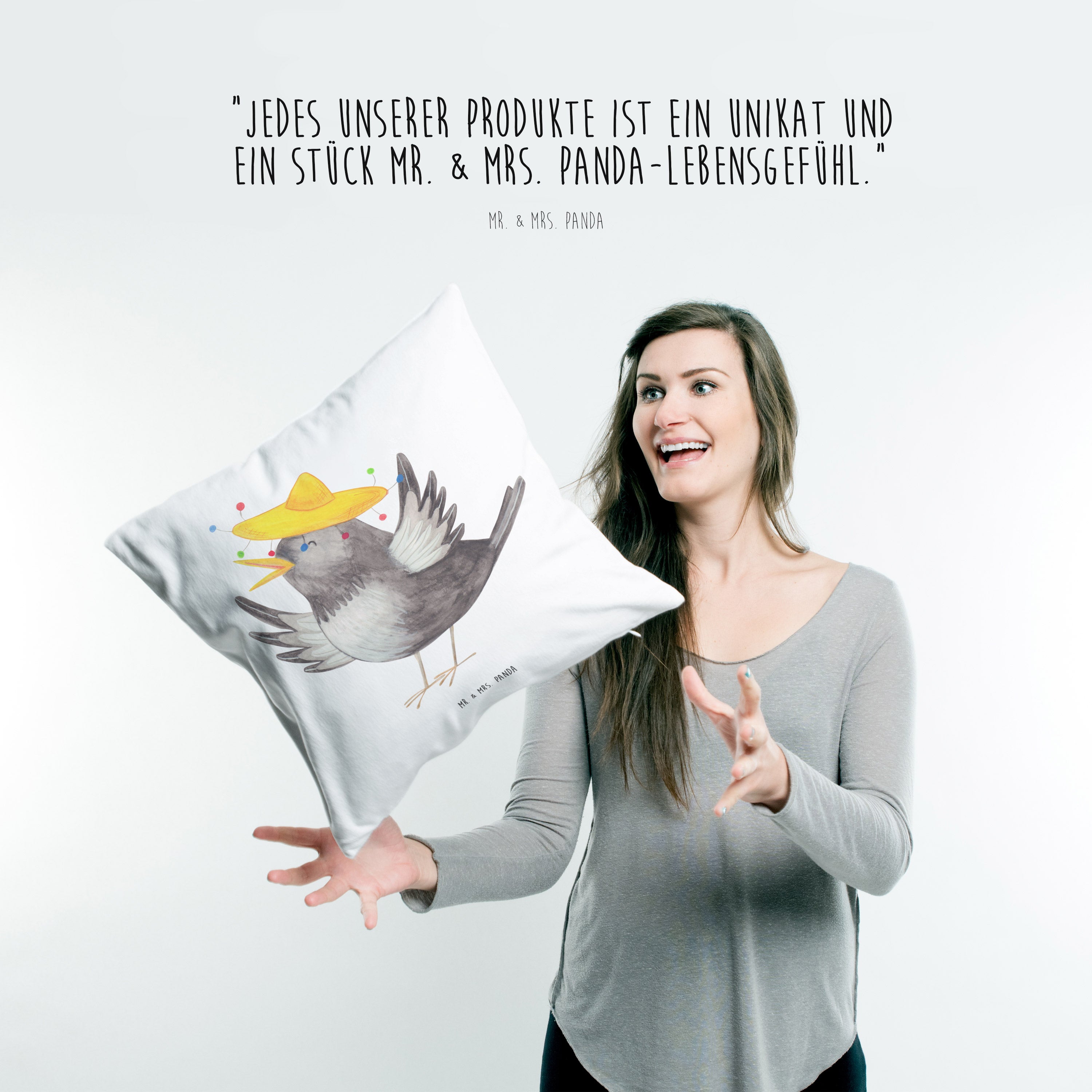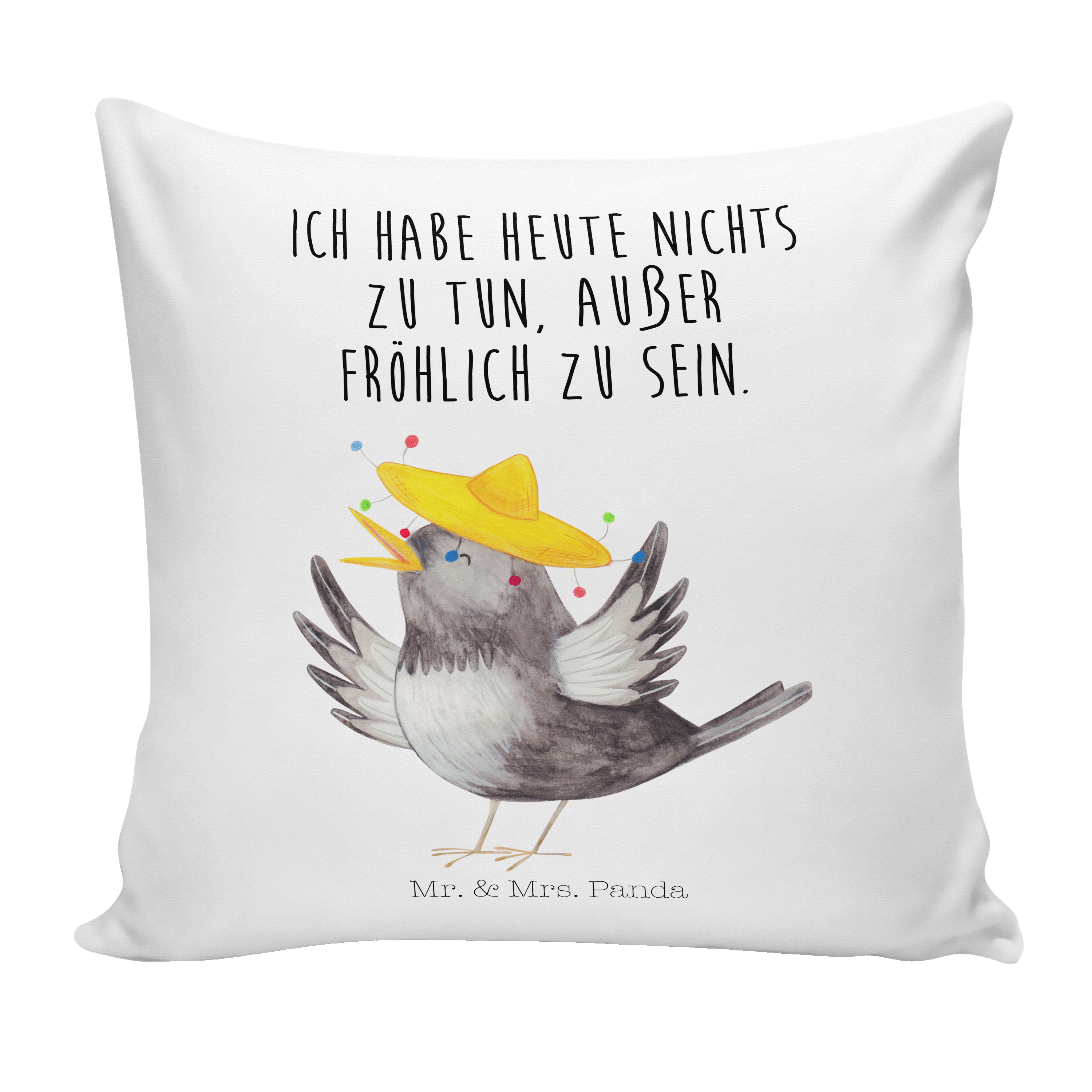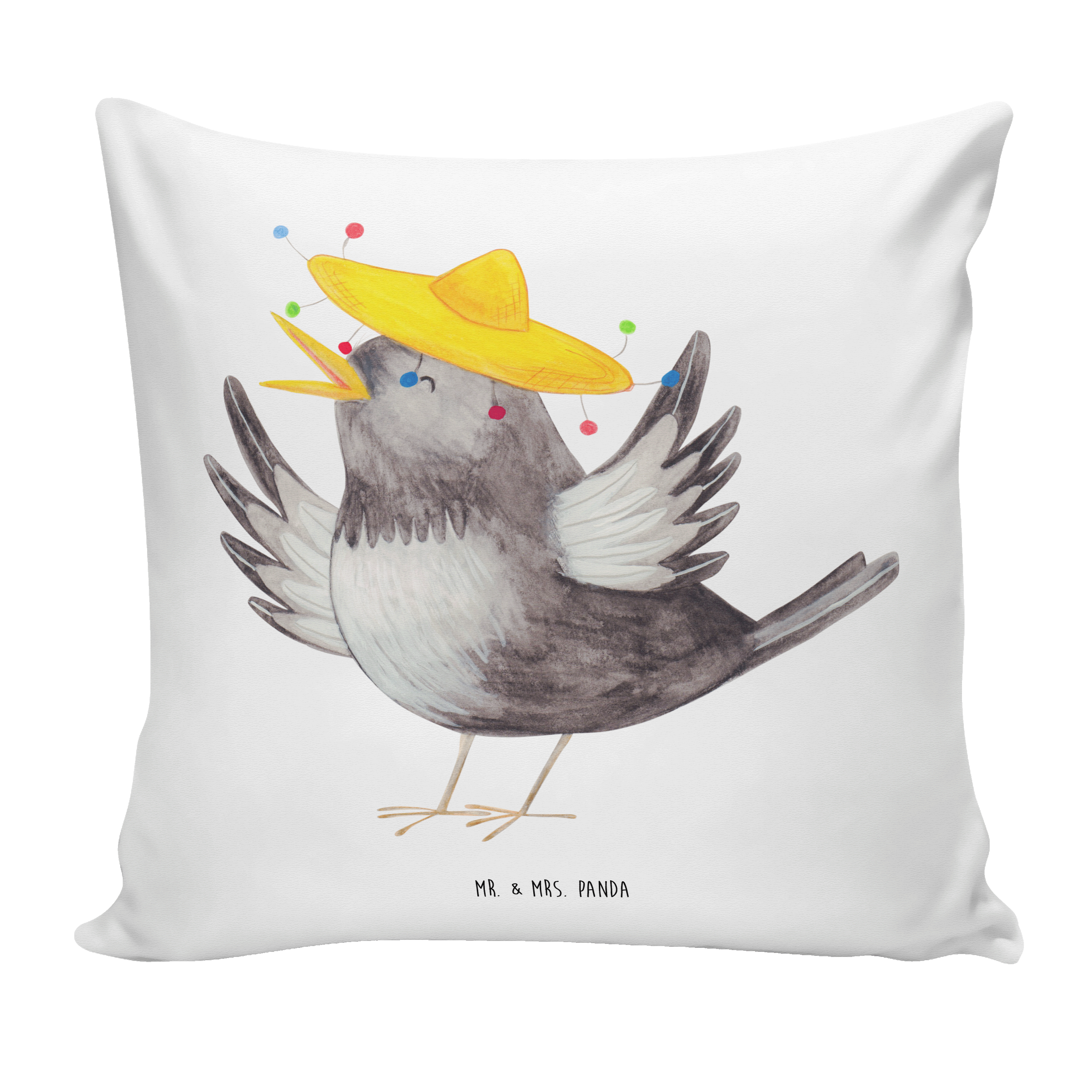 40x40 Kissen Rabe mit Sombrero - mit Spruch - Weiß
