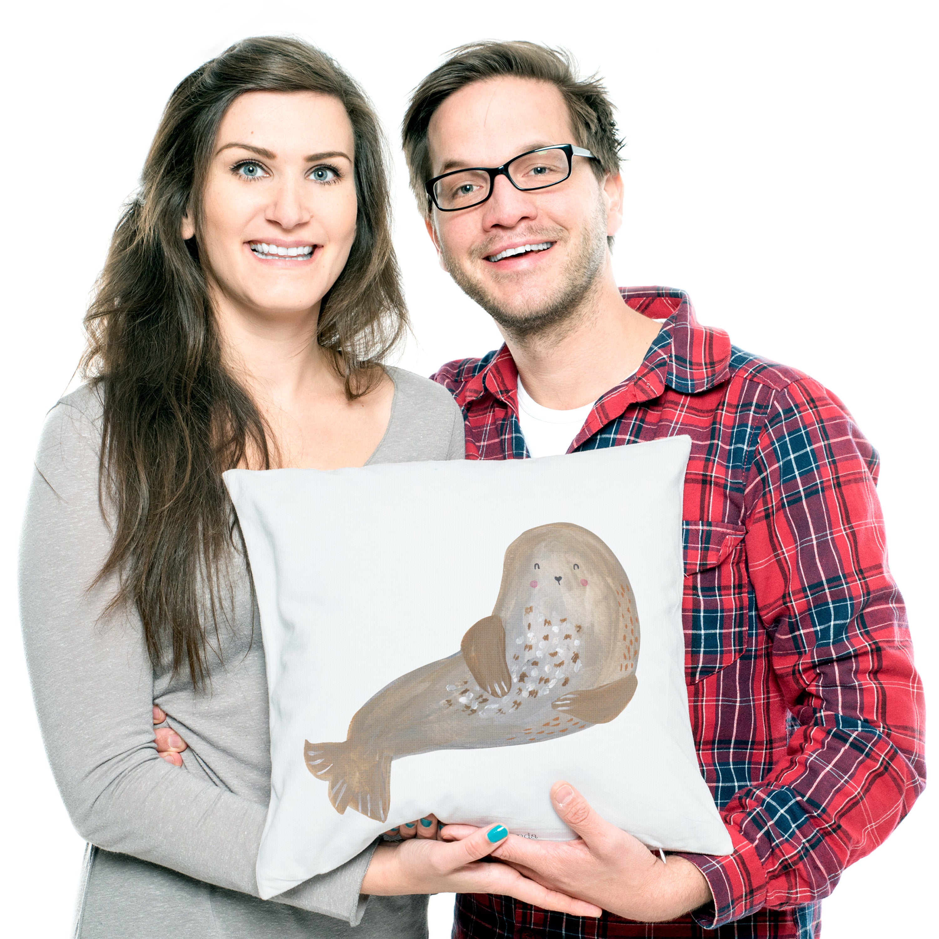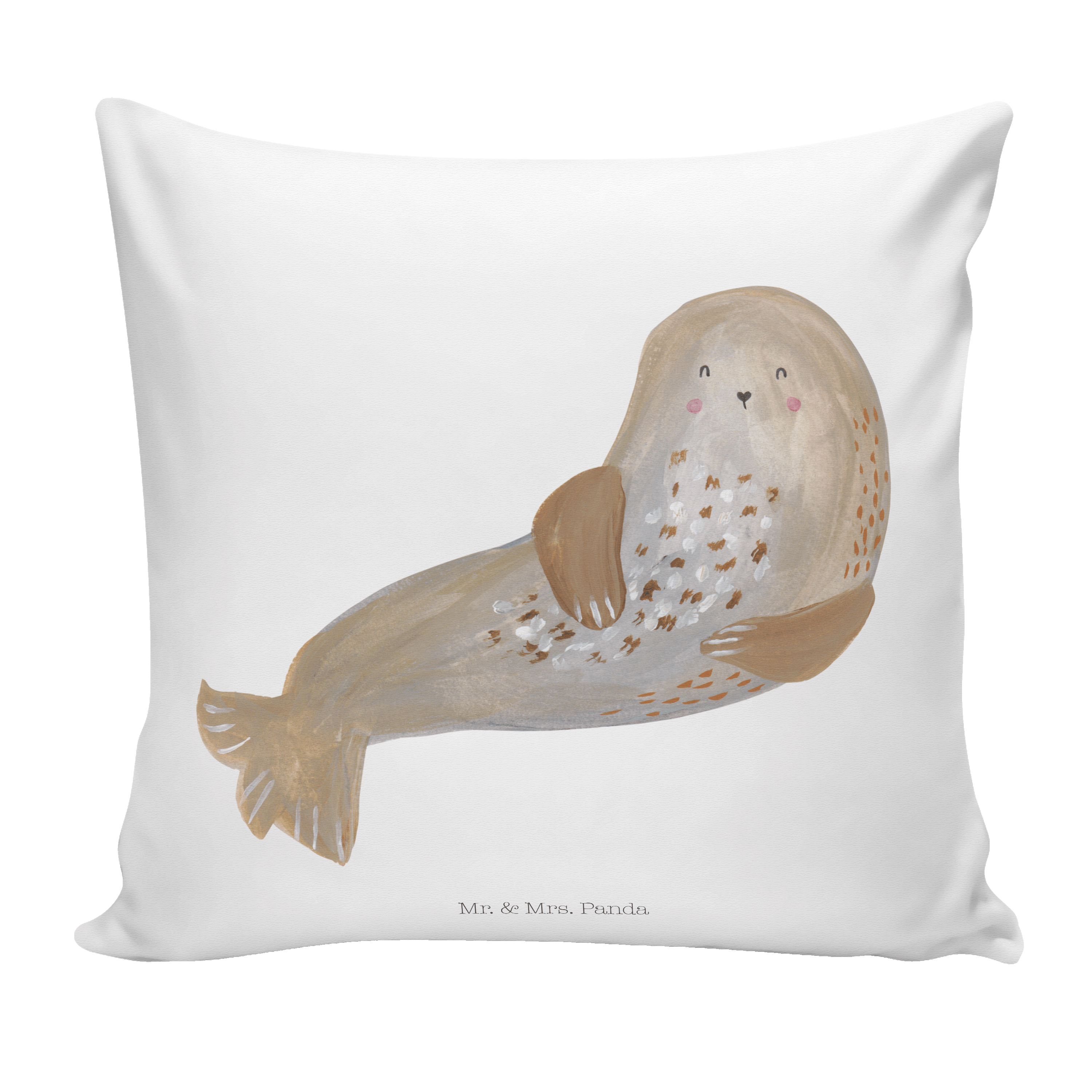 40x40 Kissen Robbe lachend Kissenhülle, Kopfkissen, Sofakissen, Dekokissen, Motivkissen, Tiermotive, Gute Laune, lustige Sprüche, Tiere, Robbe, Robben, Seehund, Strand, Meerestier, Ostsee, Nordsee