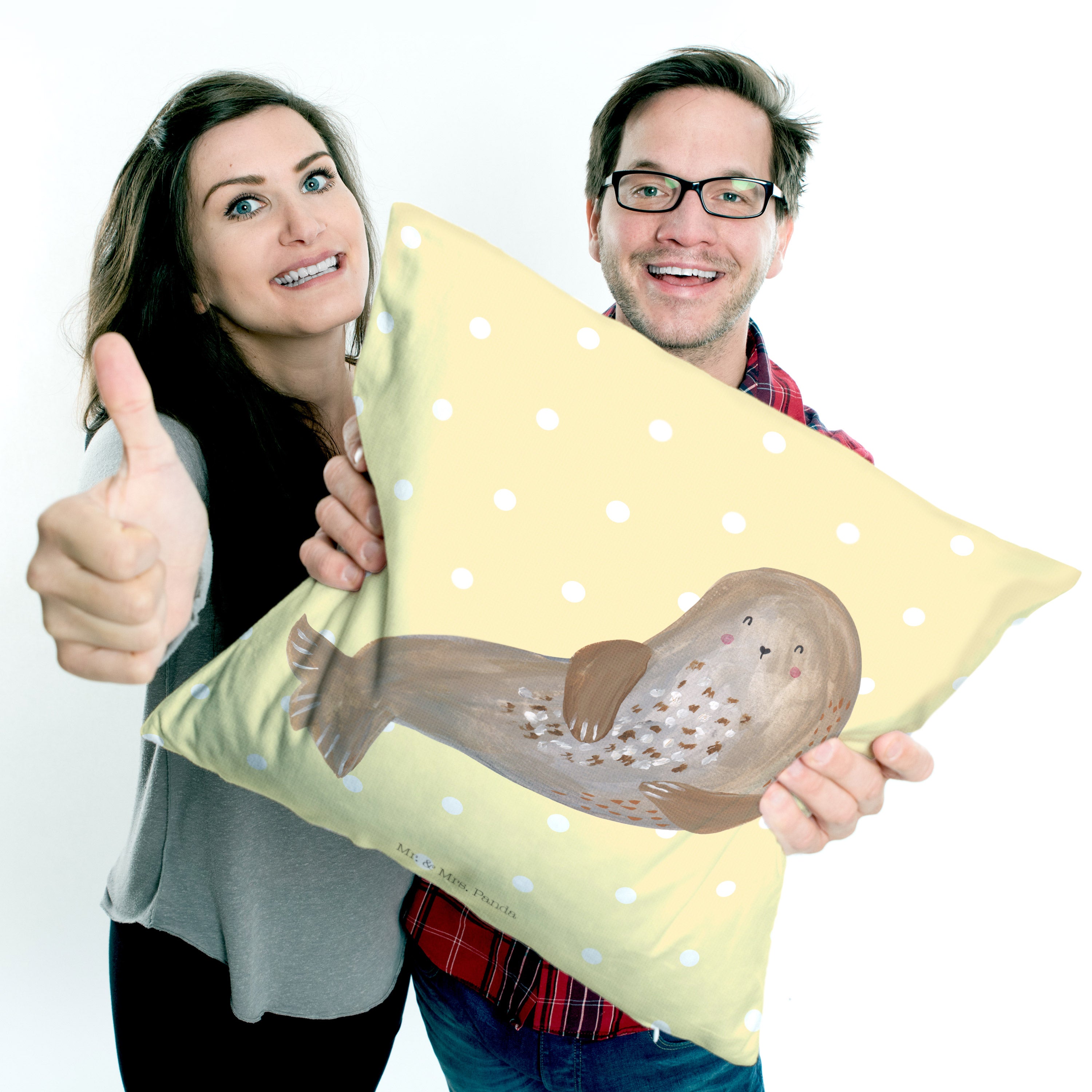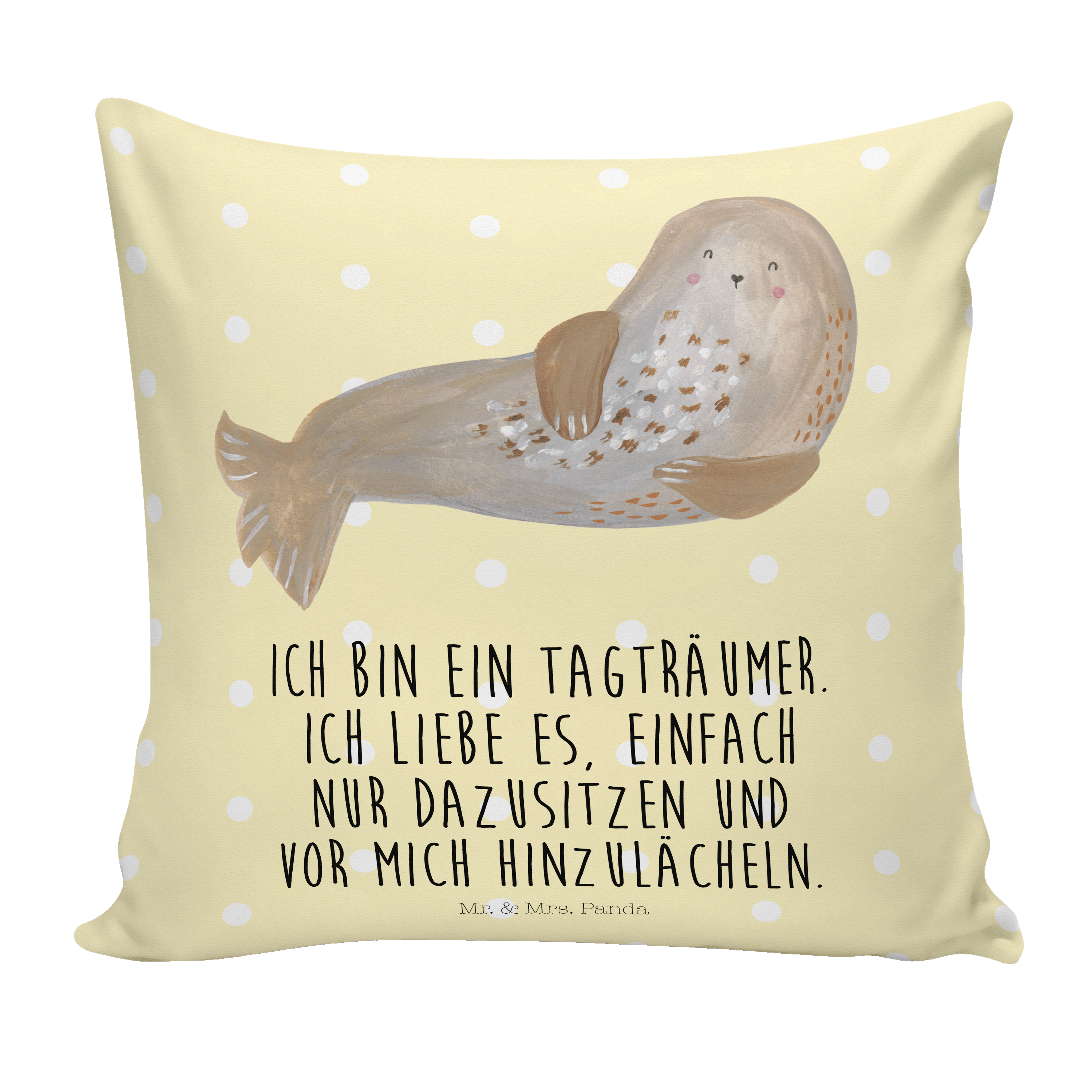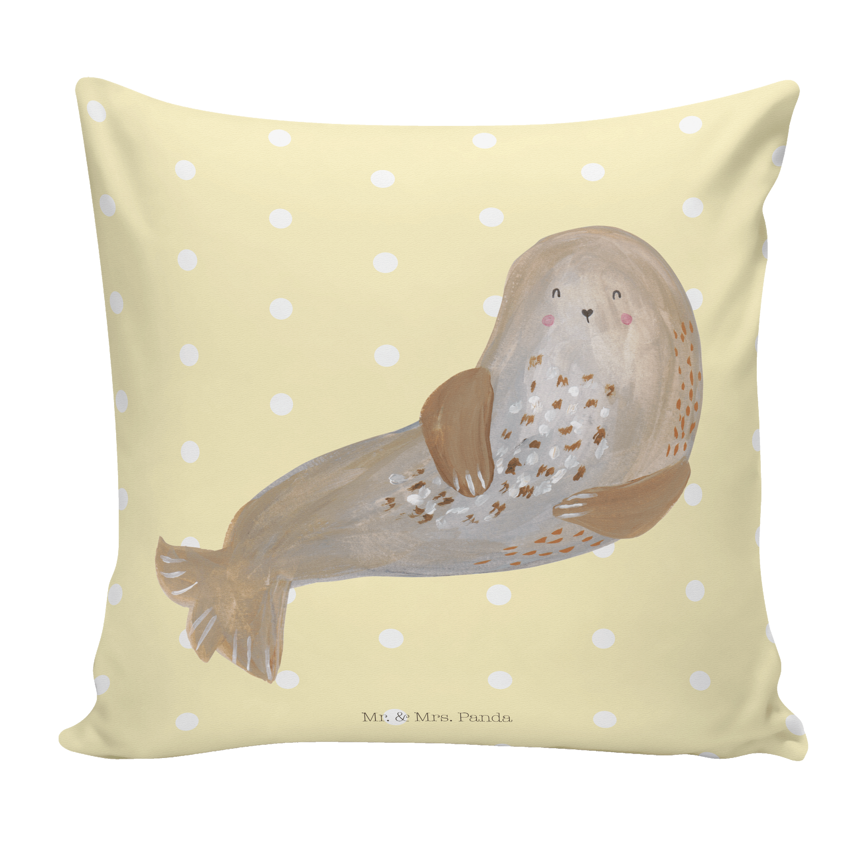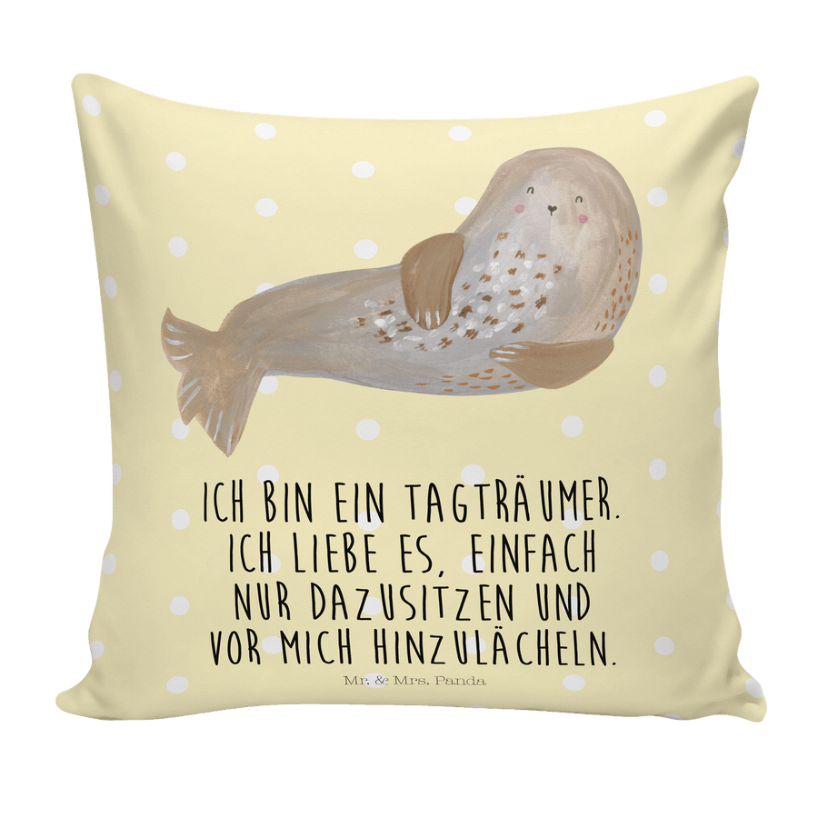 40x40 Kissen Robbe lachend - mit Spruch - Gelb Pastell