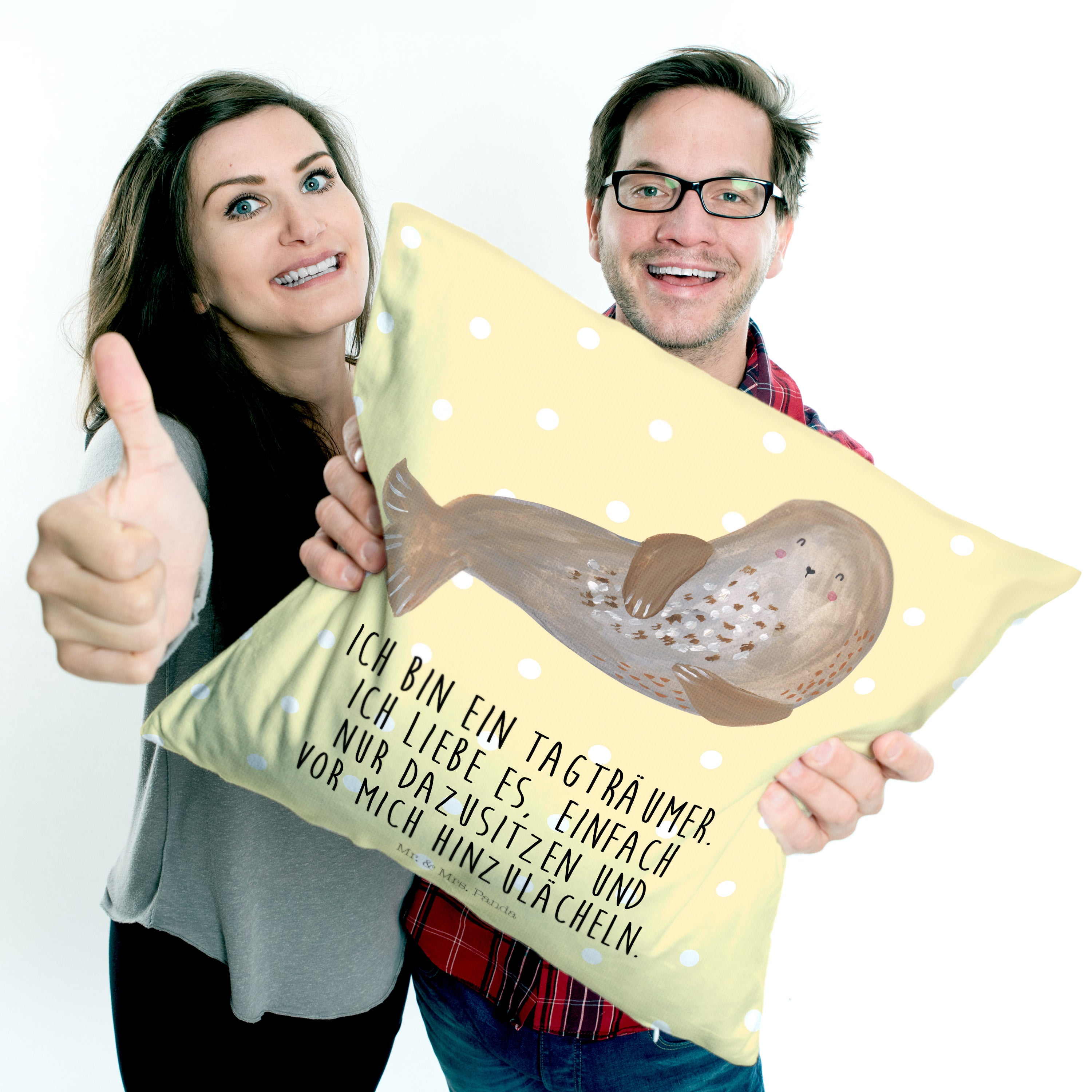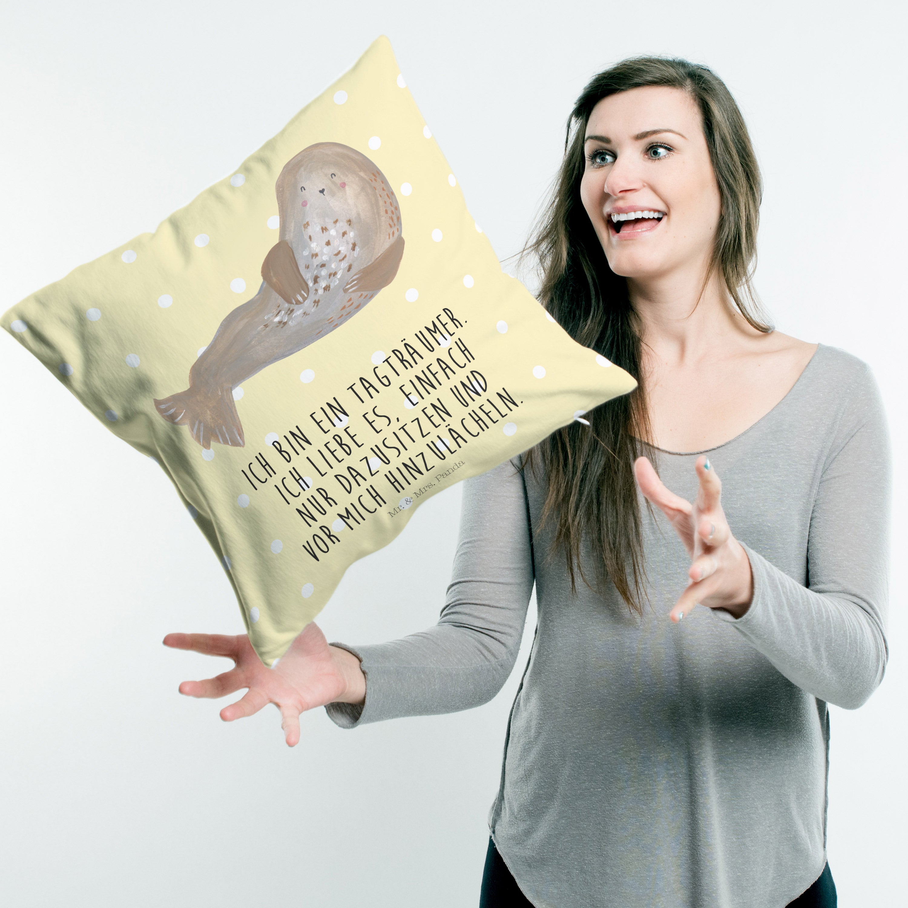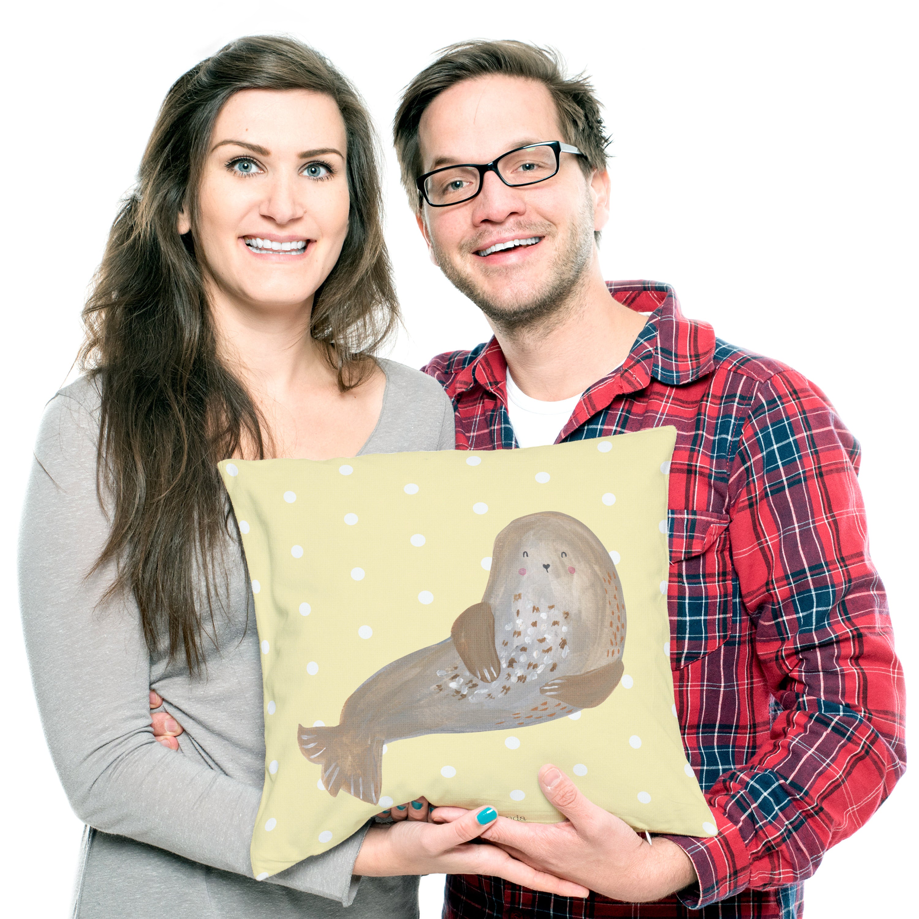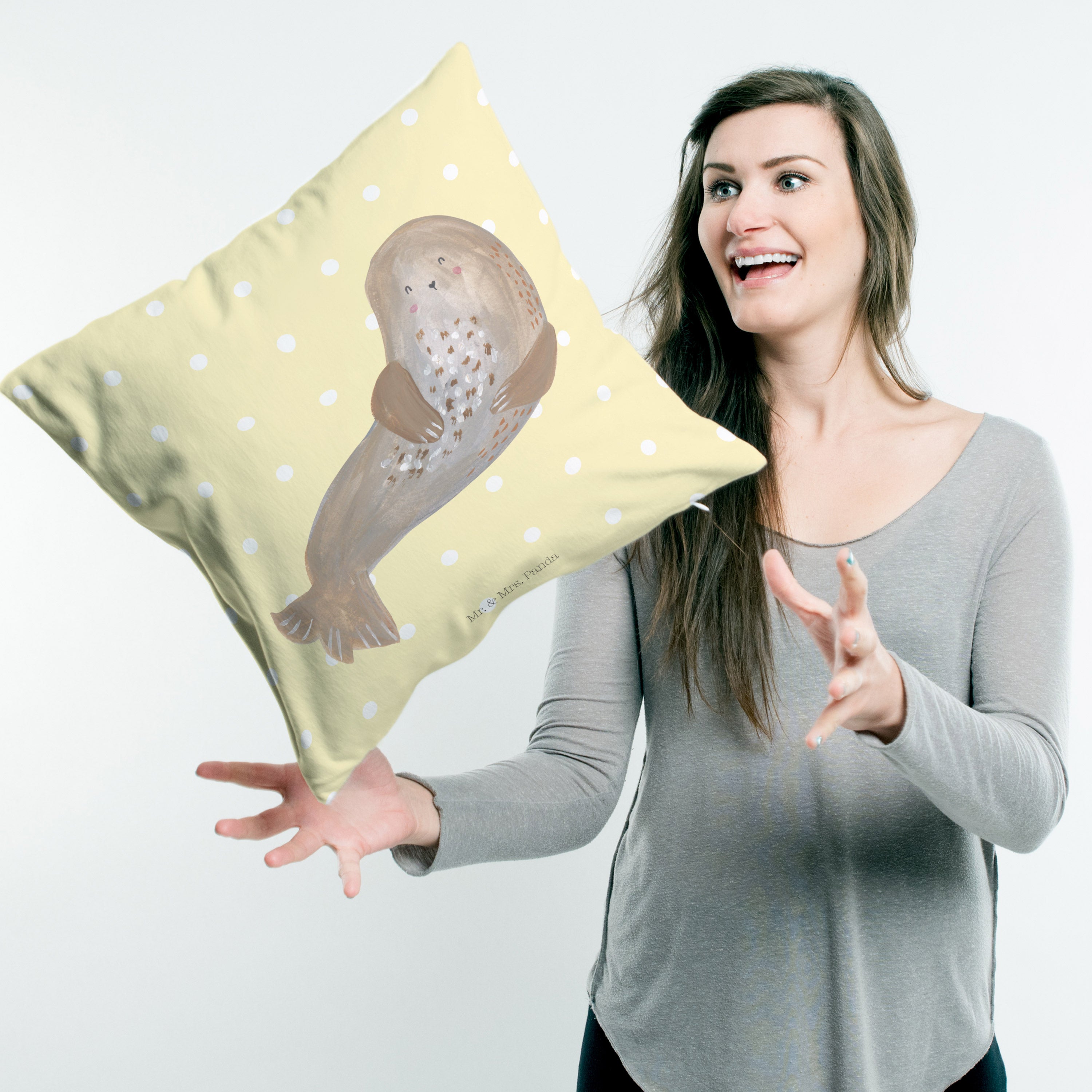 40x40 Kissen Robbe lachend - mit Spruch - Gelb Pastell