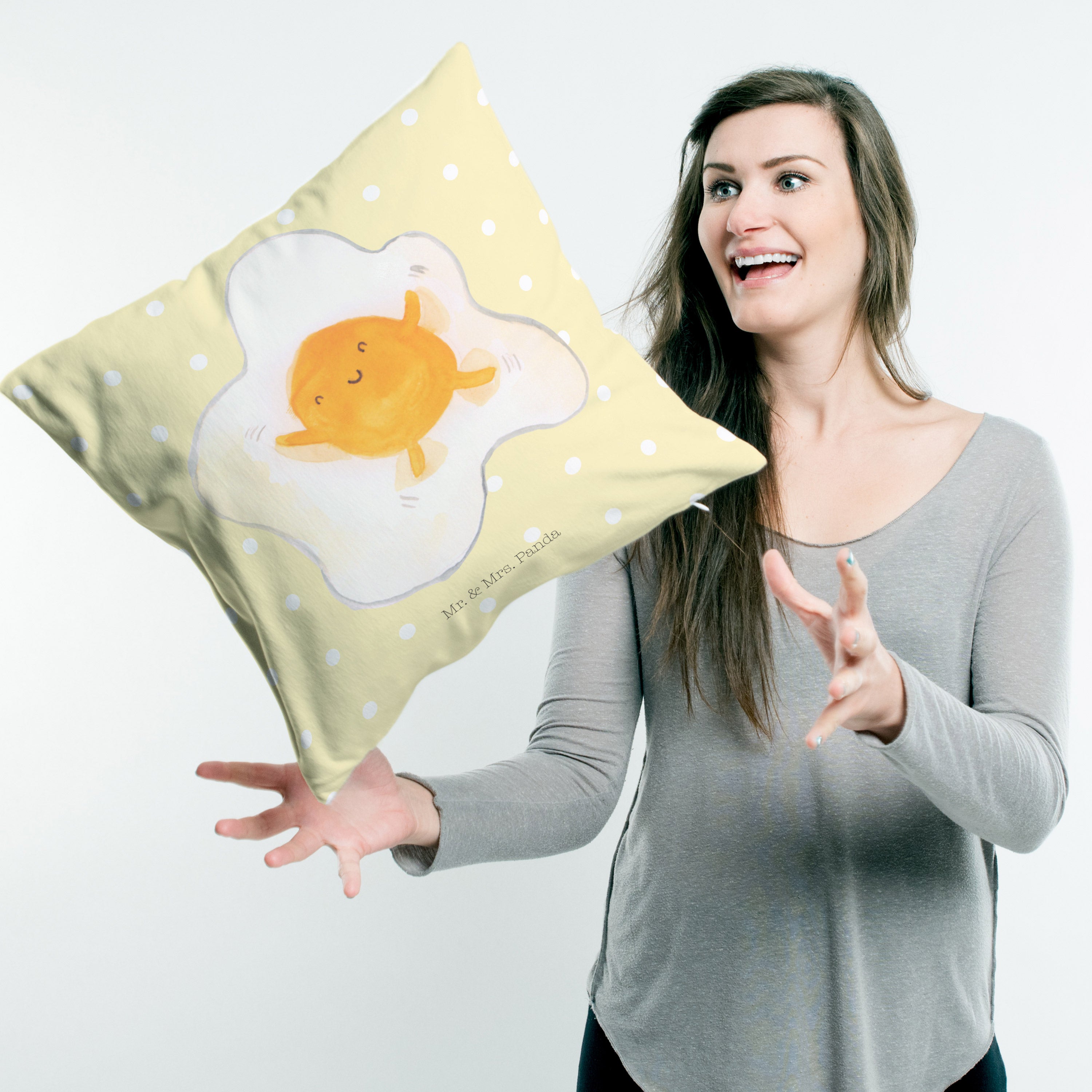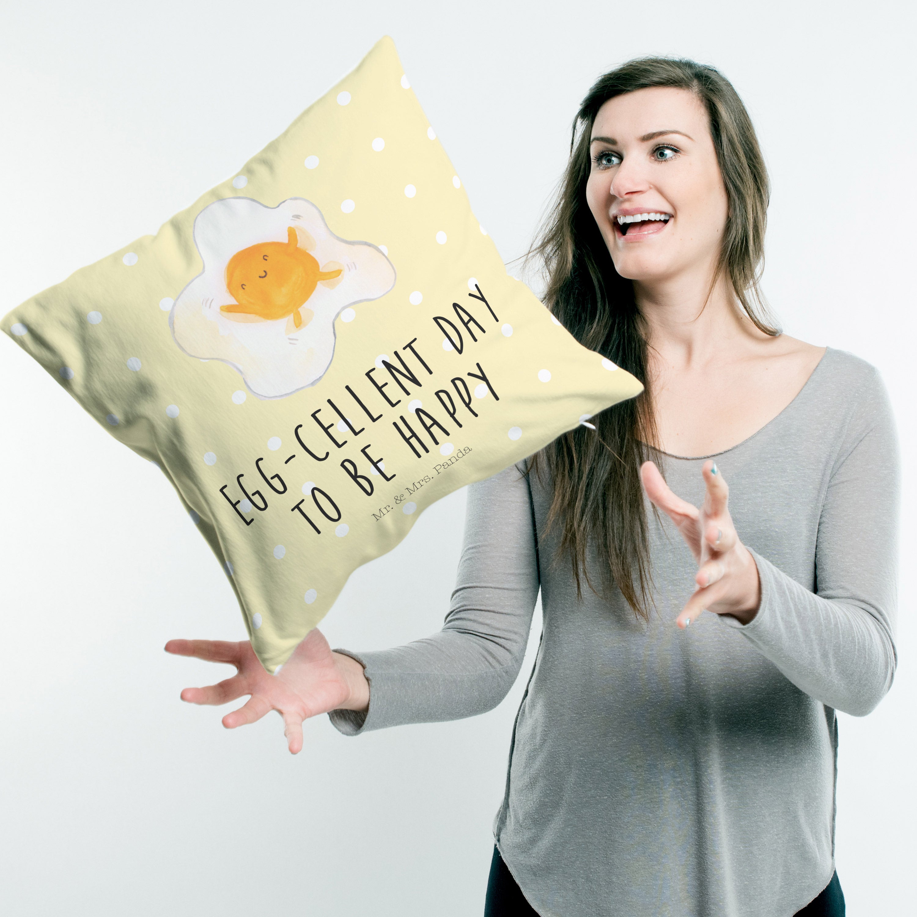 40x40 Kissen Spiegelei - mit Spruch - Gelb Pastell