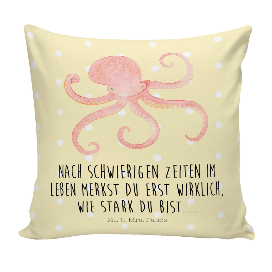 40x40 Kissen Tintenfisch - mit Spruch - Gelb Pastell