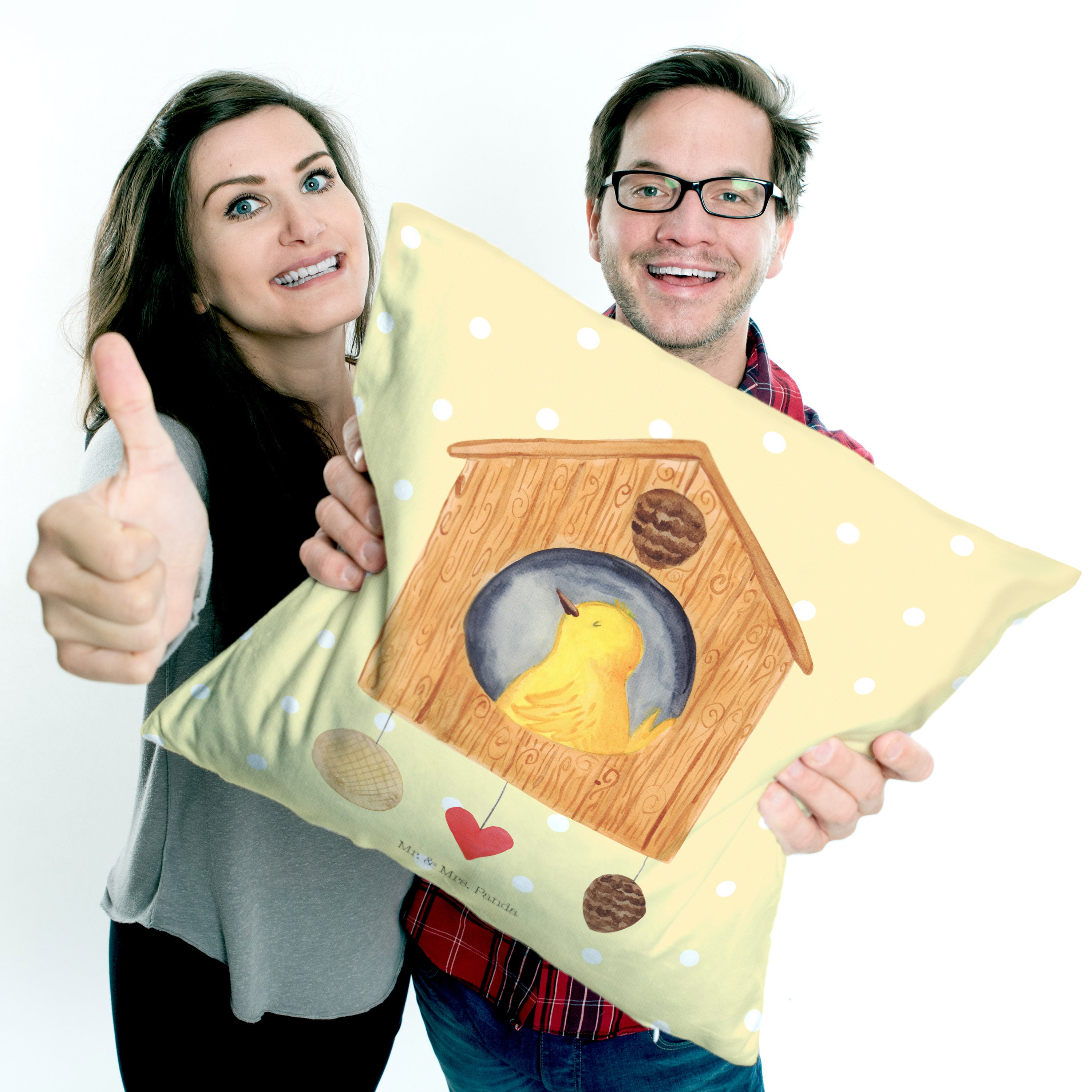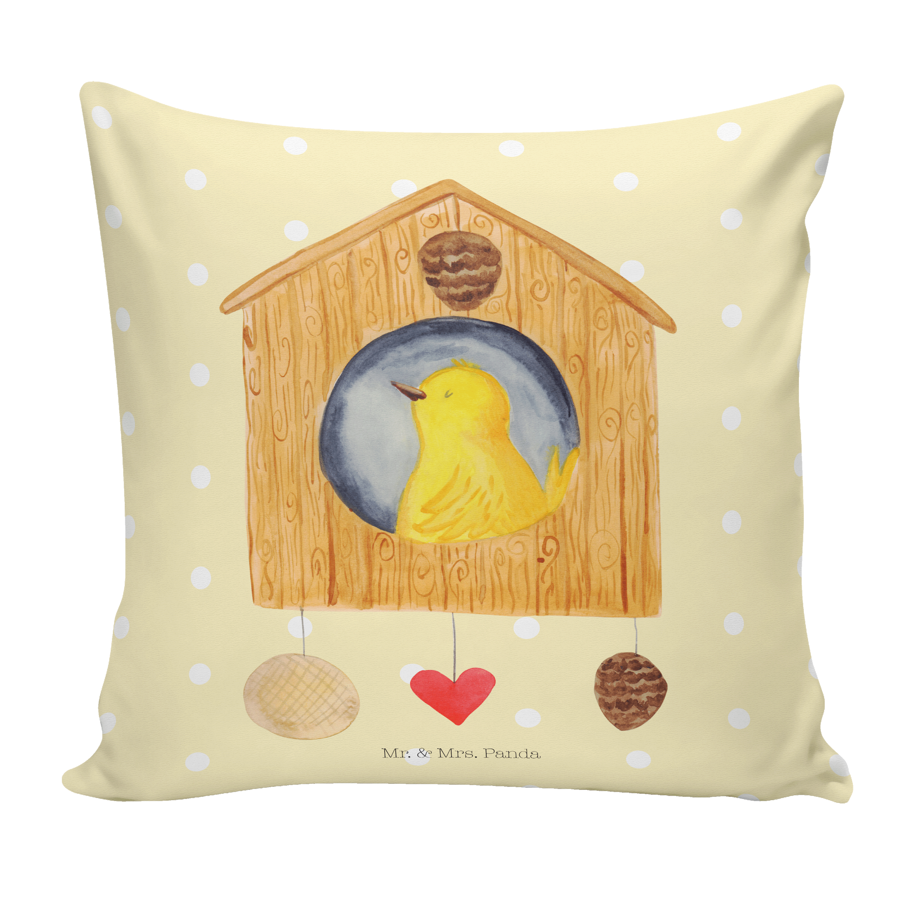 40x40 Kissen Vogelhaus sweet Home - mit Spruch - Gelb Pastell