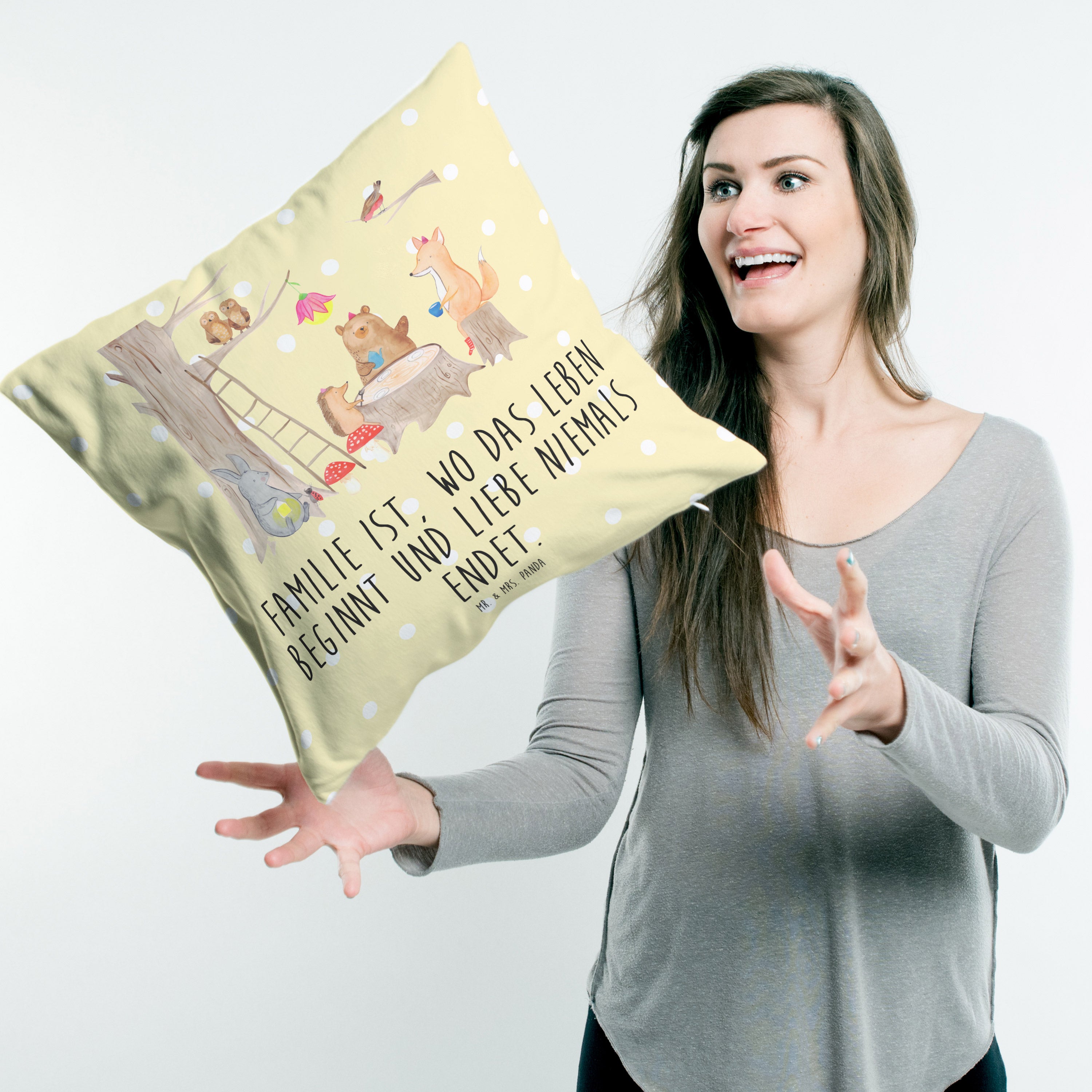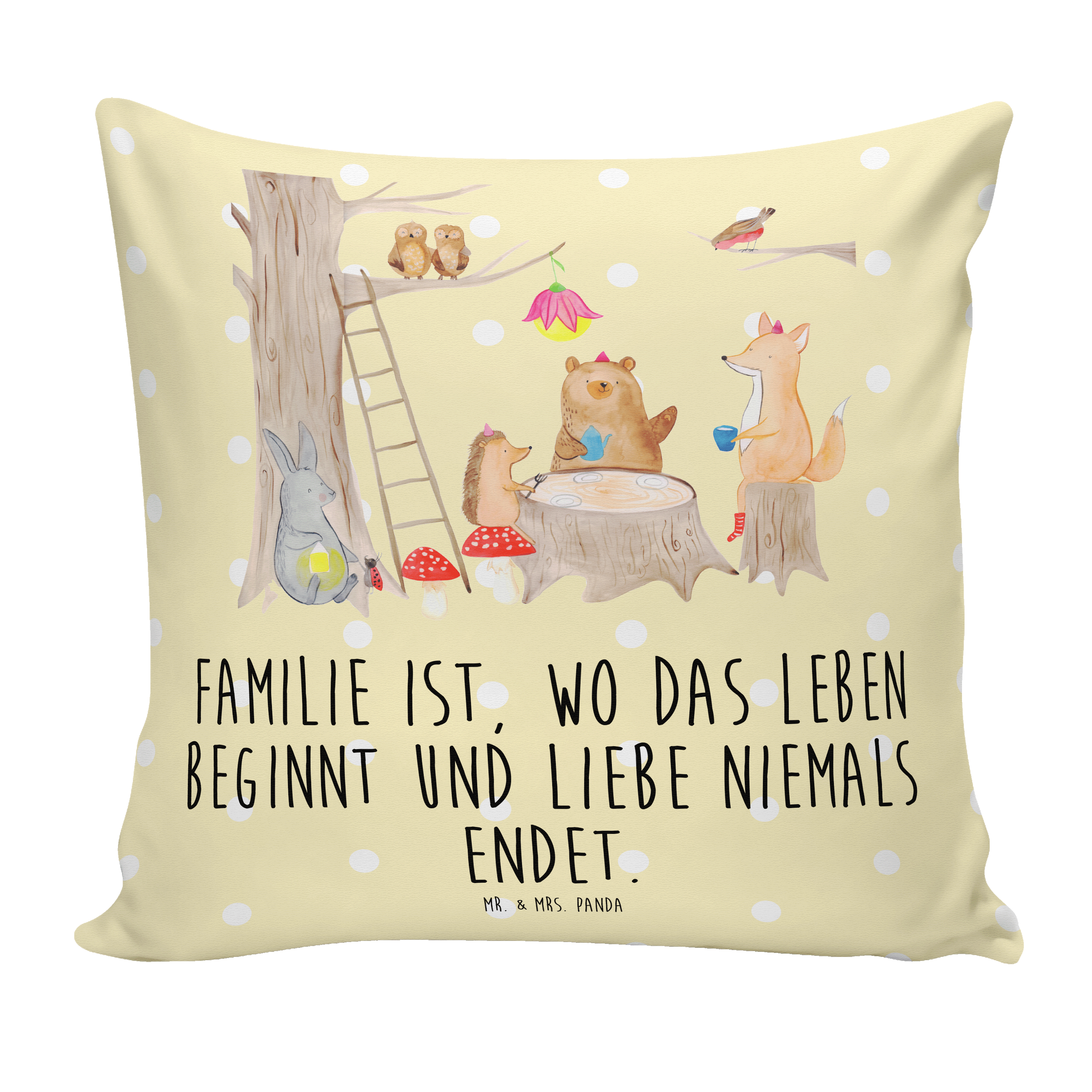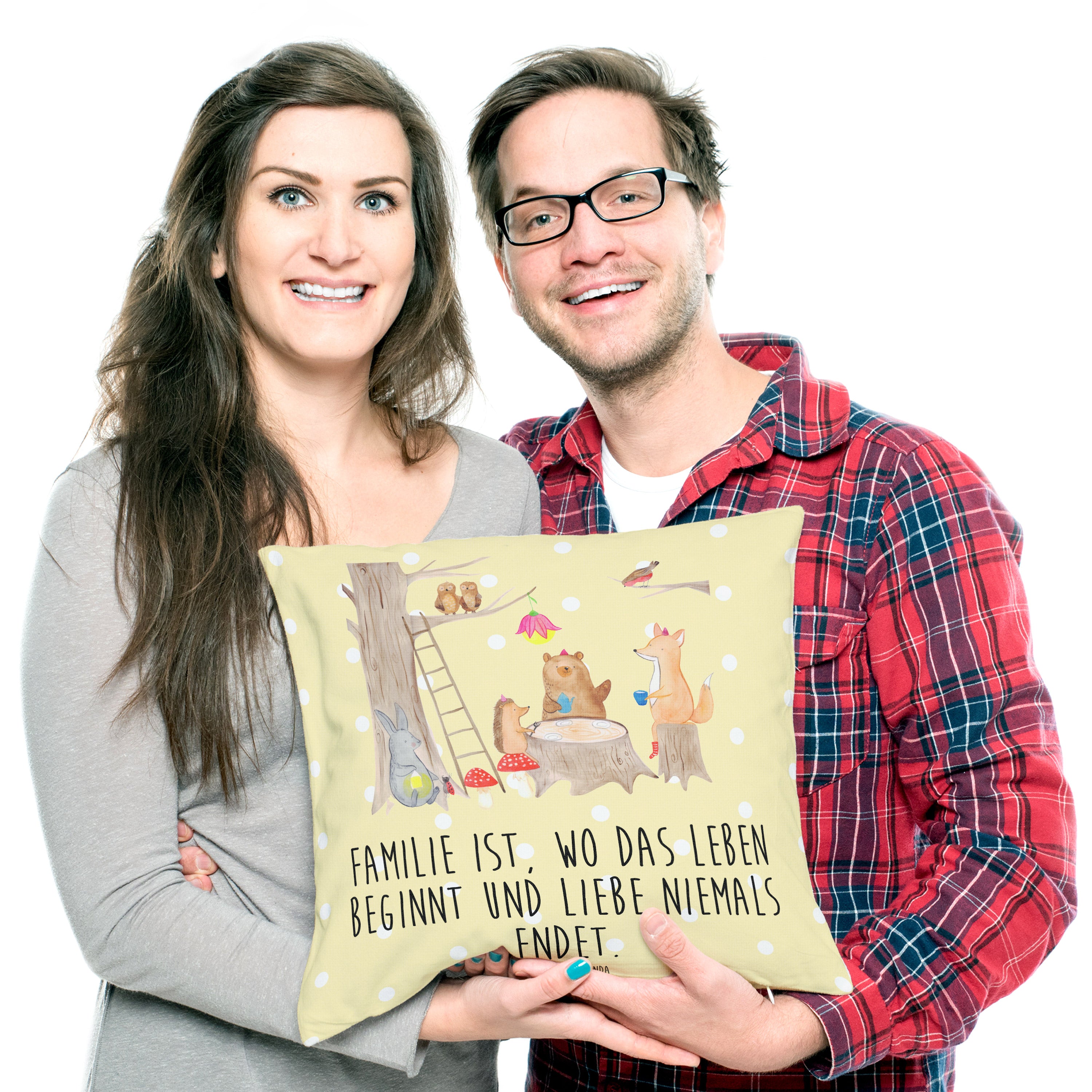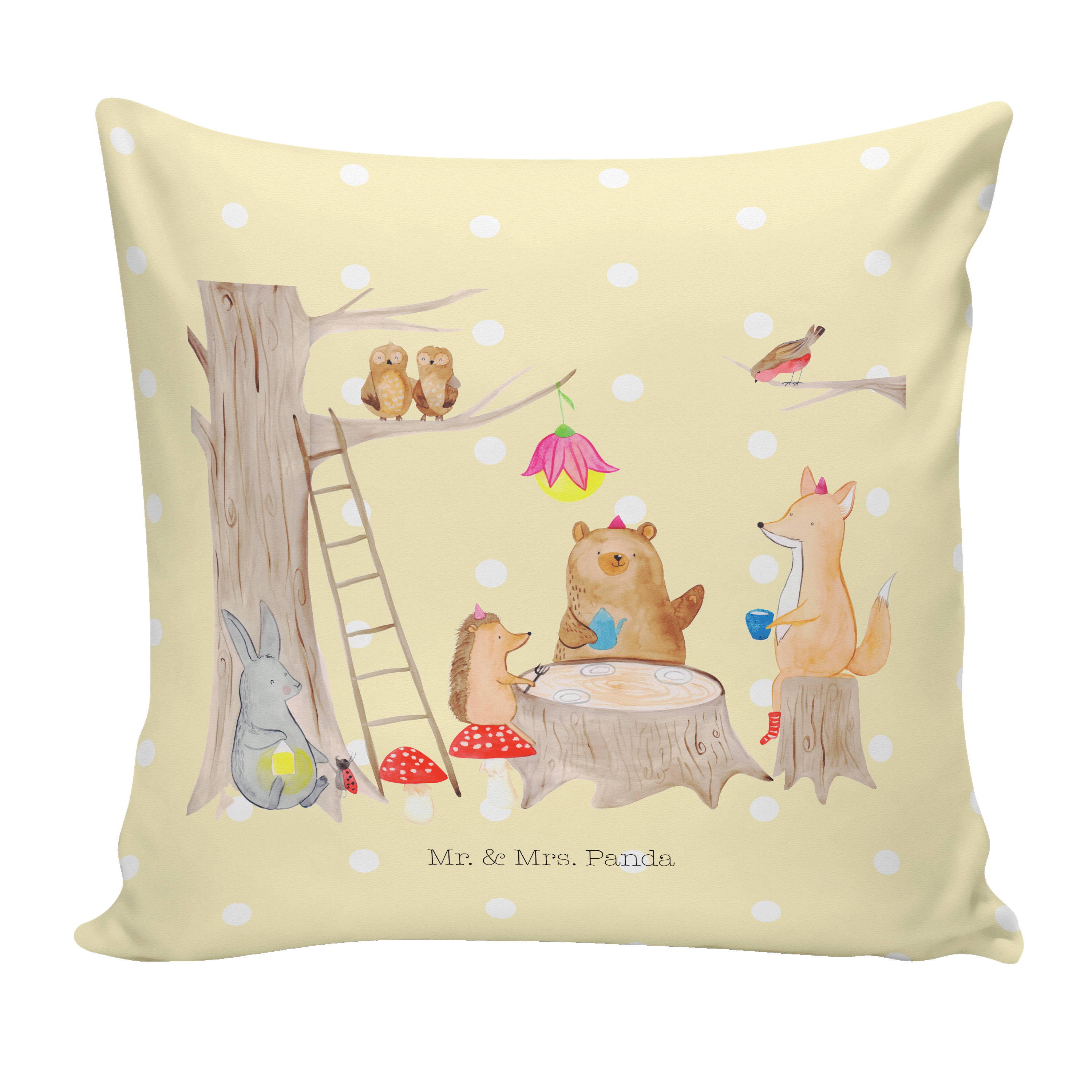 40x40 Kissen Waldtiere Picknick - mit Spruch - Gelb Pastell
