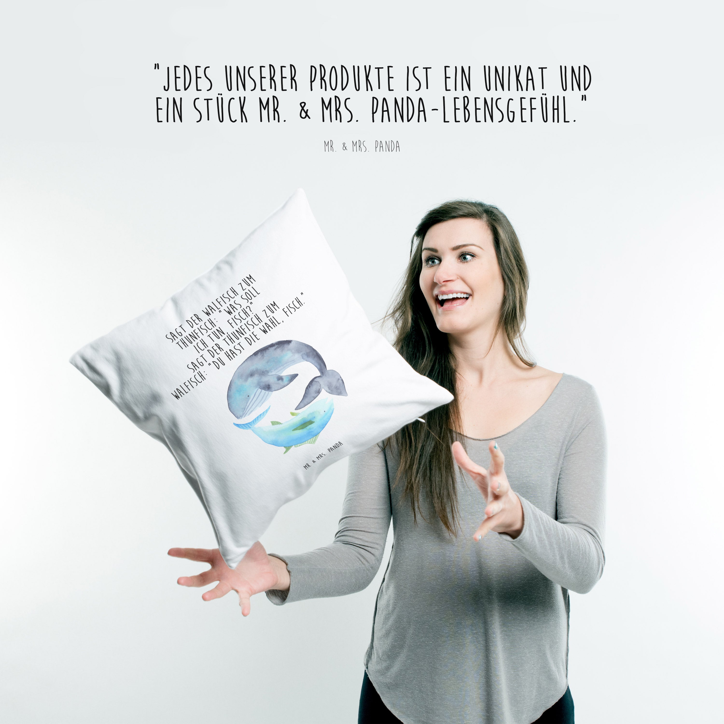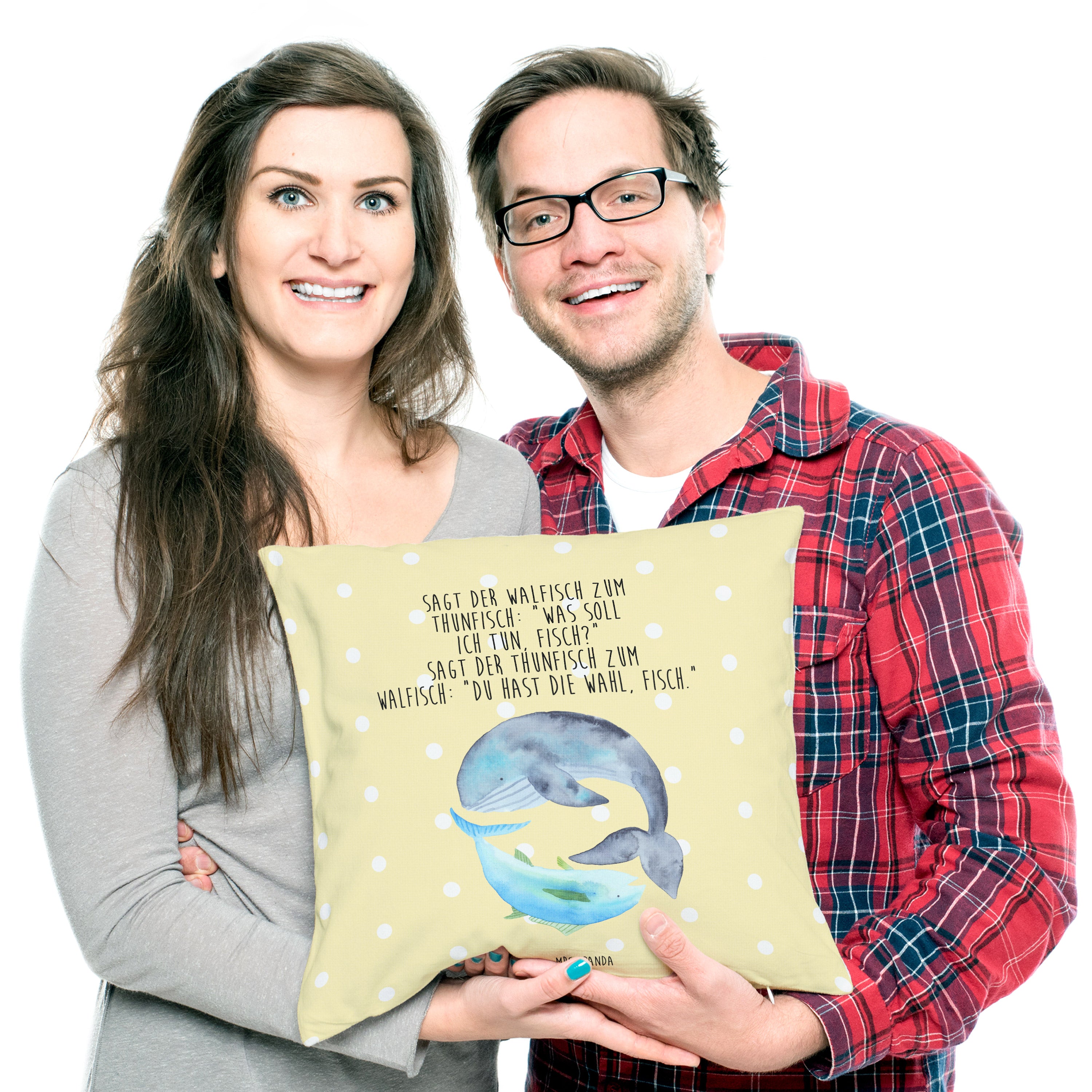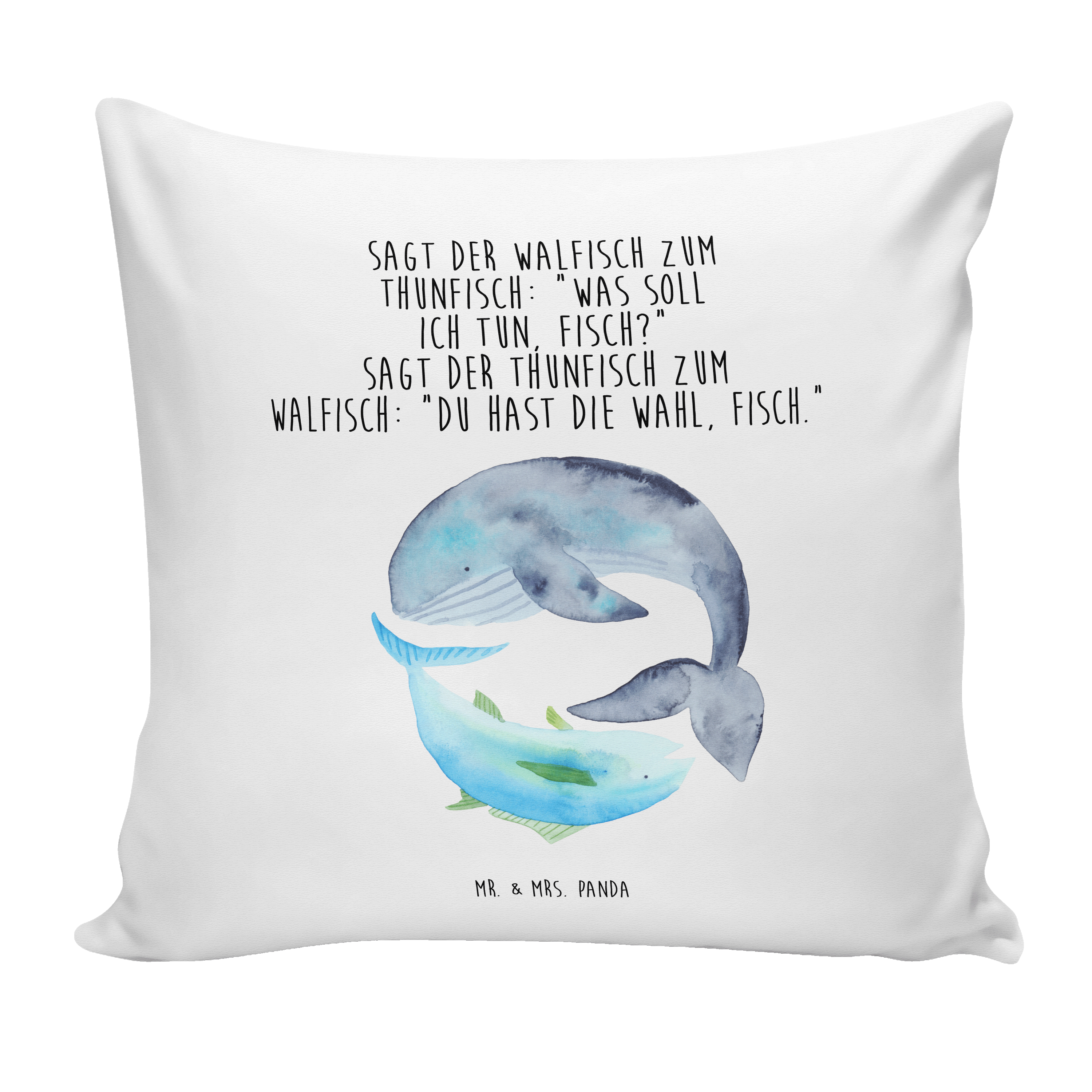 40x40 Kissen Walfisch & Thunfisch - mit Spruch - Weiß