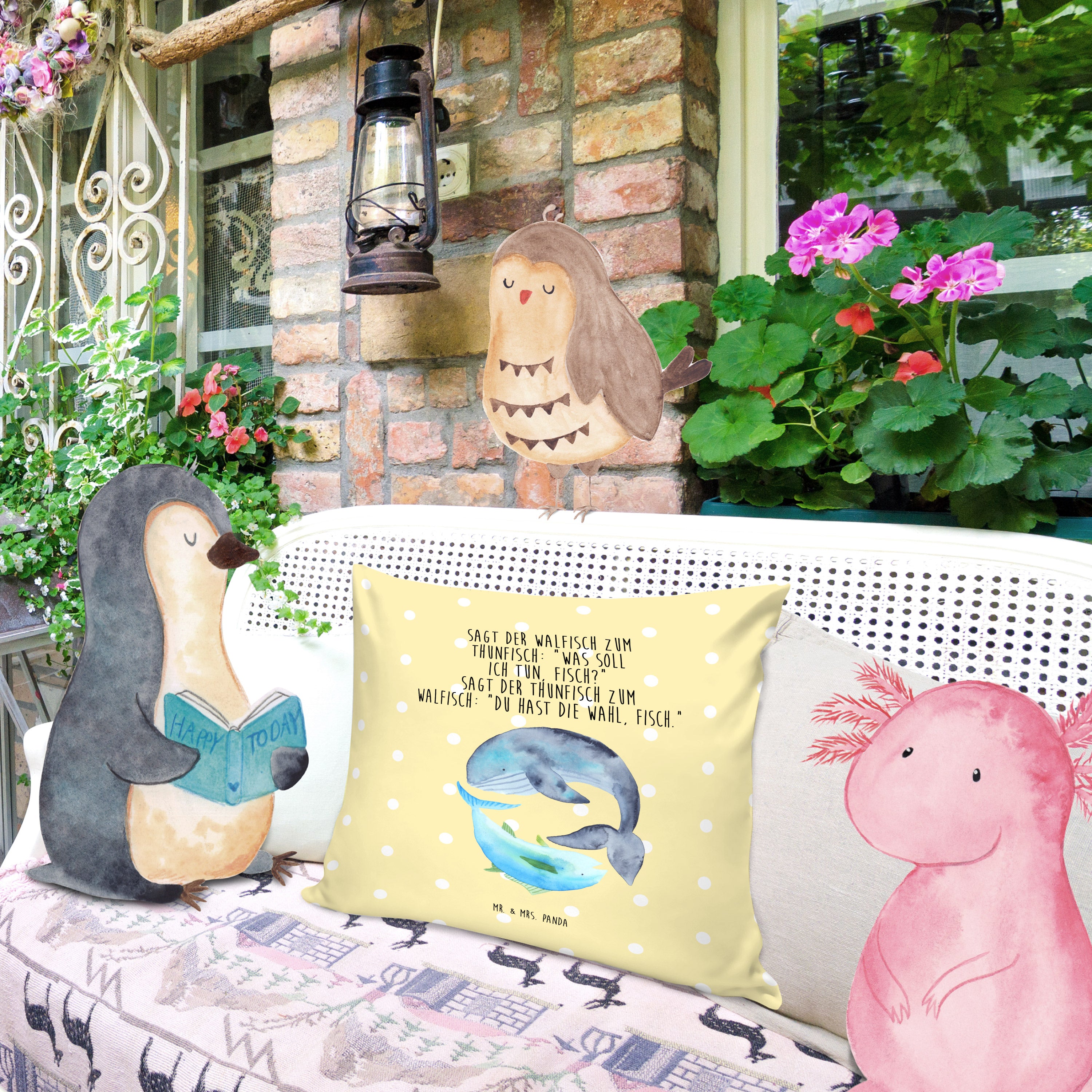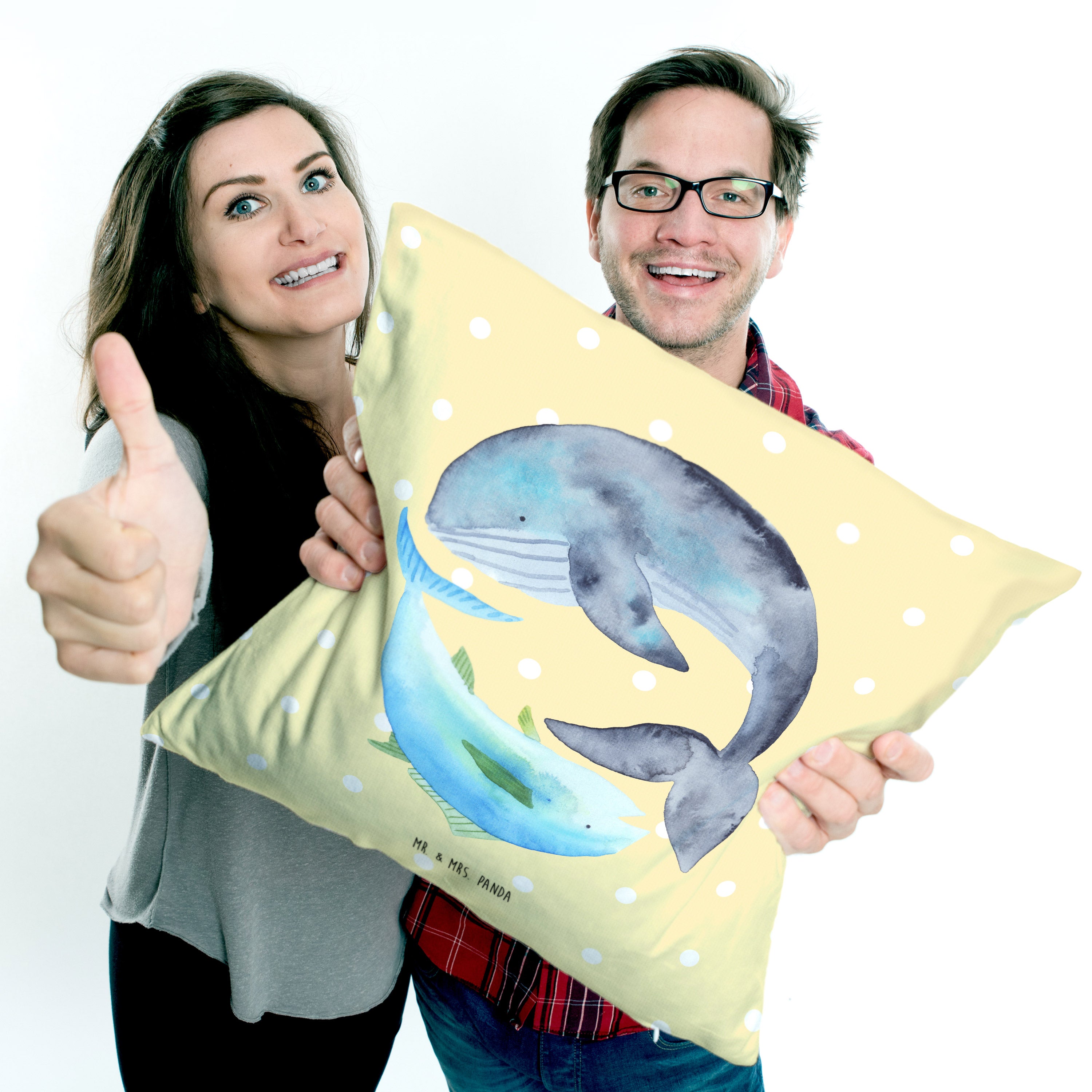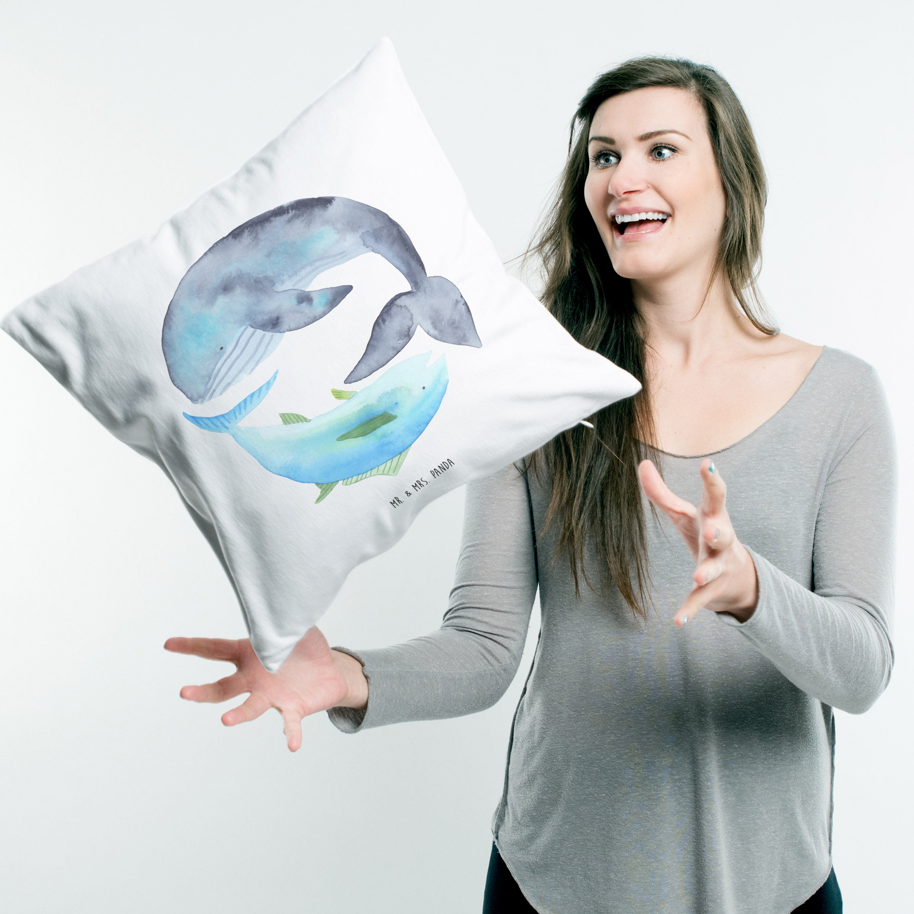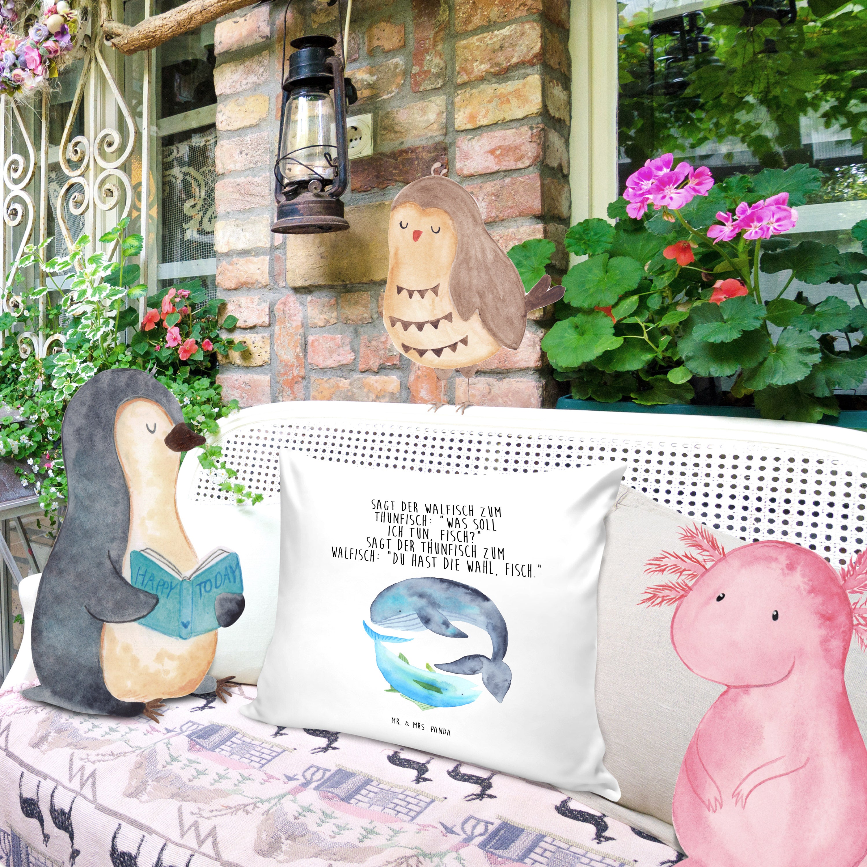 40x40 Kissen Walfisch & Thunfisch - mit Spruch - Weiß