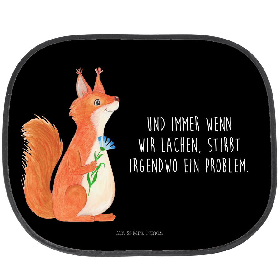 Auto Sonnenschutz Eichhörnchen Blume - mit Spruch - Schwarz