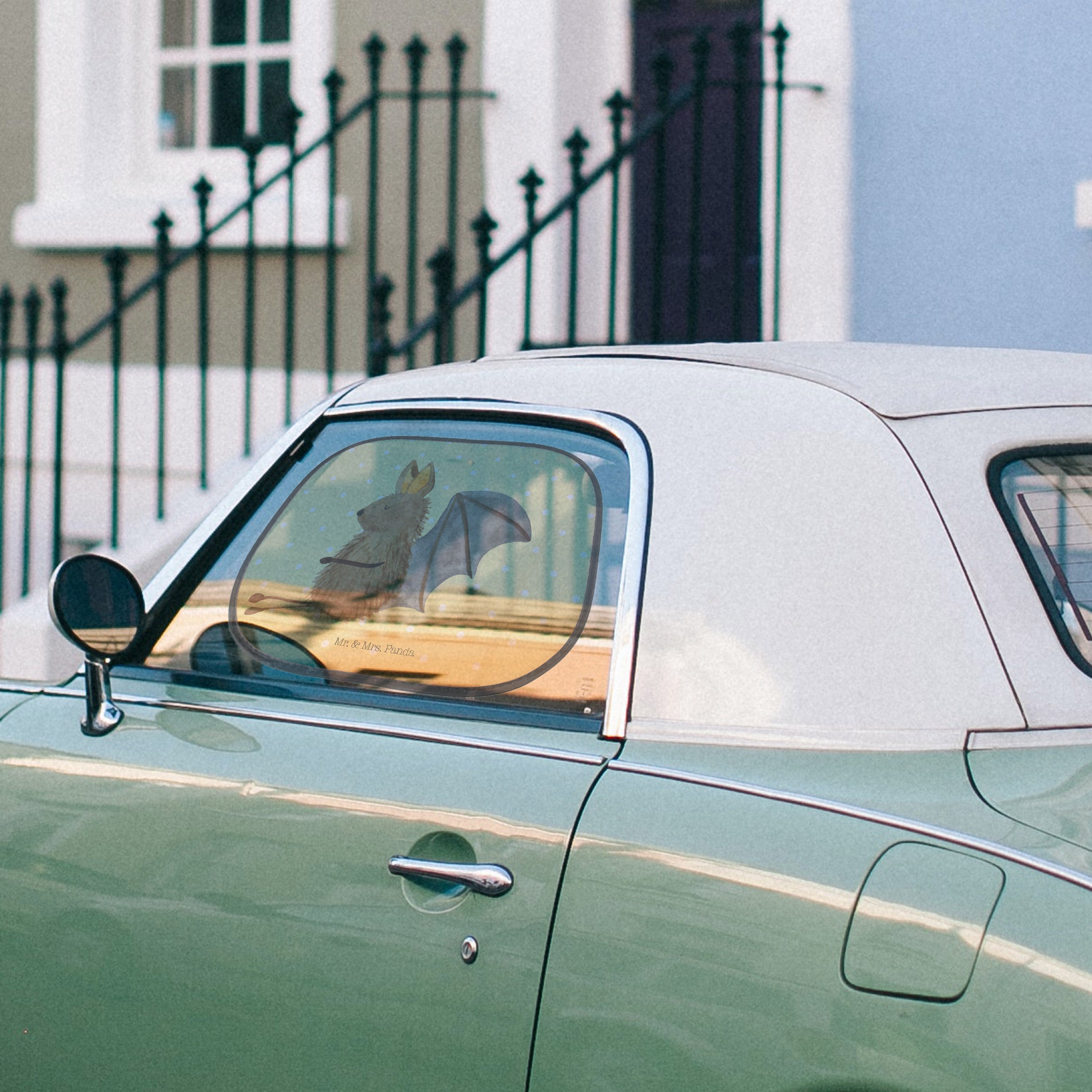 Auto Sonnenschutz Fledermaus sitzend - mit Spruch - Weiß