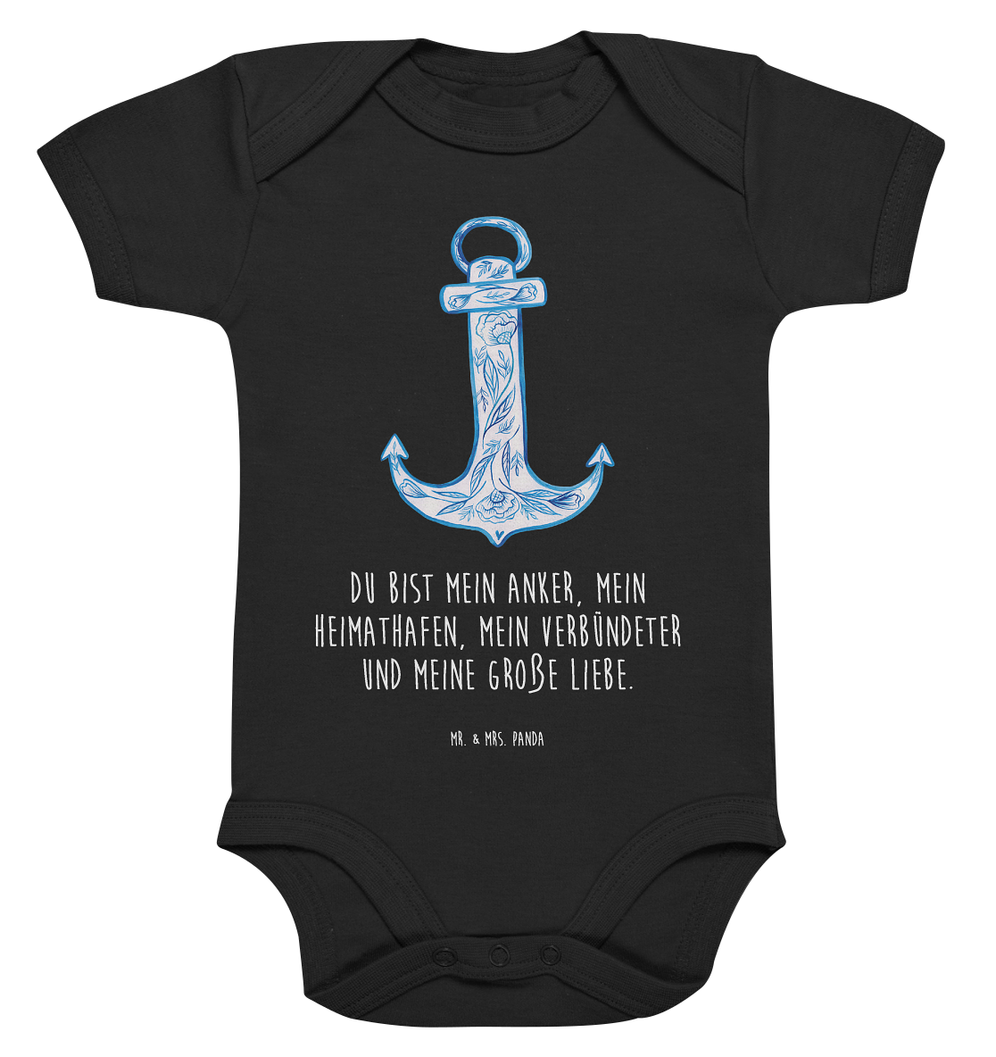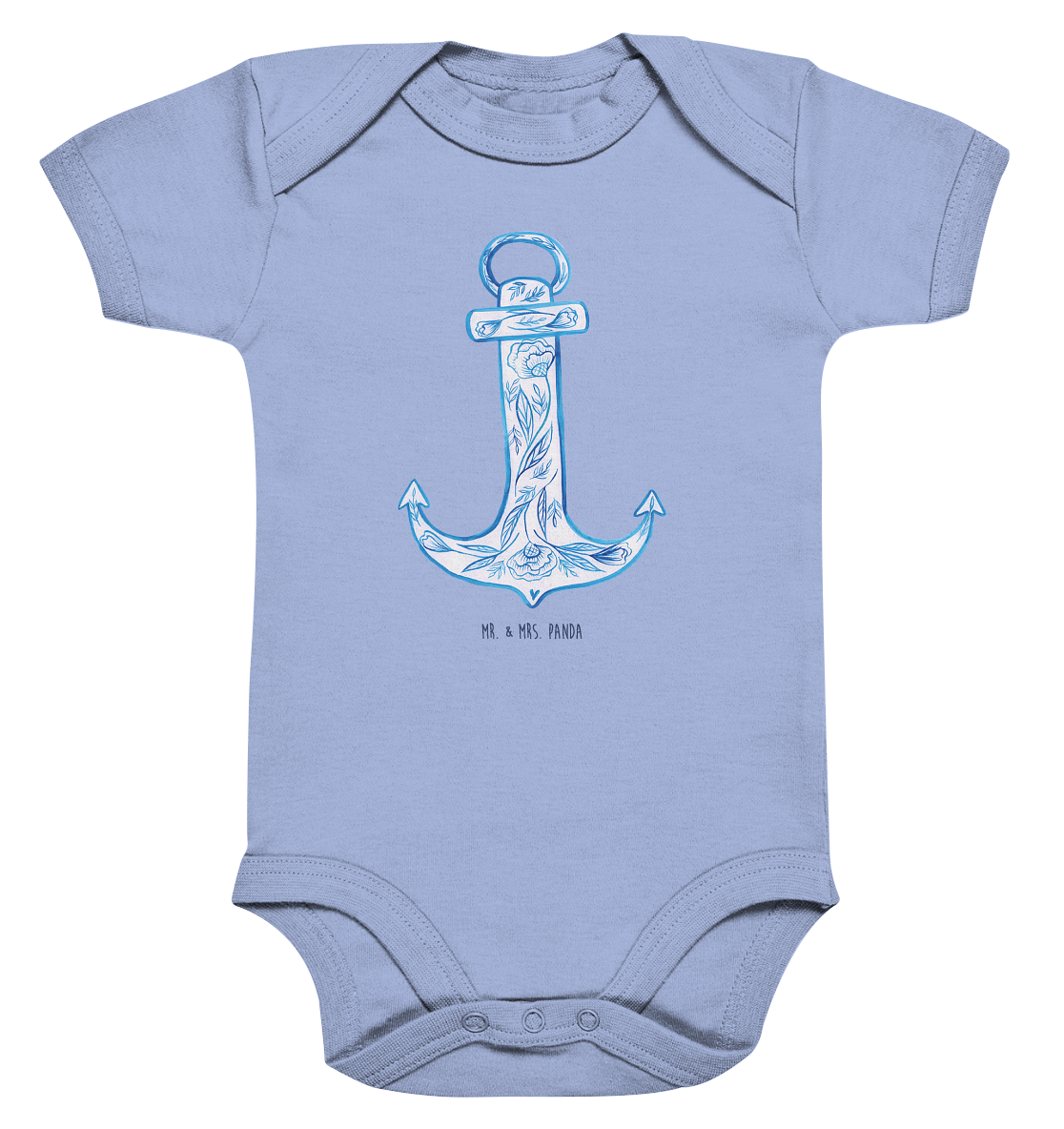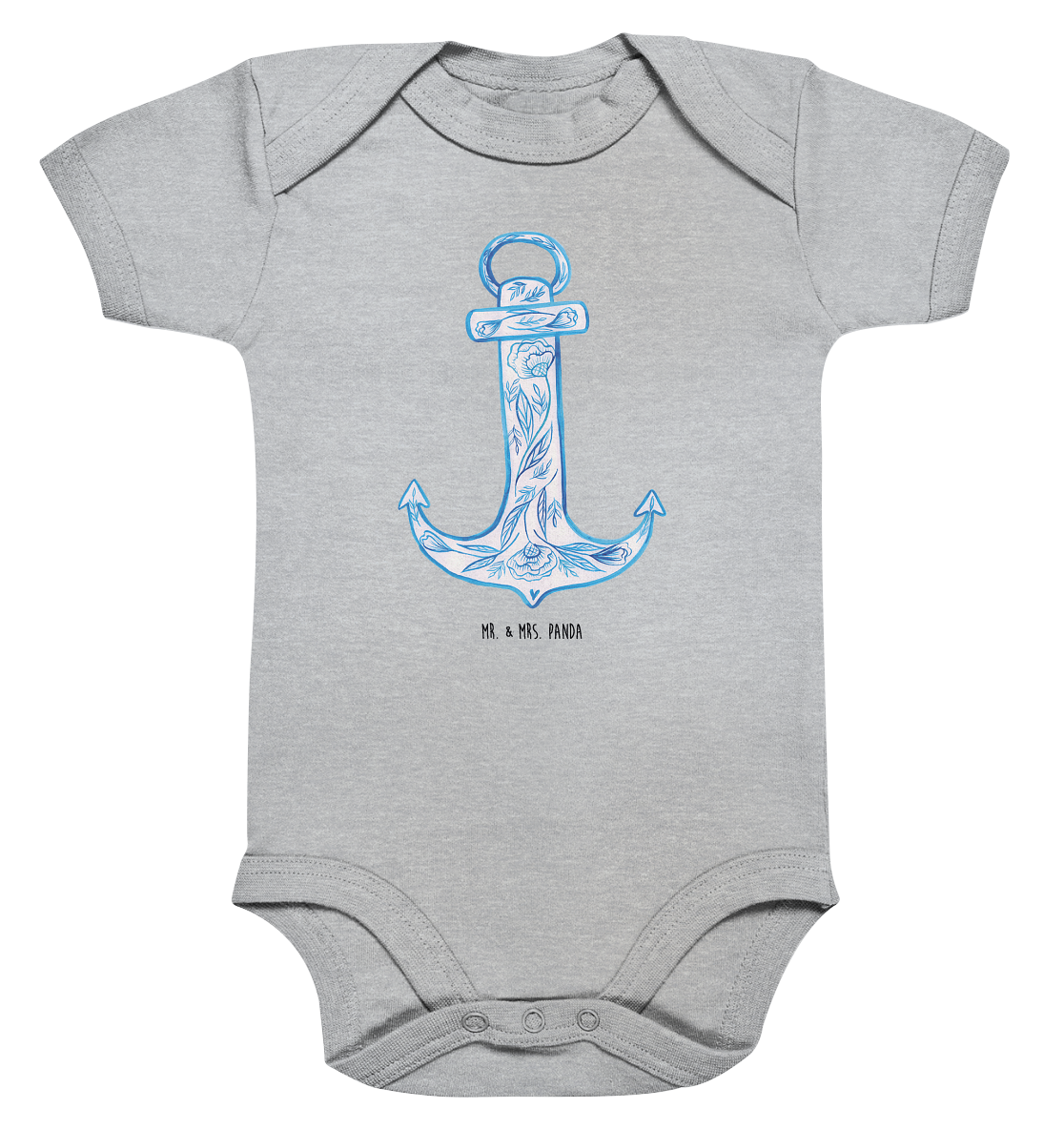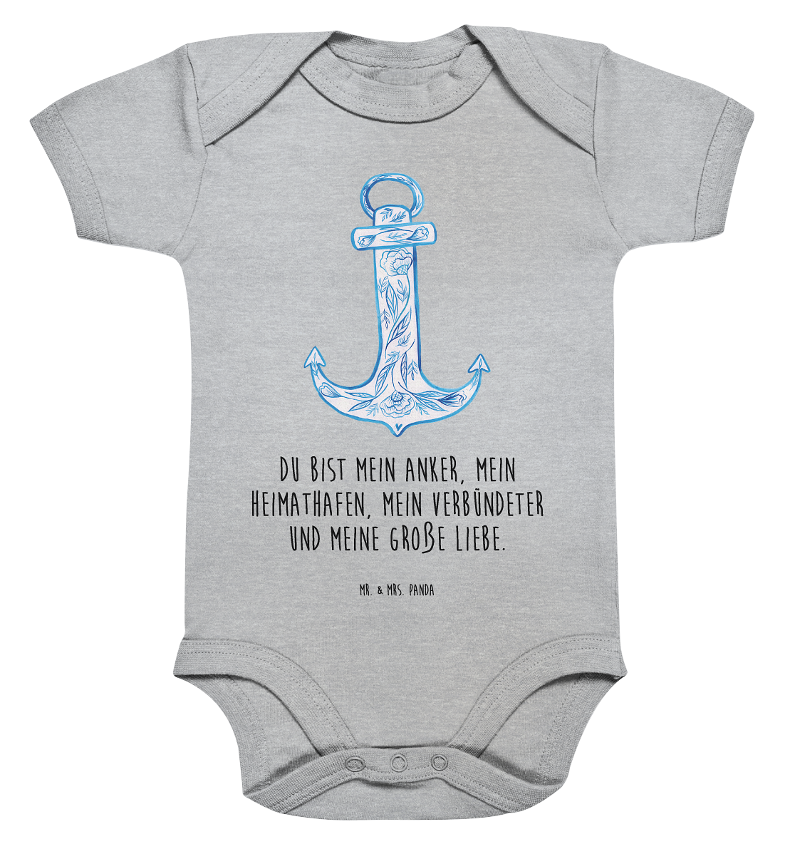 Organic Baby Body Anker Blau - 1. - 3. Monat - mit Spruch - Heather Grey