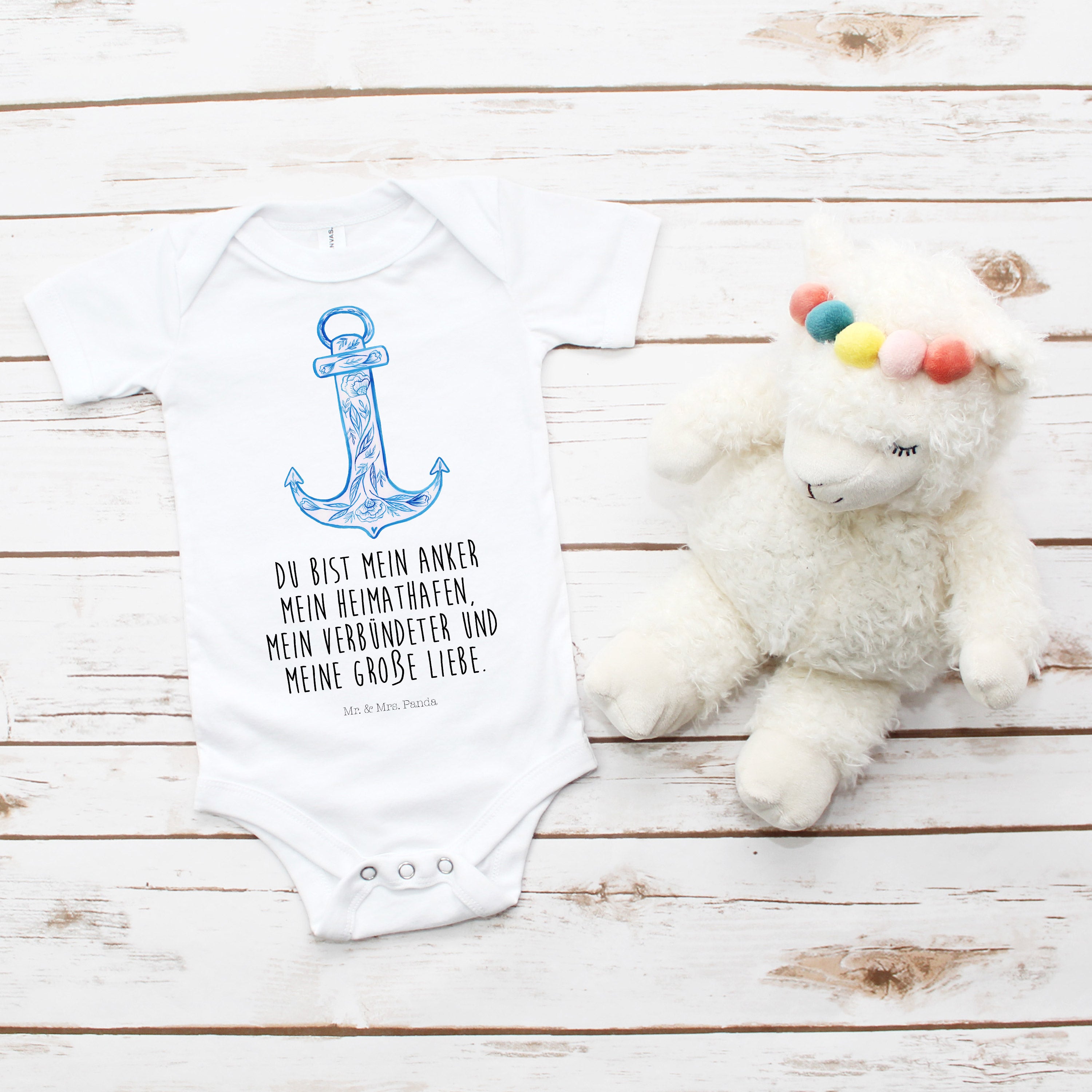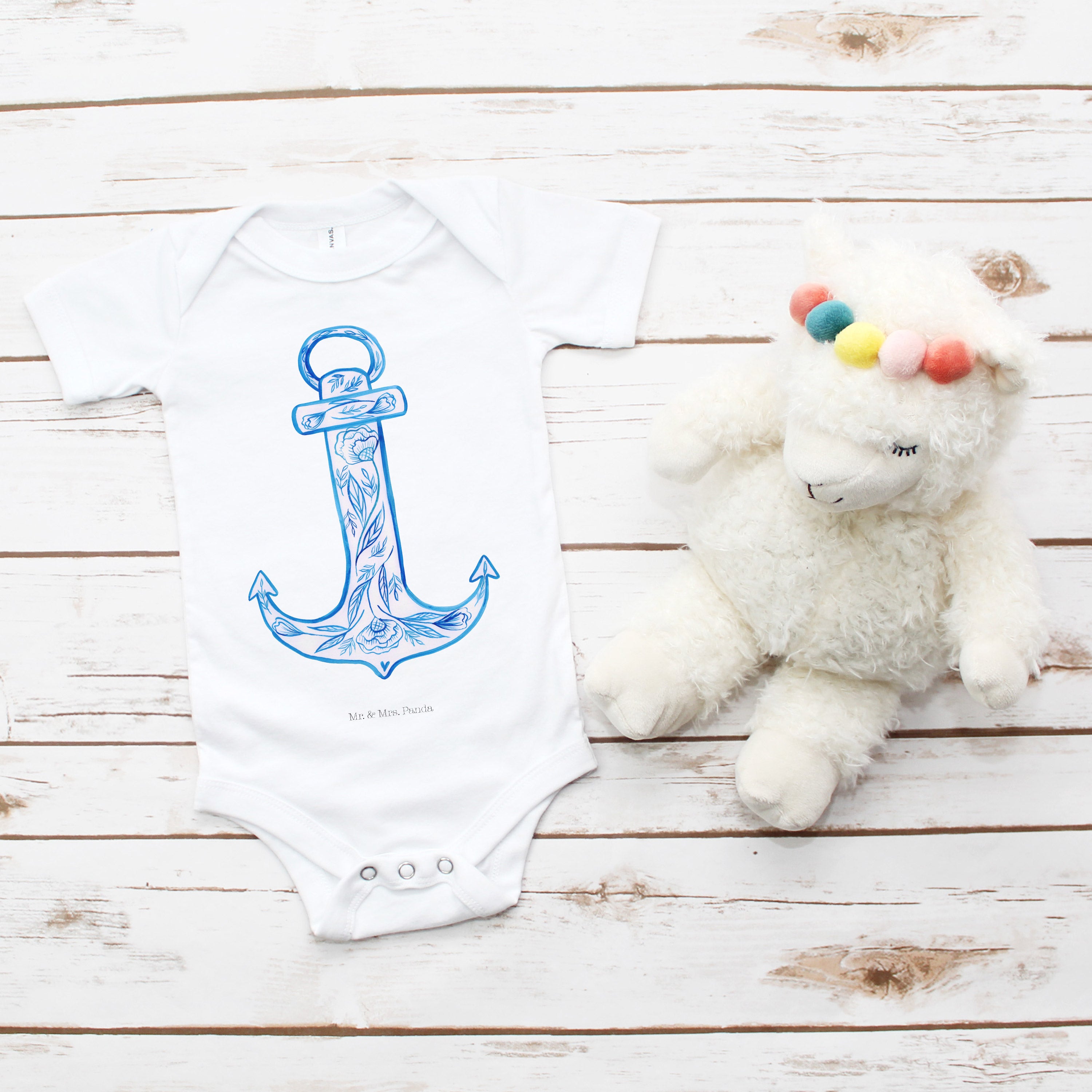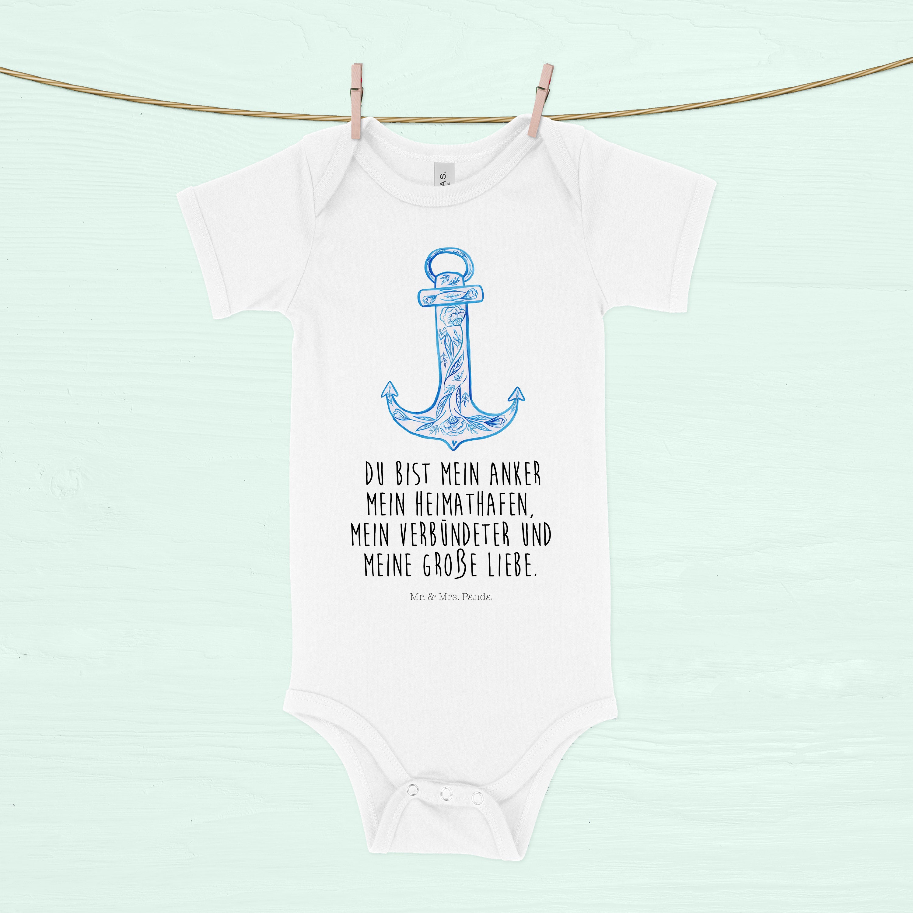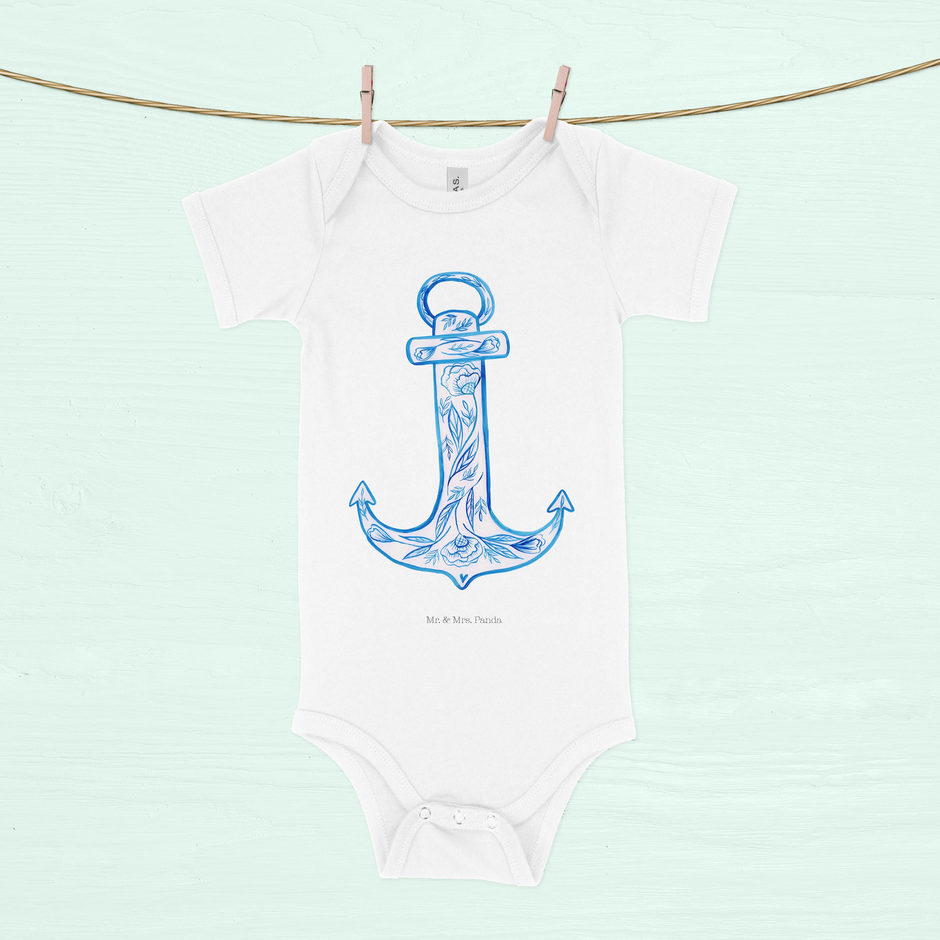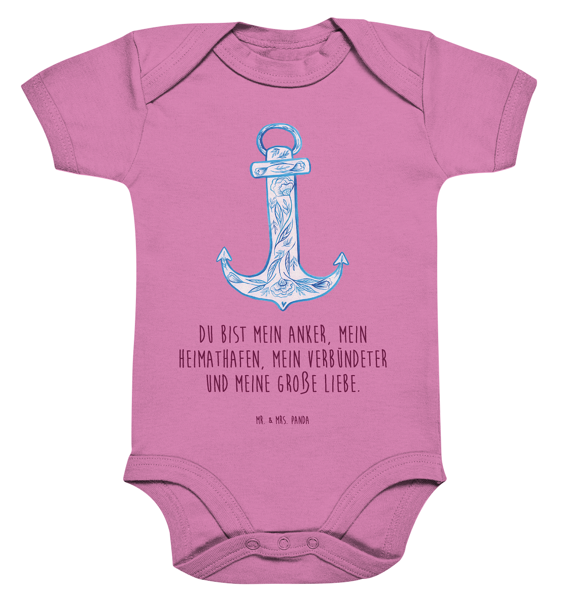 Organic Baby Body Anker Blau - 1. - 3. Monat - mit Spruch - Heather Grey