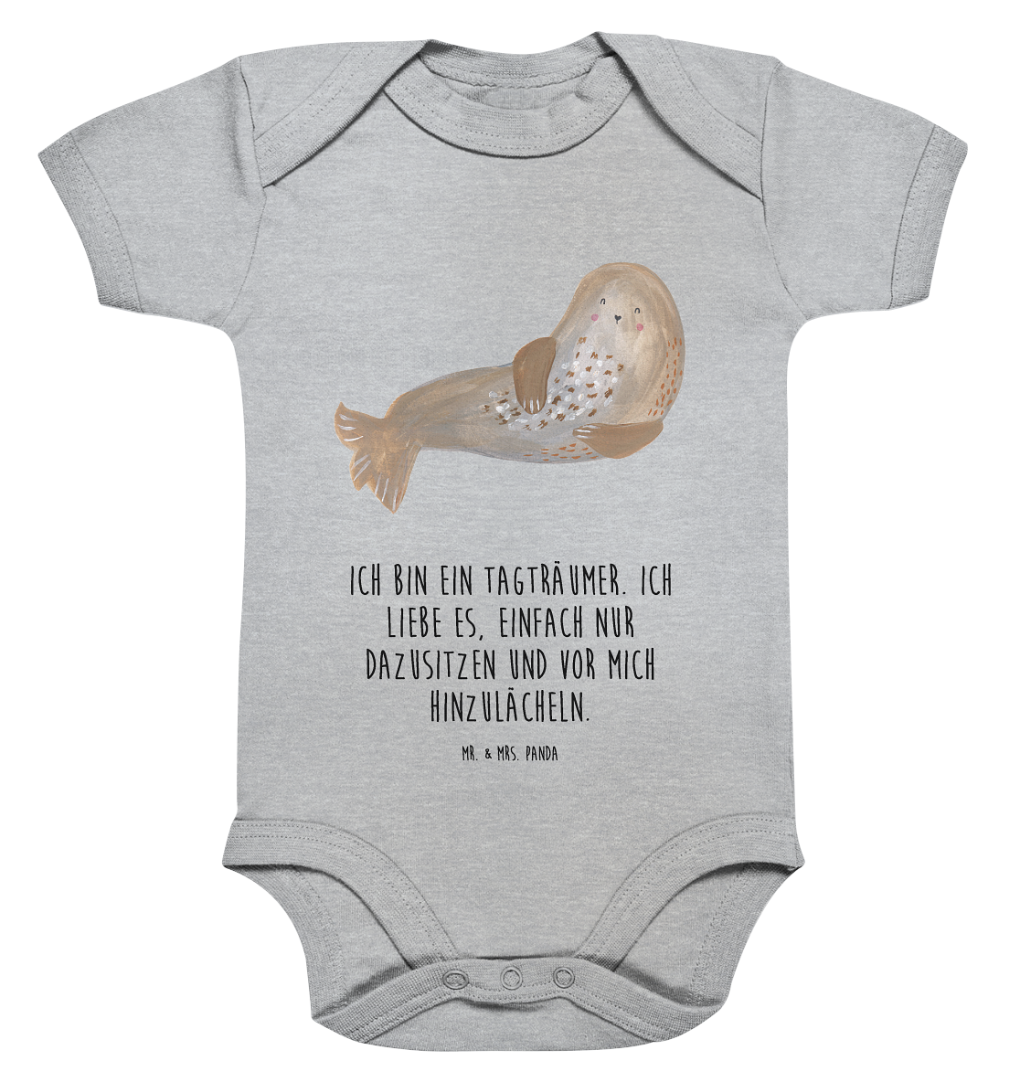Organic Baby Body Robbe lachend - 1. - 3. Monat - mit Spruch - Heather Grey
