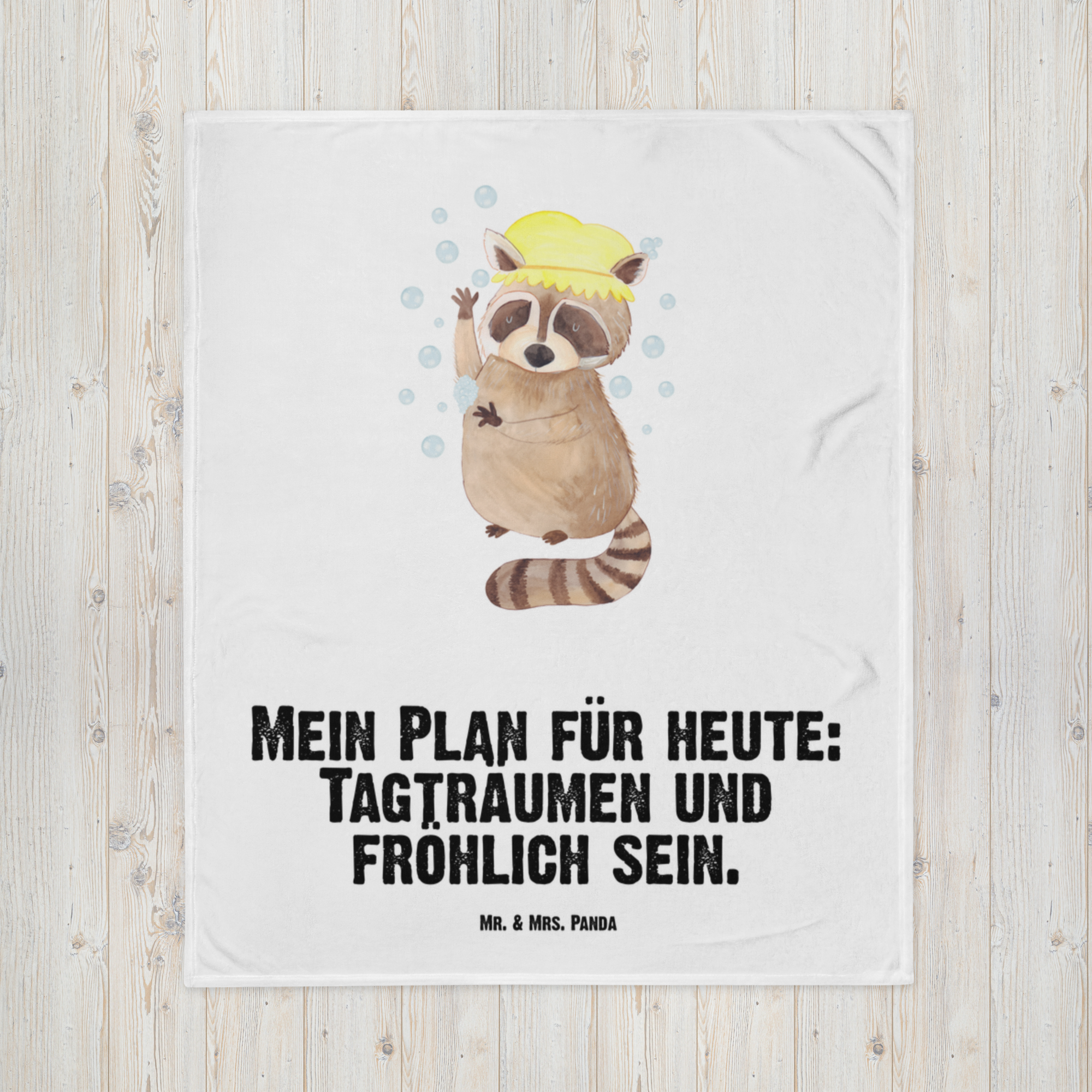 Babydecke Waschbär Babydecke, Babygeschenk, Geschenk Geburt, Babyecke Kuscheldecke, Krabbeldecke, Tiermotive, Gute Laune, lustige Sprüche, Tiere, Waschbär, Tagträumen, Plan, Fröhlich, waschen, Seifenblasen