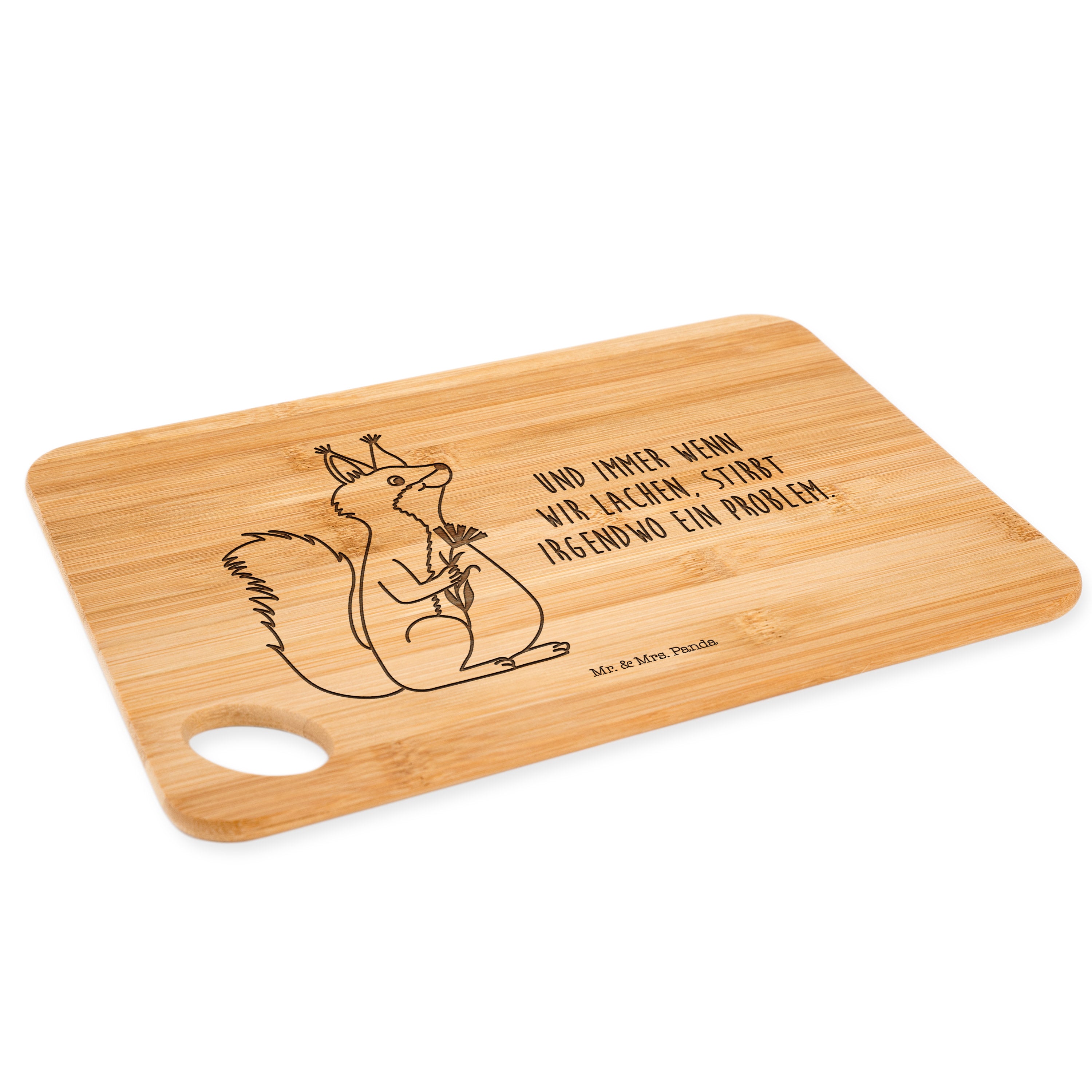 Bambus - Schneidebrett Eichhörnchen Blume - mit Spruch