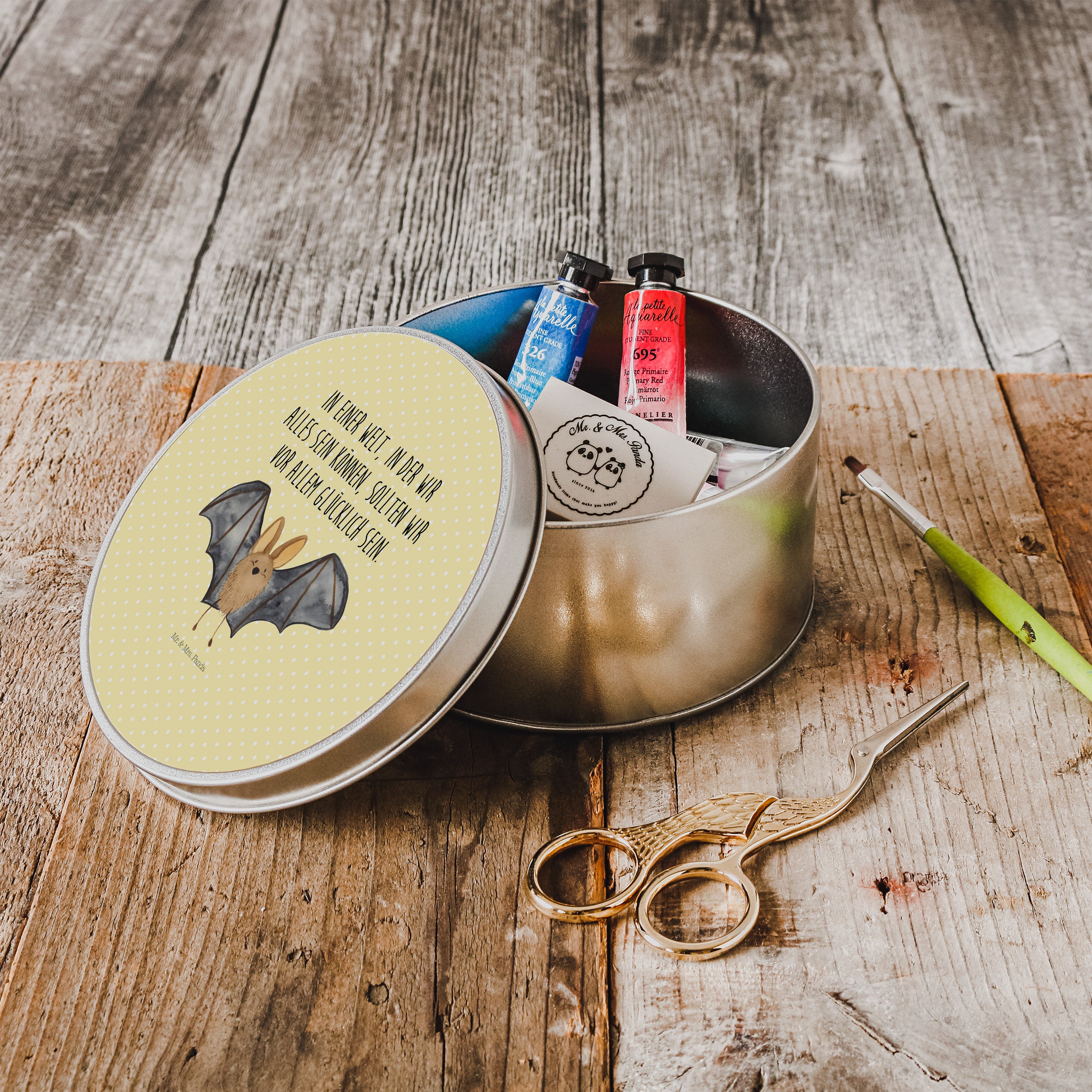 Blechdose rund Fledermaus Flügel - mit Spruch