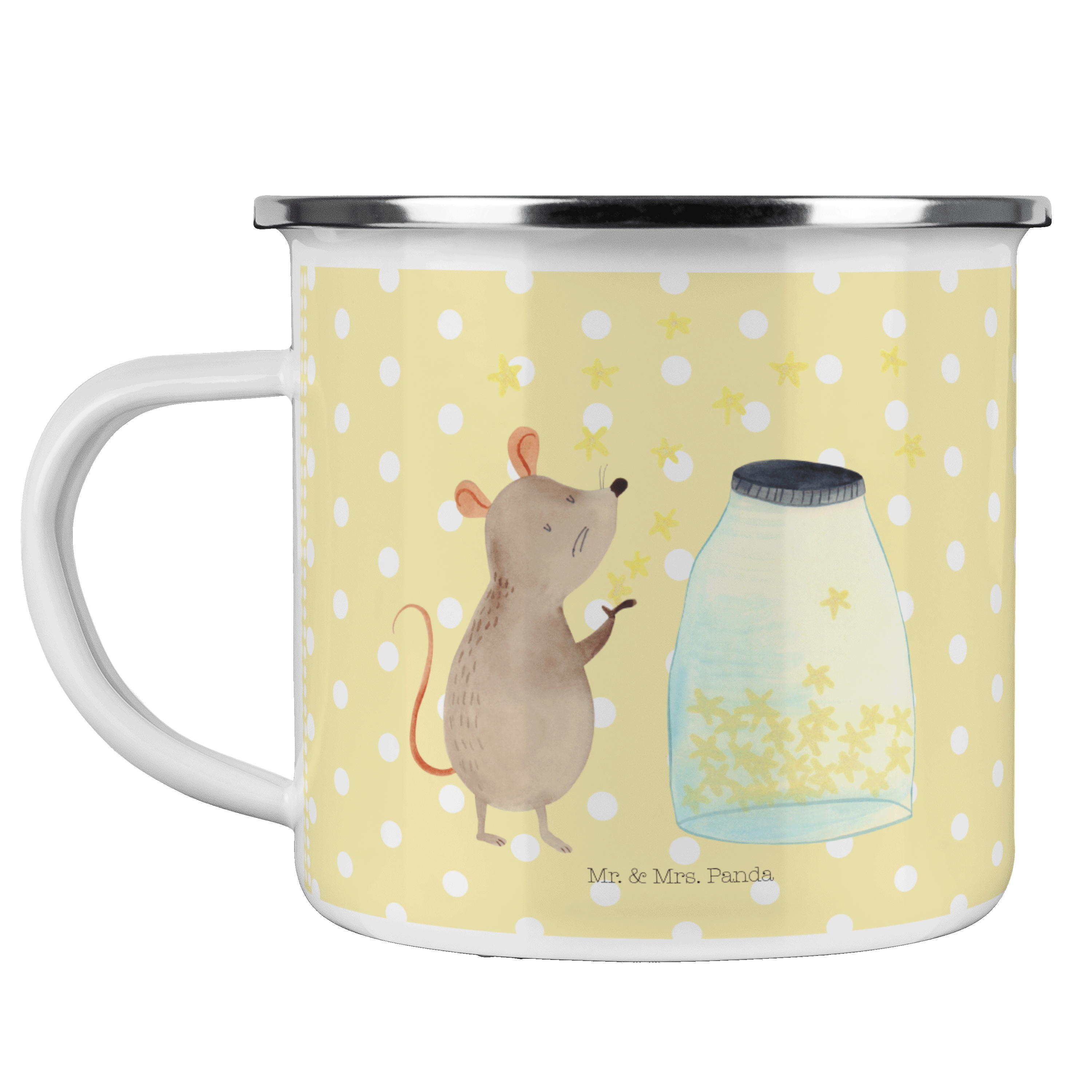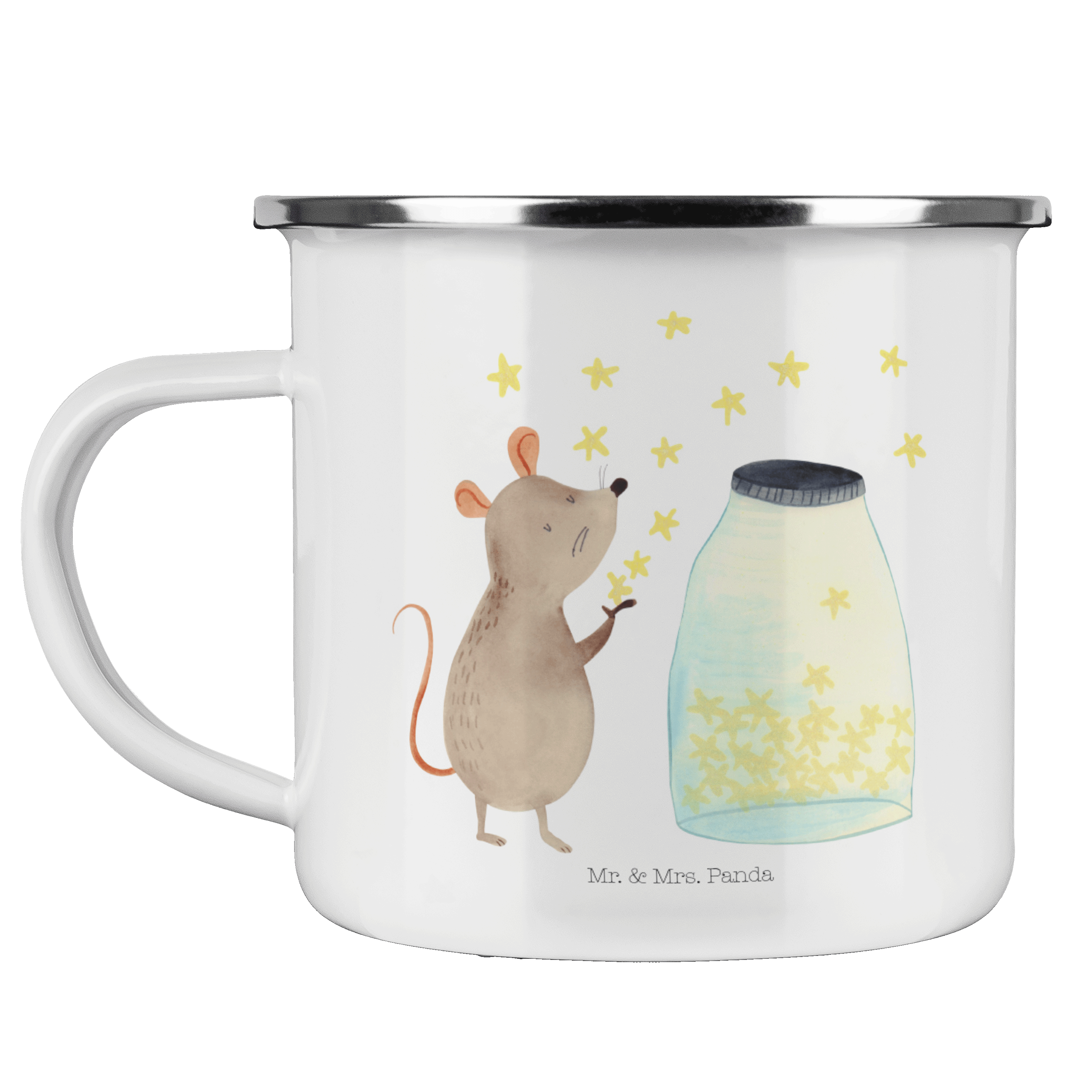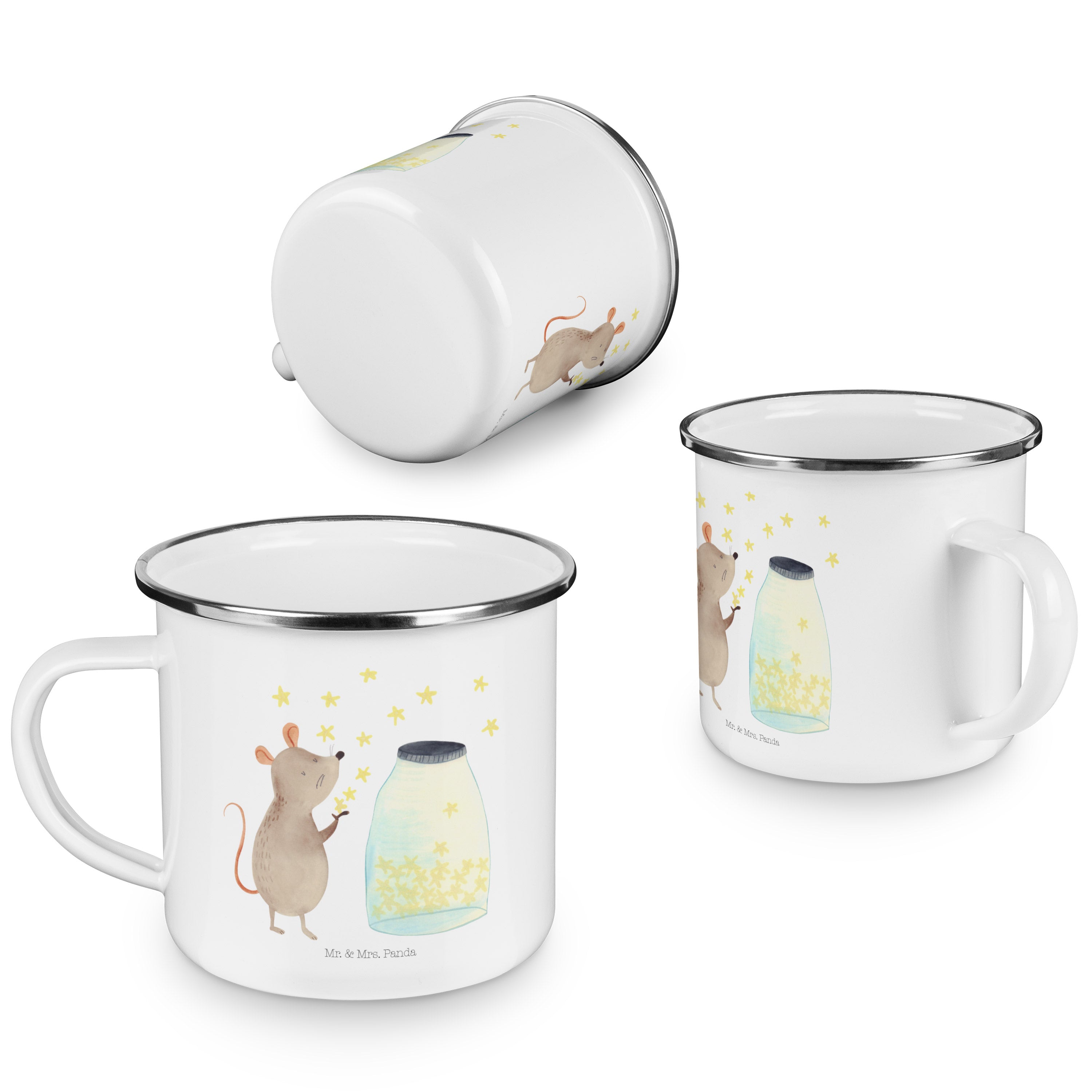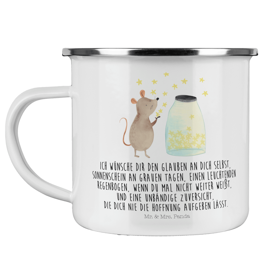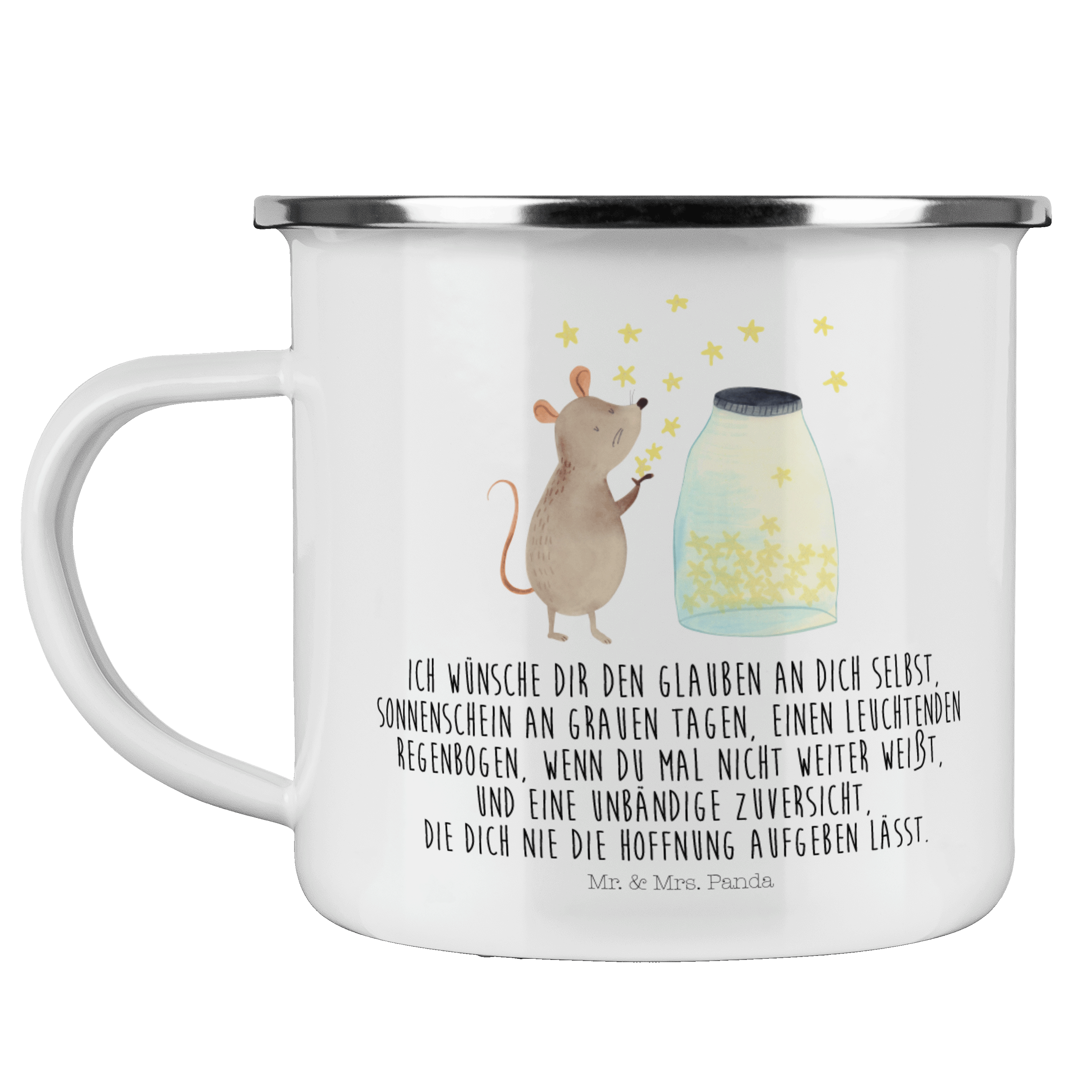 Camping Emaille Tasse Maus Sterne - mit Spruch - Weiß