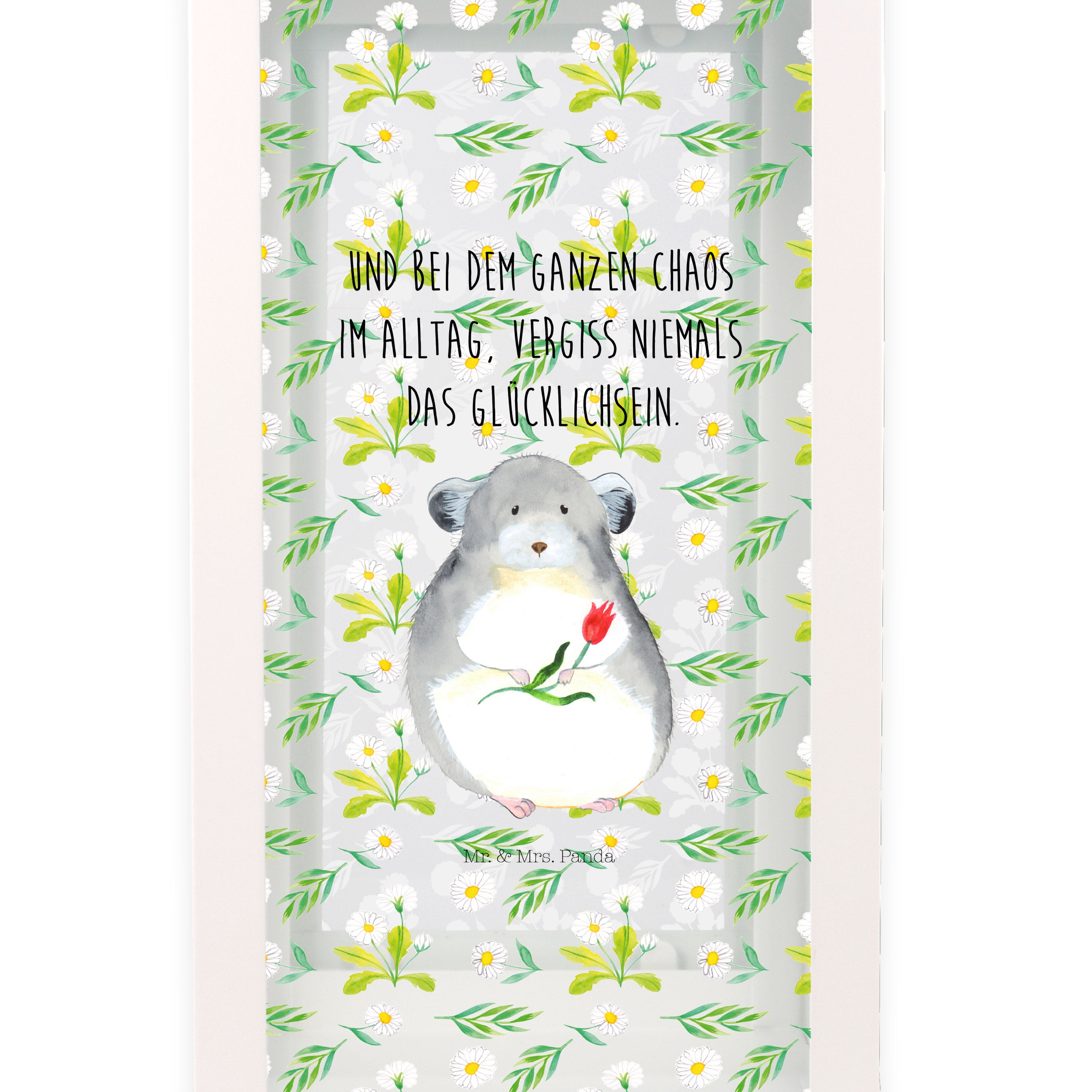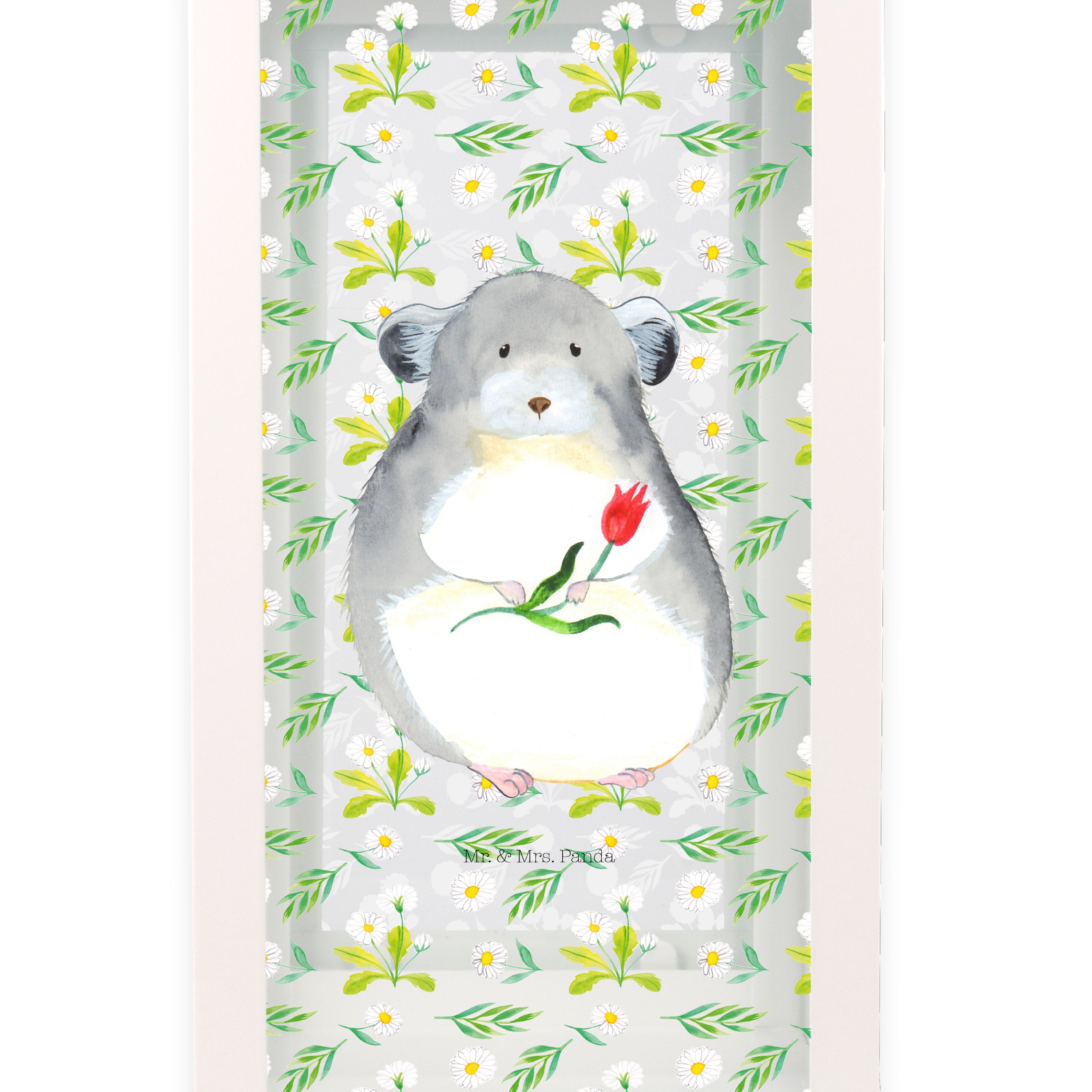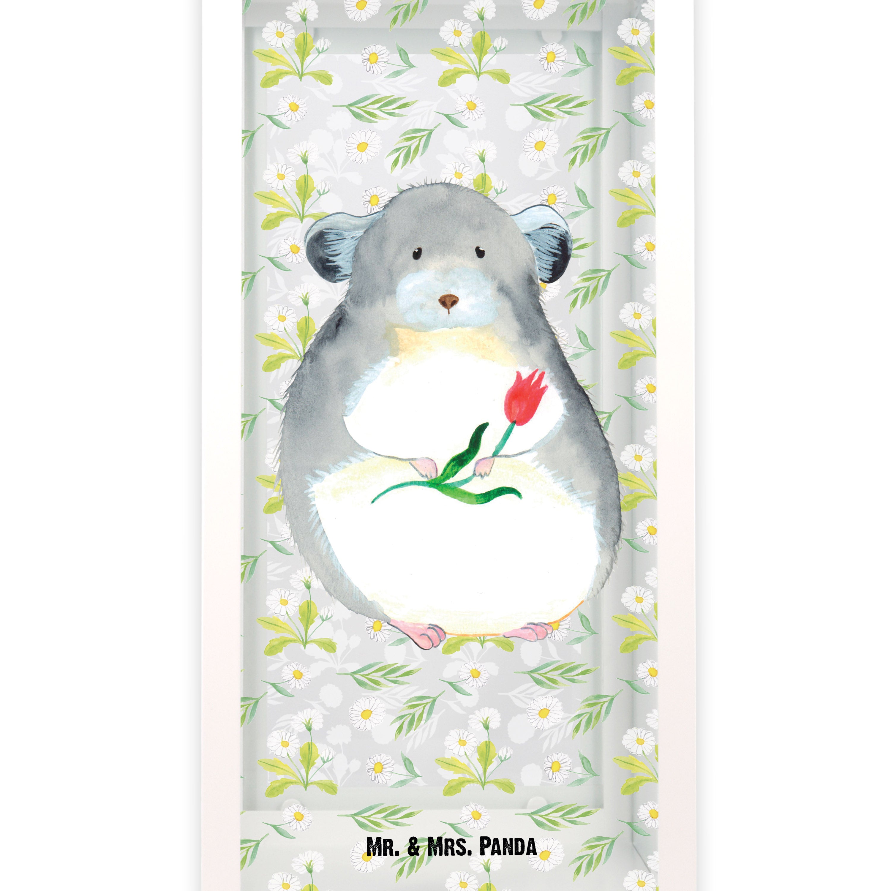 Du kannst dich dem niedlichen Chinchilla nicht entziehen, der dich mit großen Augen und einem Blumenstrauß in der Hand anschaut. Schon allein sein flauschiges Fell und seine niedliche Nase strahlen pure Herzenswärme aus. Das Design "Chinchilla mit Blume" von Mr. & Mrs. Panda ist das perfekte Accessoire für alle Tierfreunde.