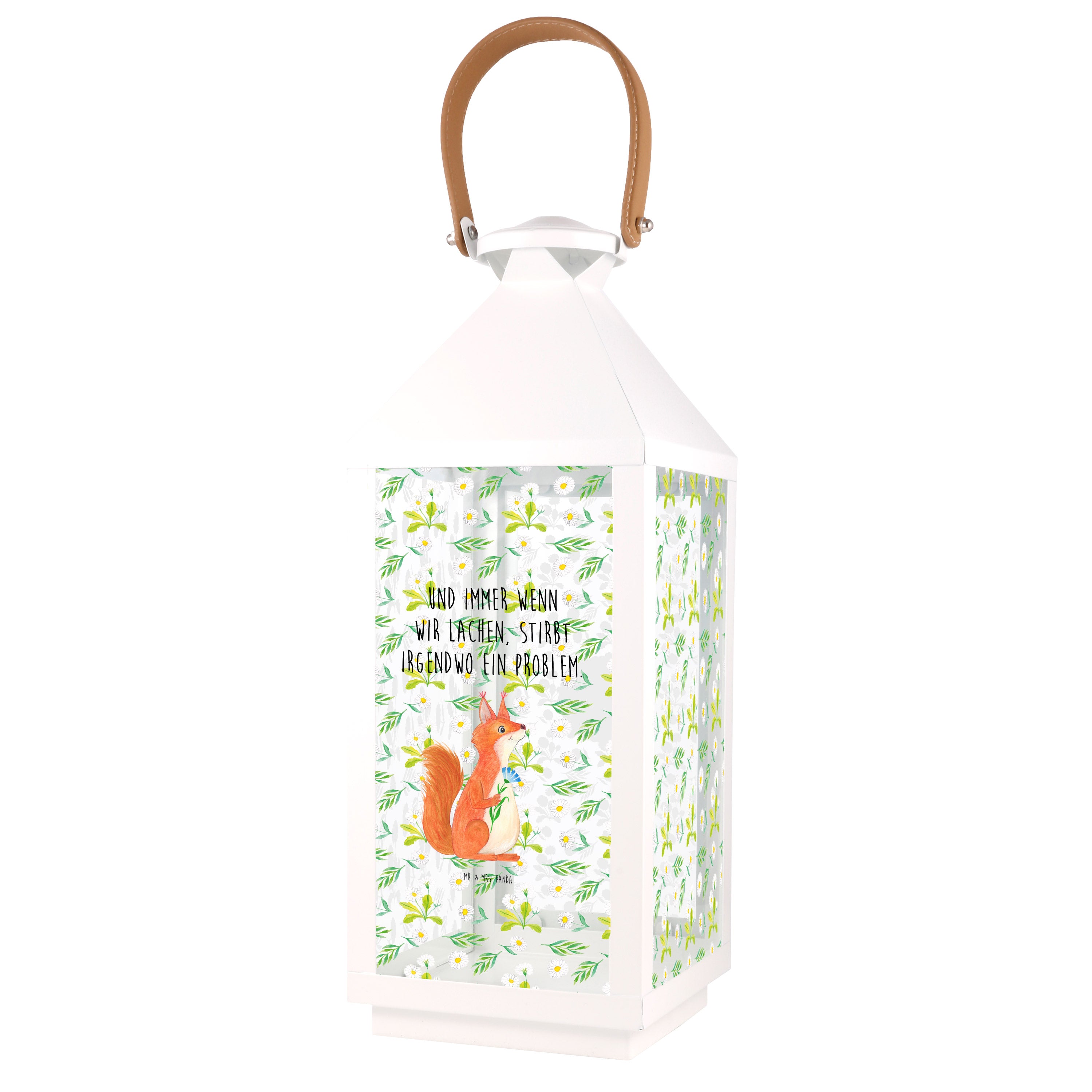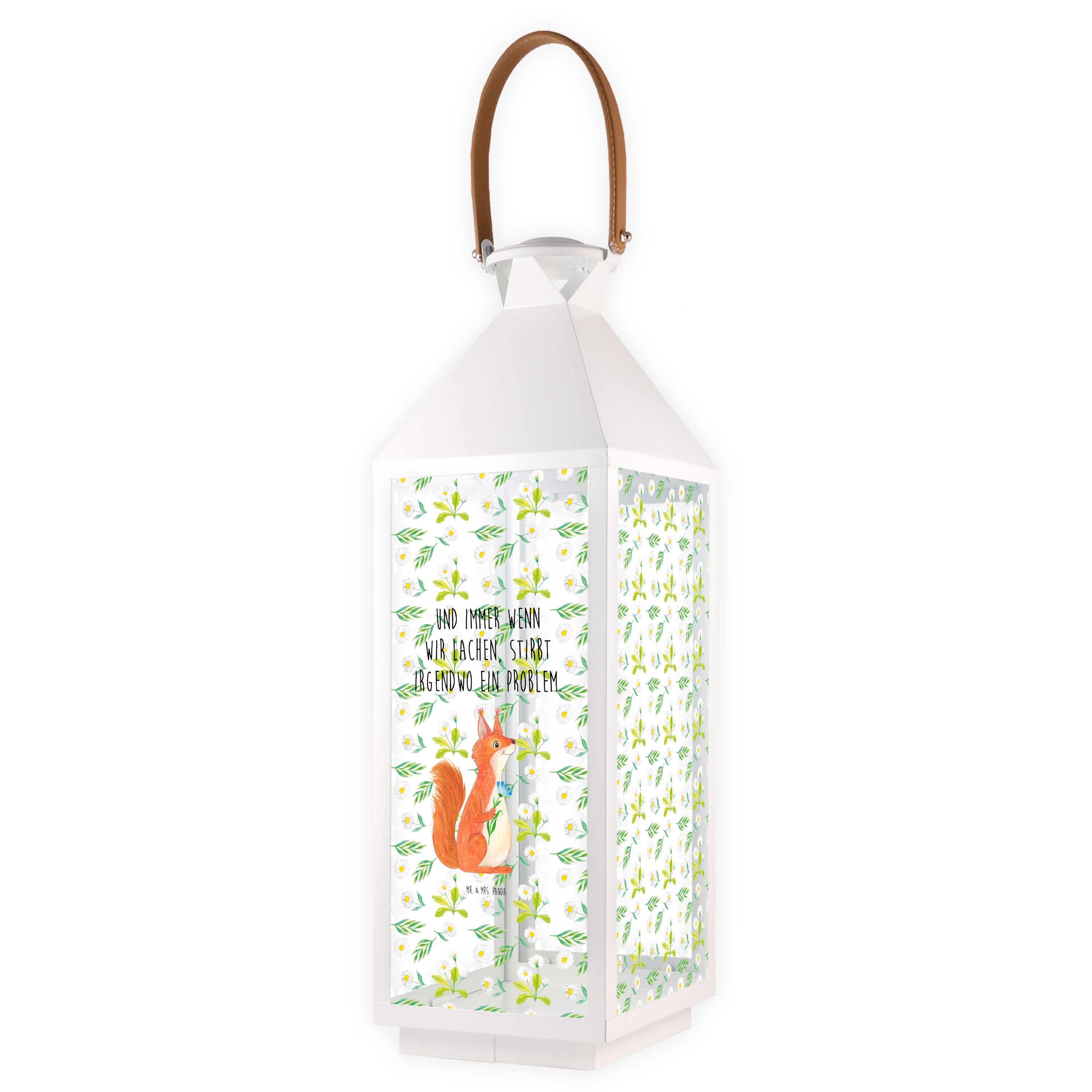 Deko Laterne Eichhörnchen Blume - L - mit Spruch
