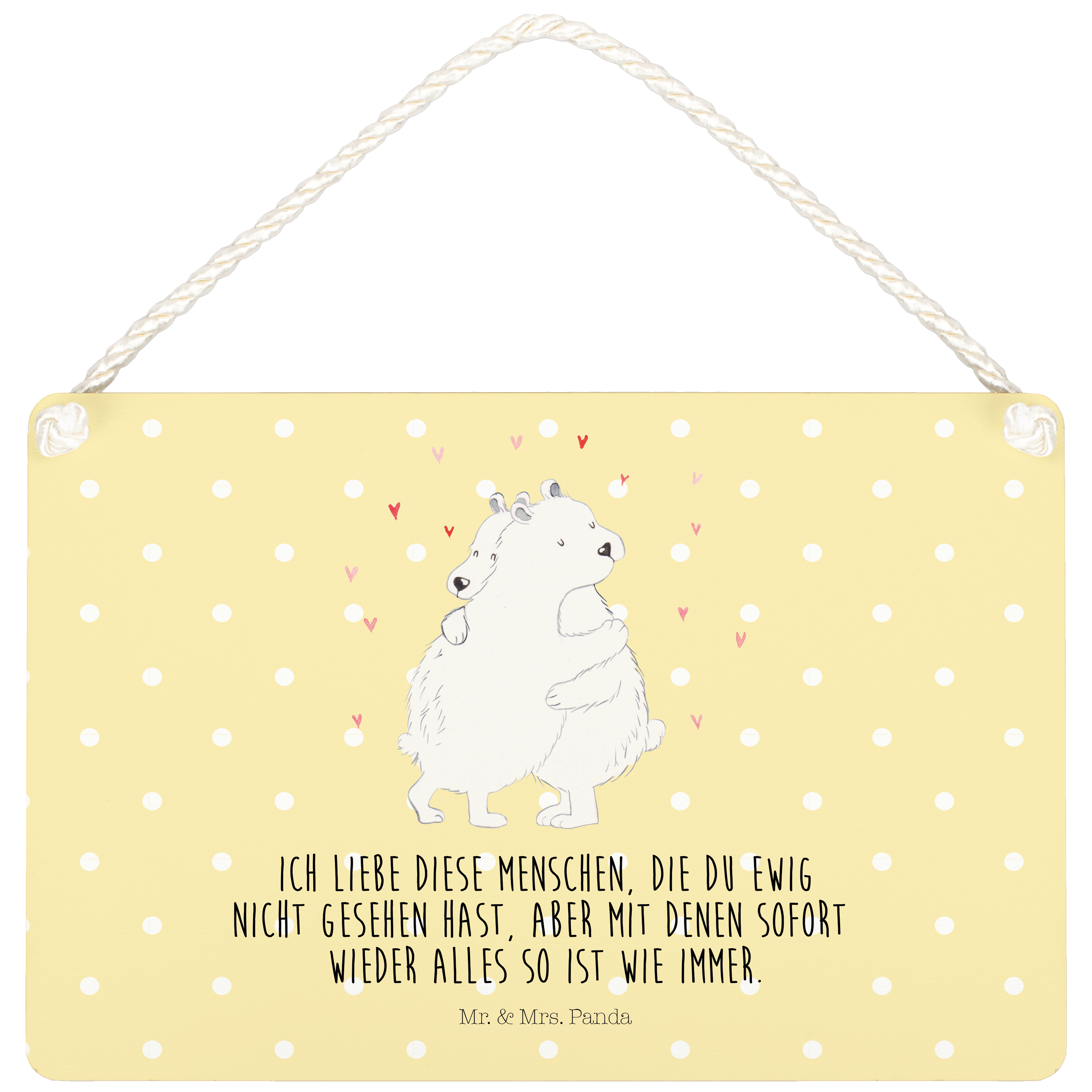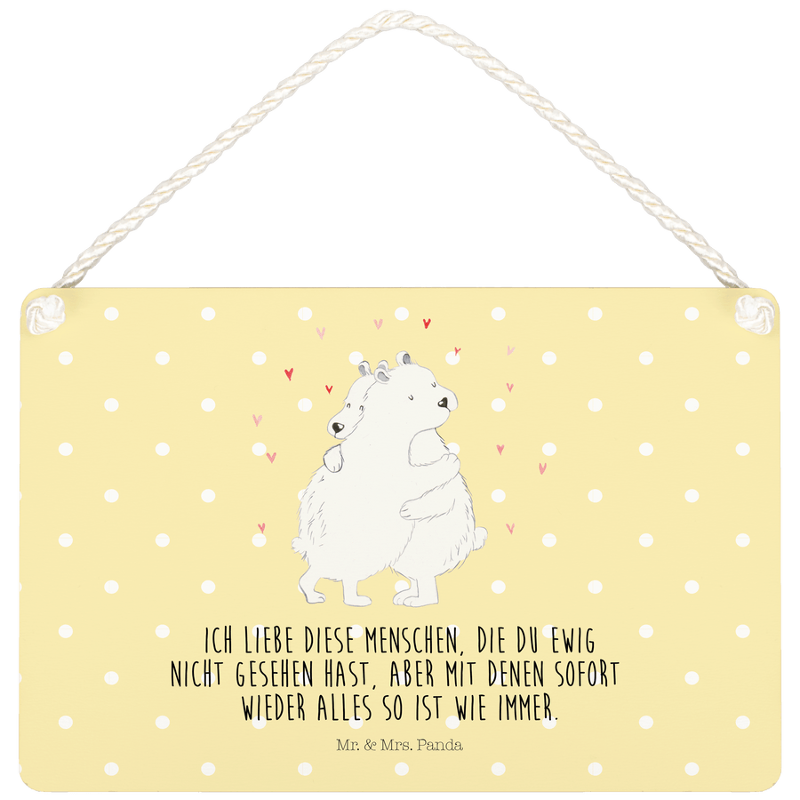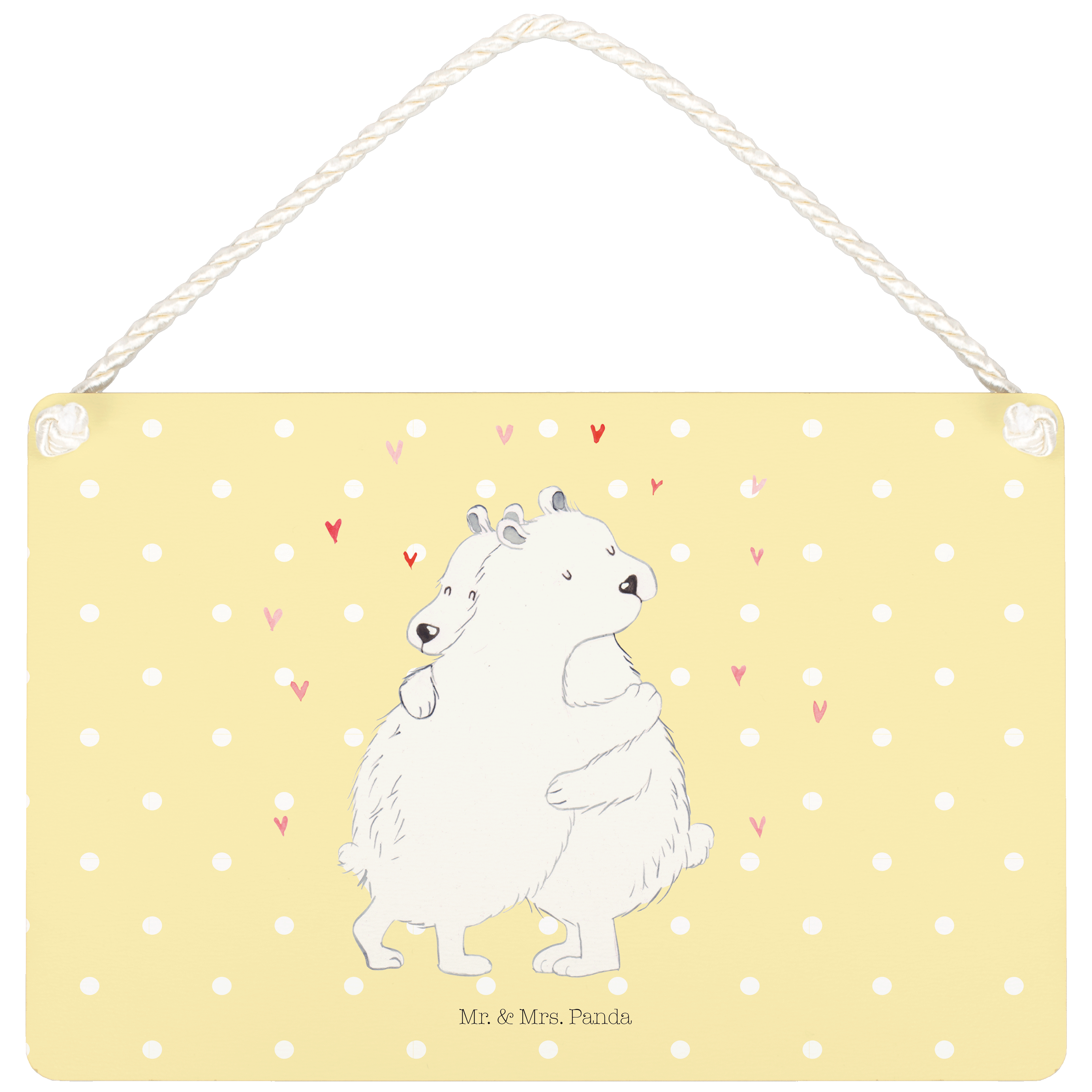 Deko Schild Eisbär Umarmen - mit Spruch - Gelb Pastell