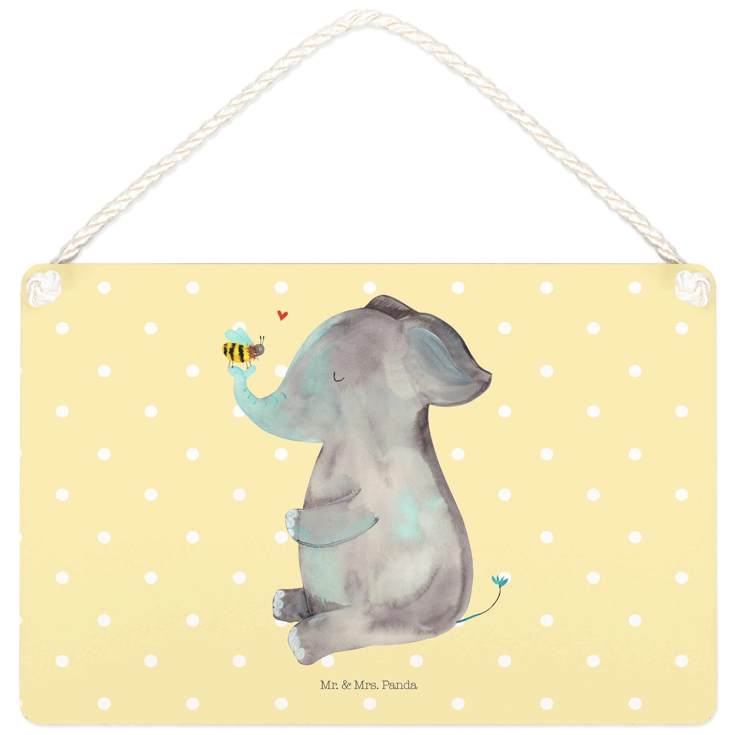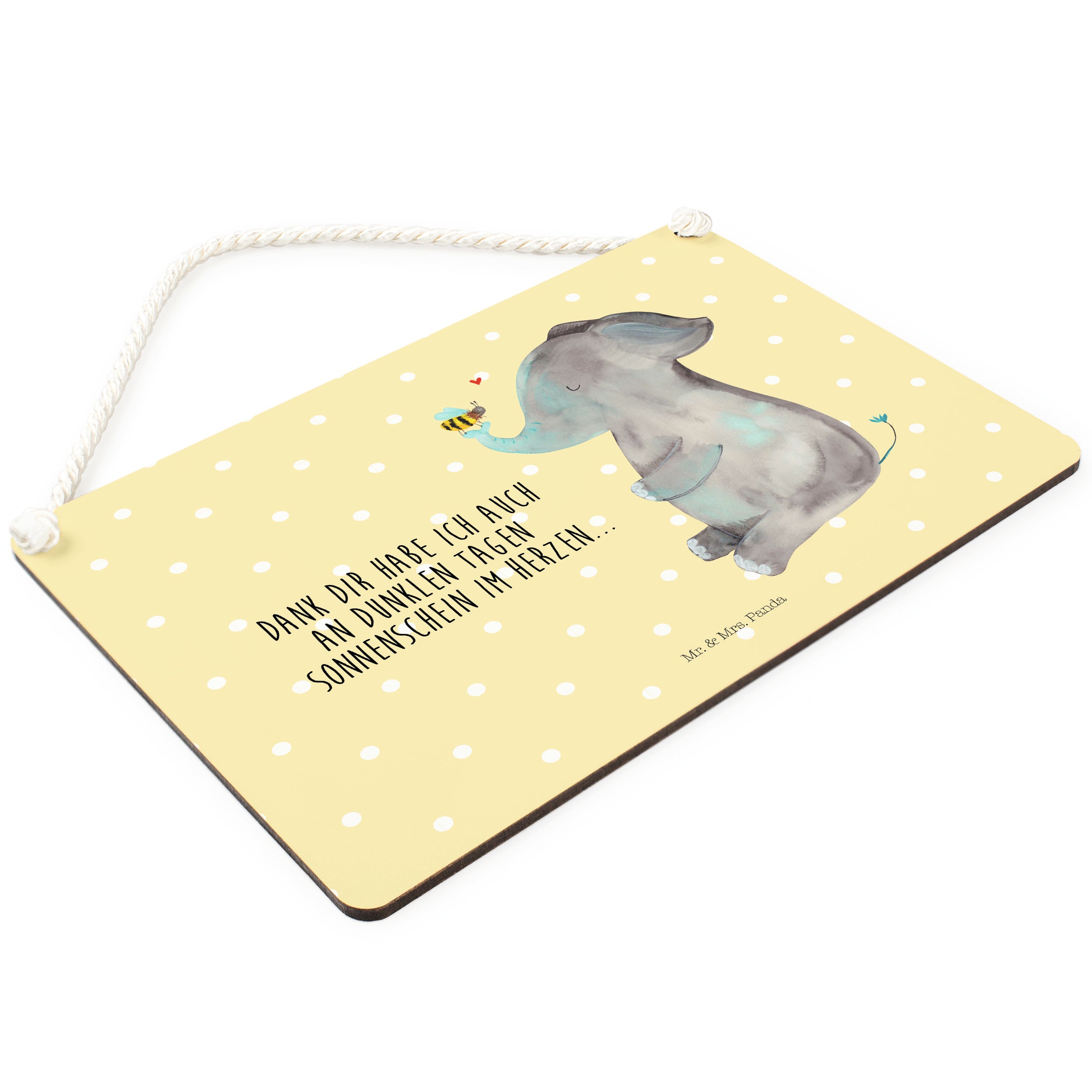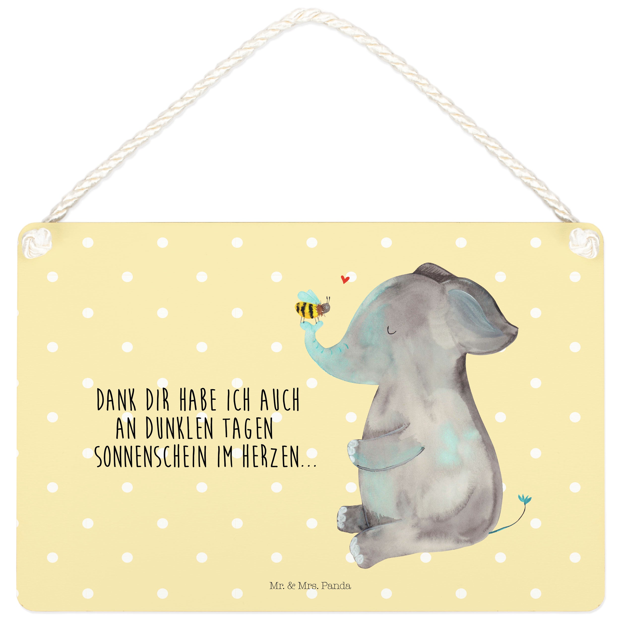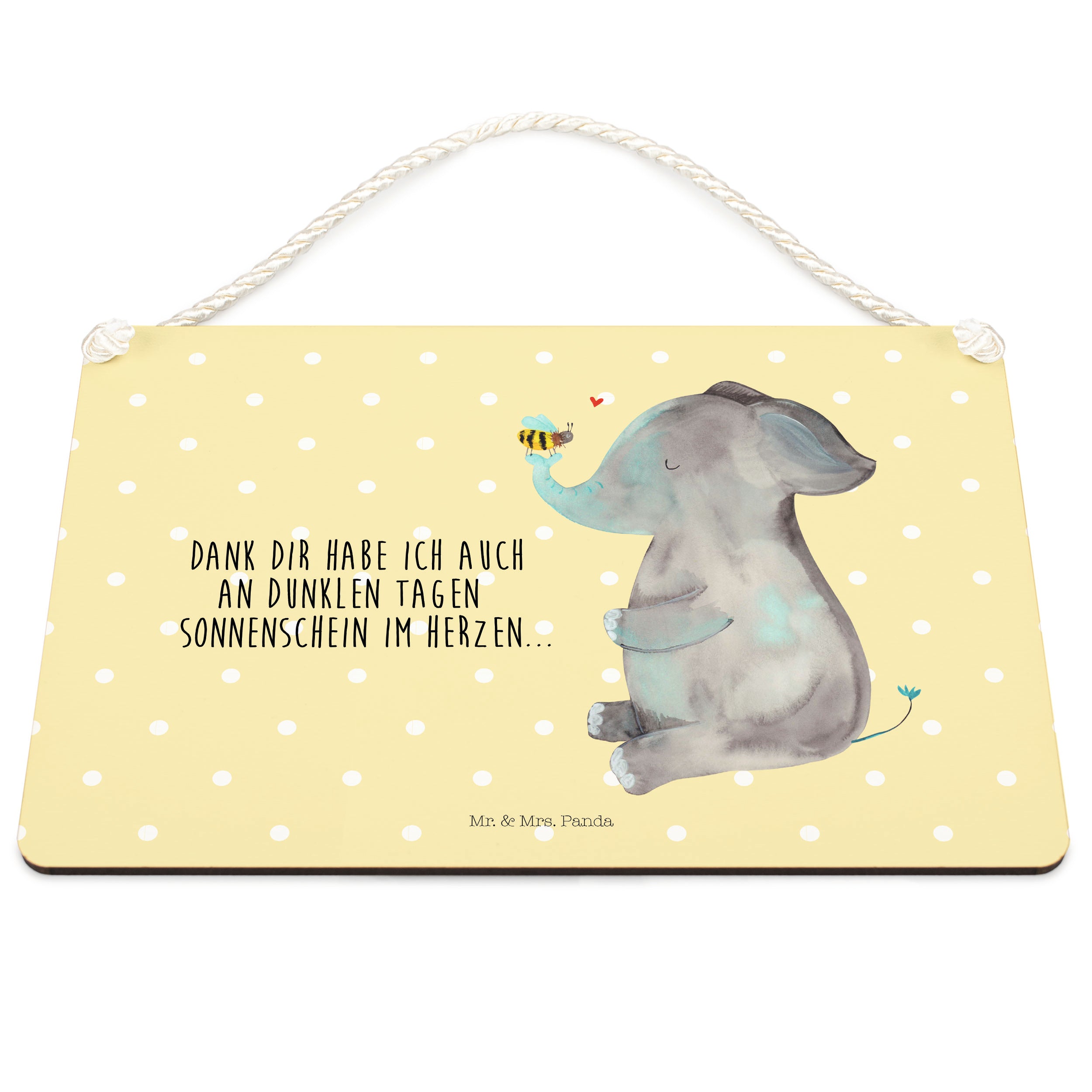 Deko Schild Elefant & Biene - mit Spruch - Gelb Pastell