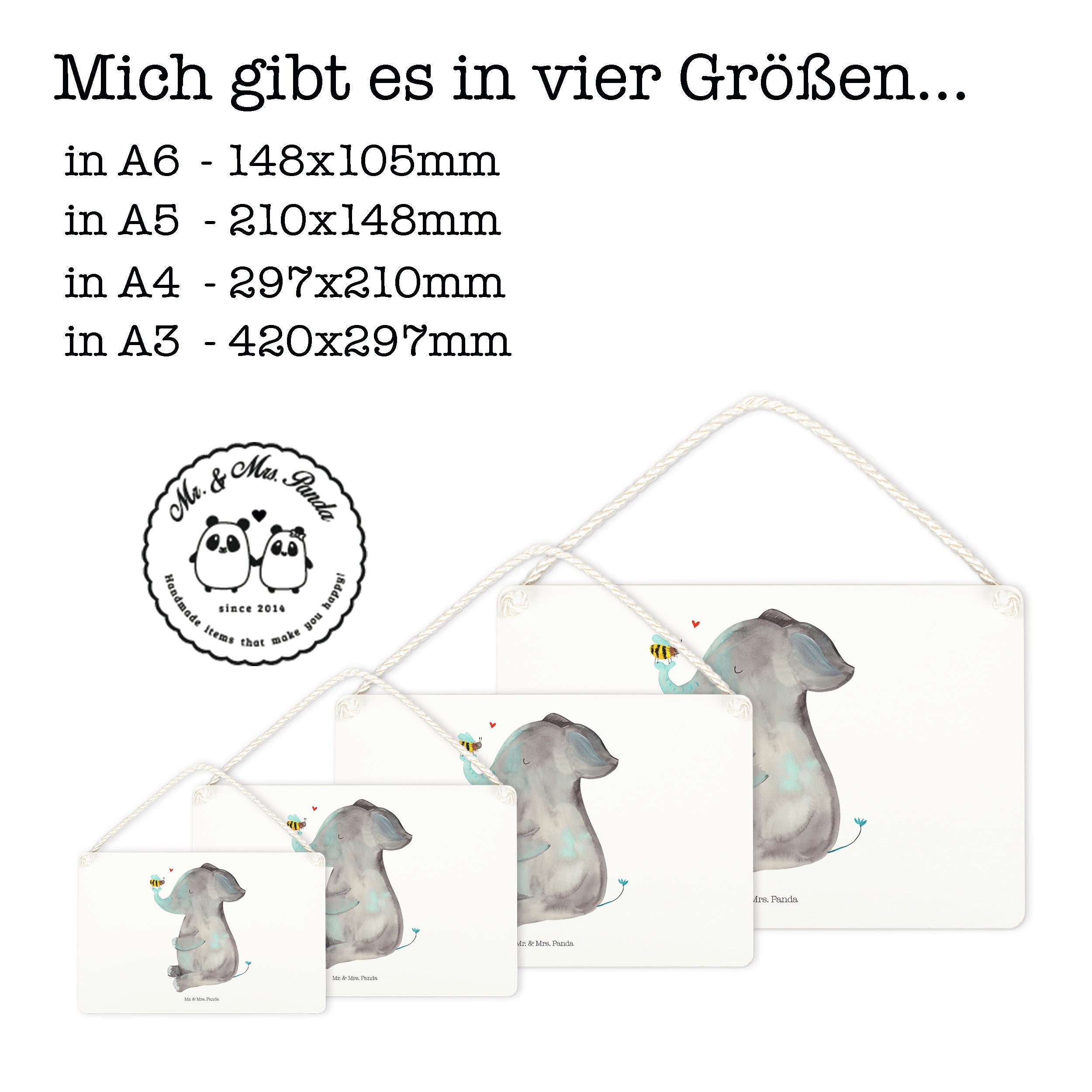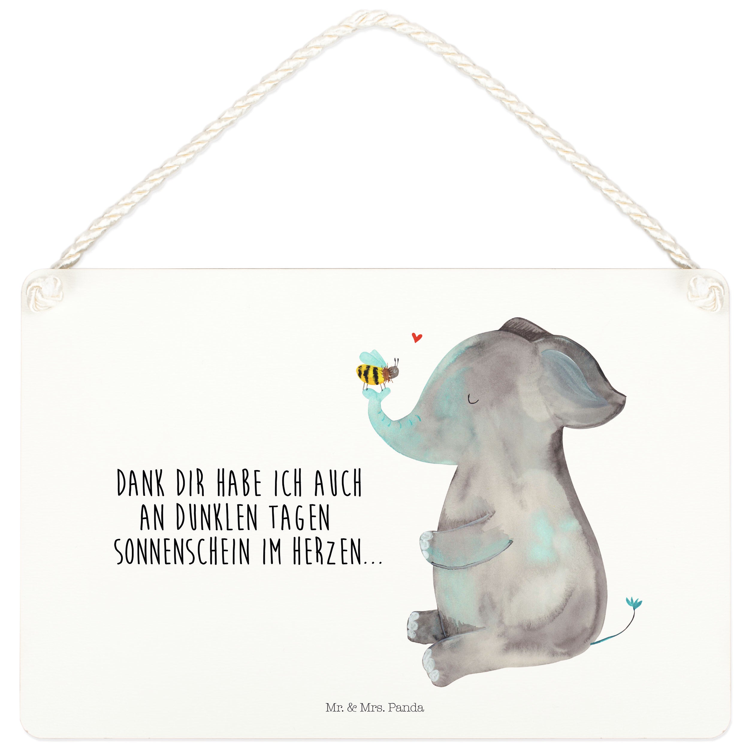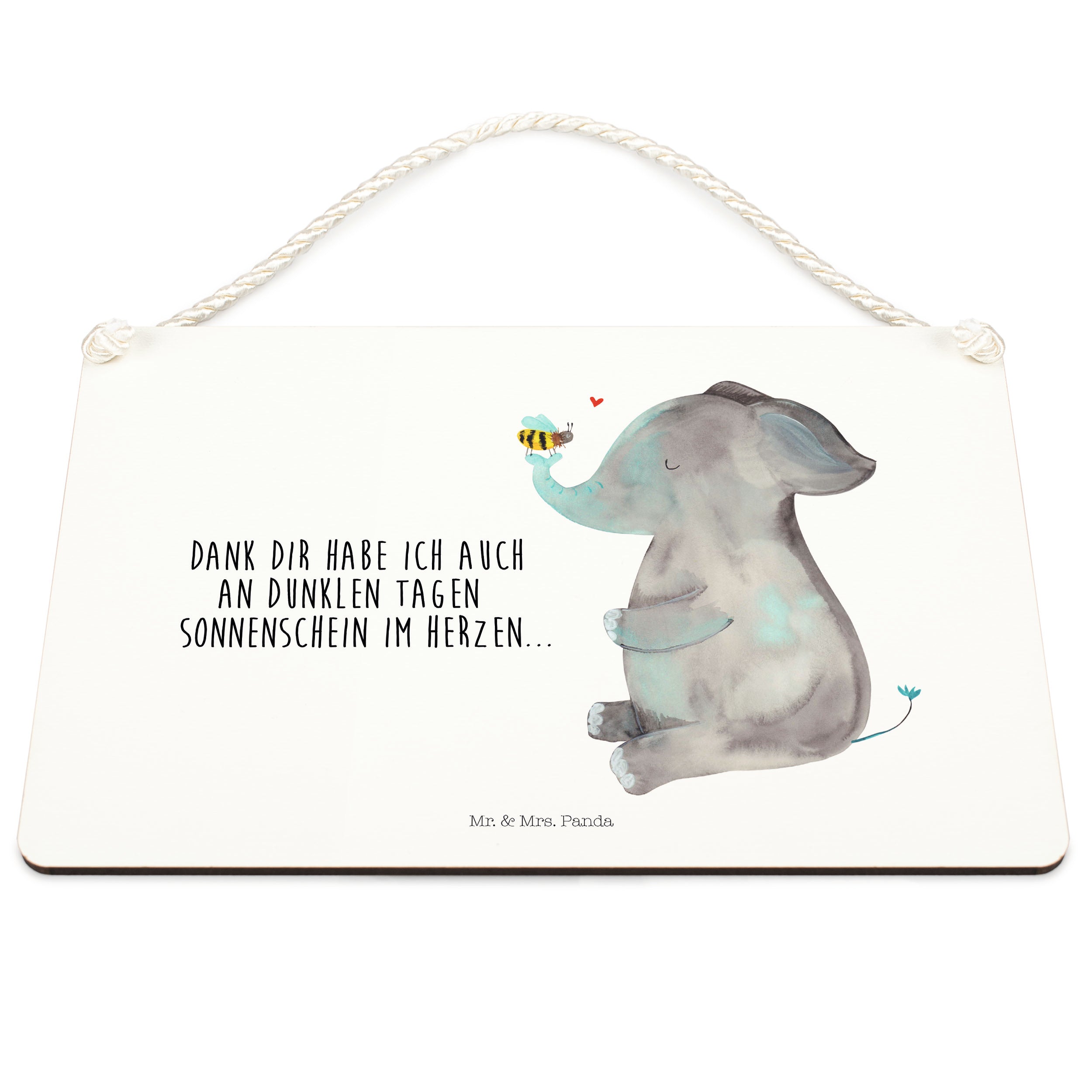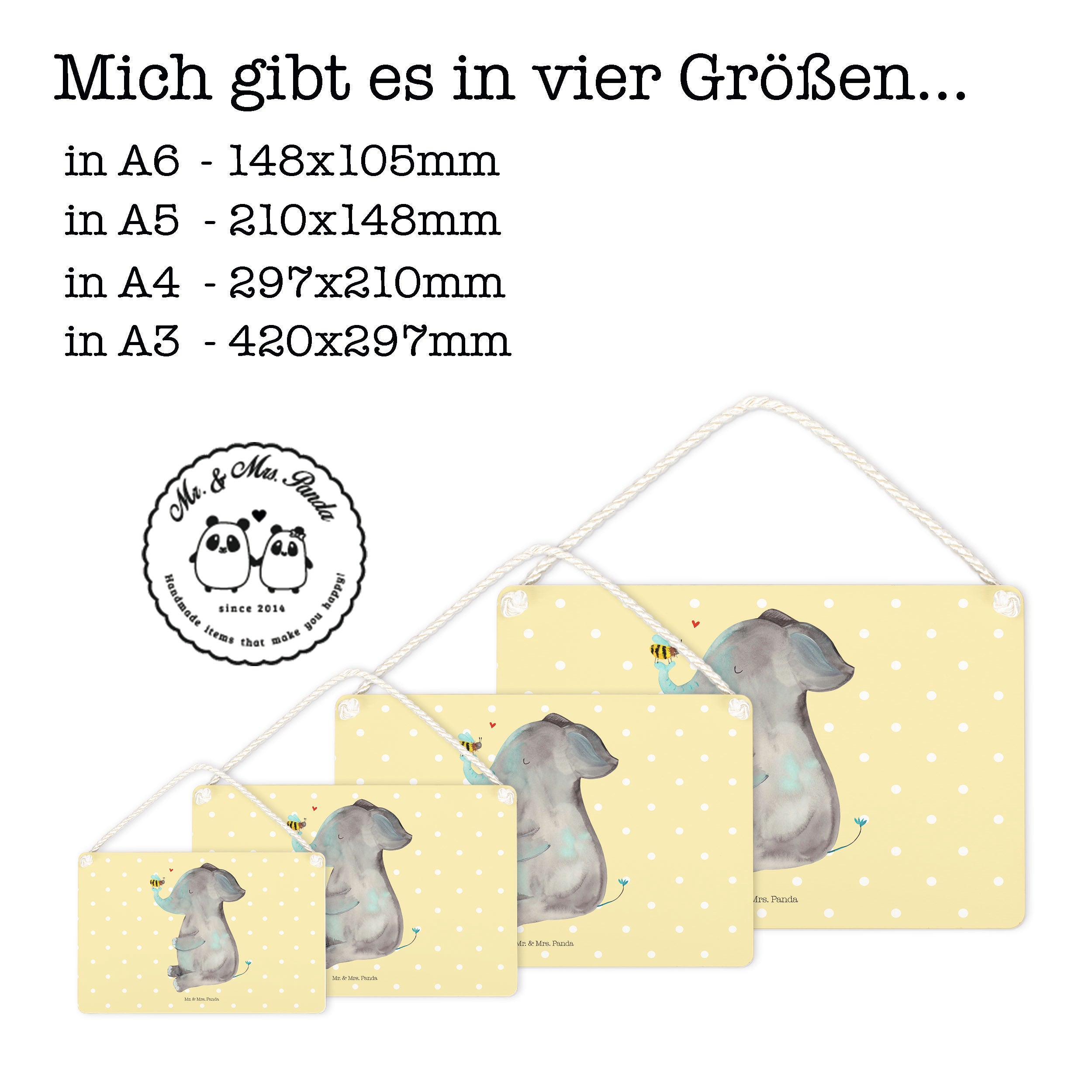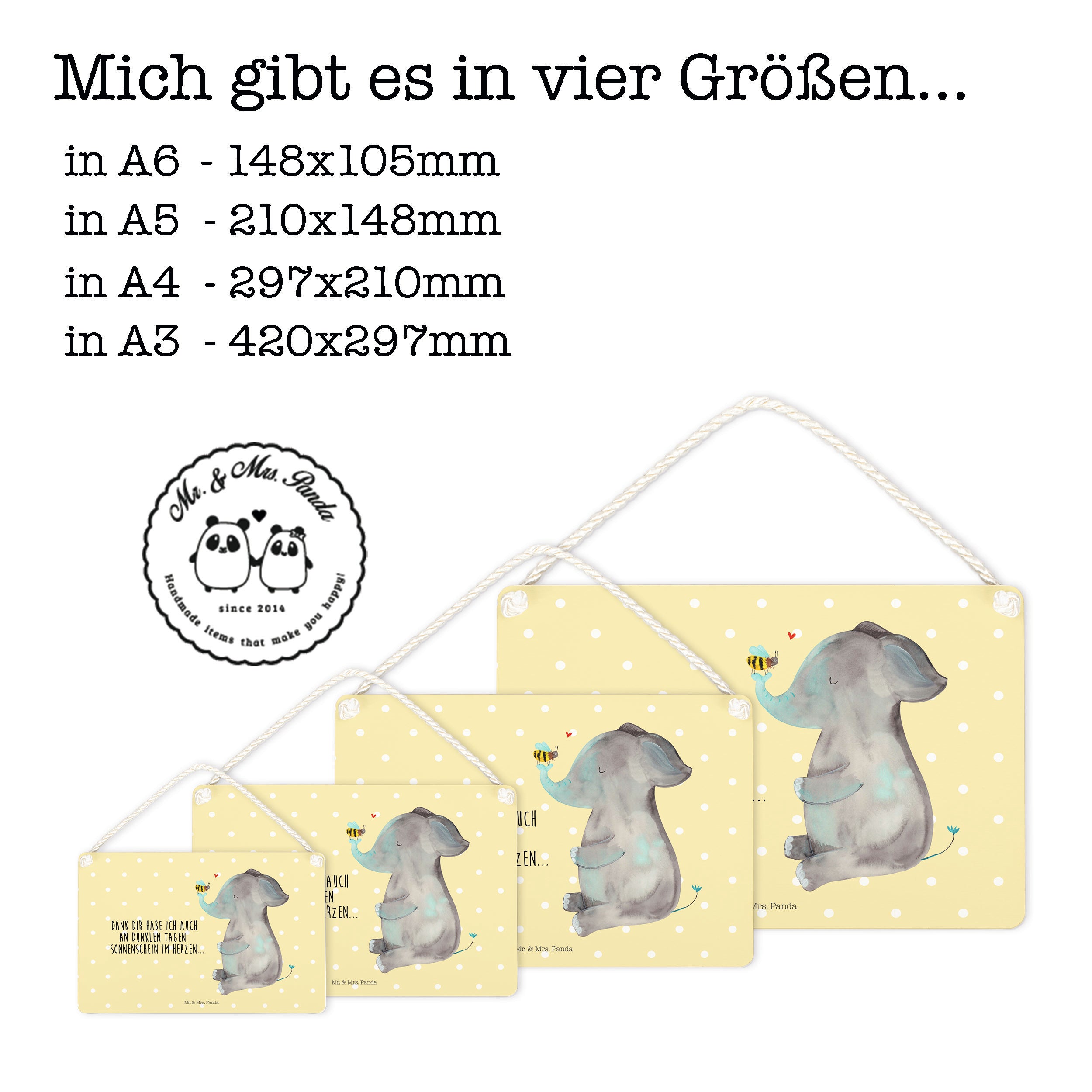 Deko Schild Elefant & Biene - mit Spruch - Gelb Pastell